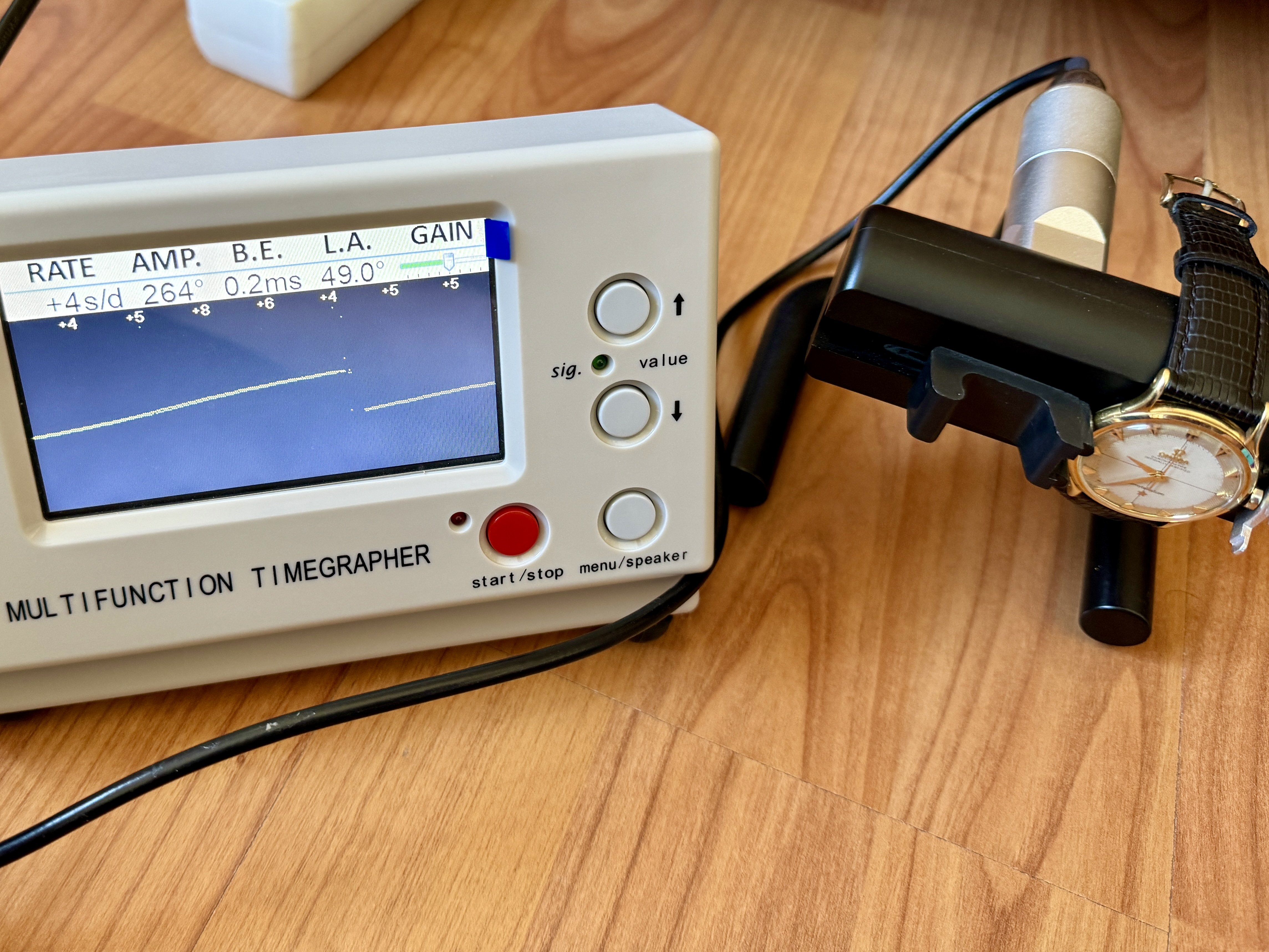 Movement: Original cal. 354 bumper automatic, chronometer certified. The movement is in great shape, visually and mechanically. It’s been fully serviced in late 2023. Accordingly, it sets, winds and runs very smoothly, has a great power reserve, keeps good time. The time grapher shows an amplitude of 260-270, with a deviation of 3-10 seconds per day - so strap it on and enjoy, this one won’t need any maintenance for the foreseeable future.