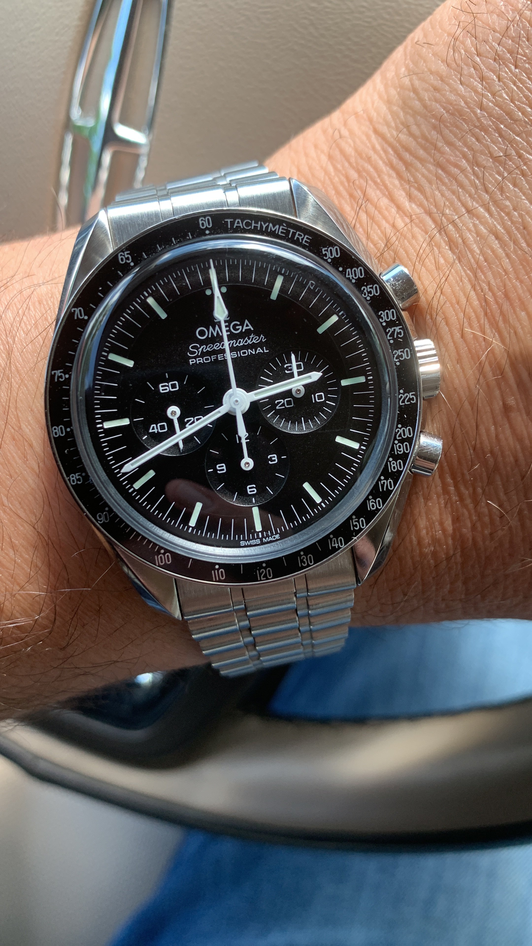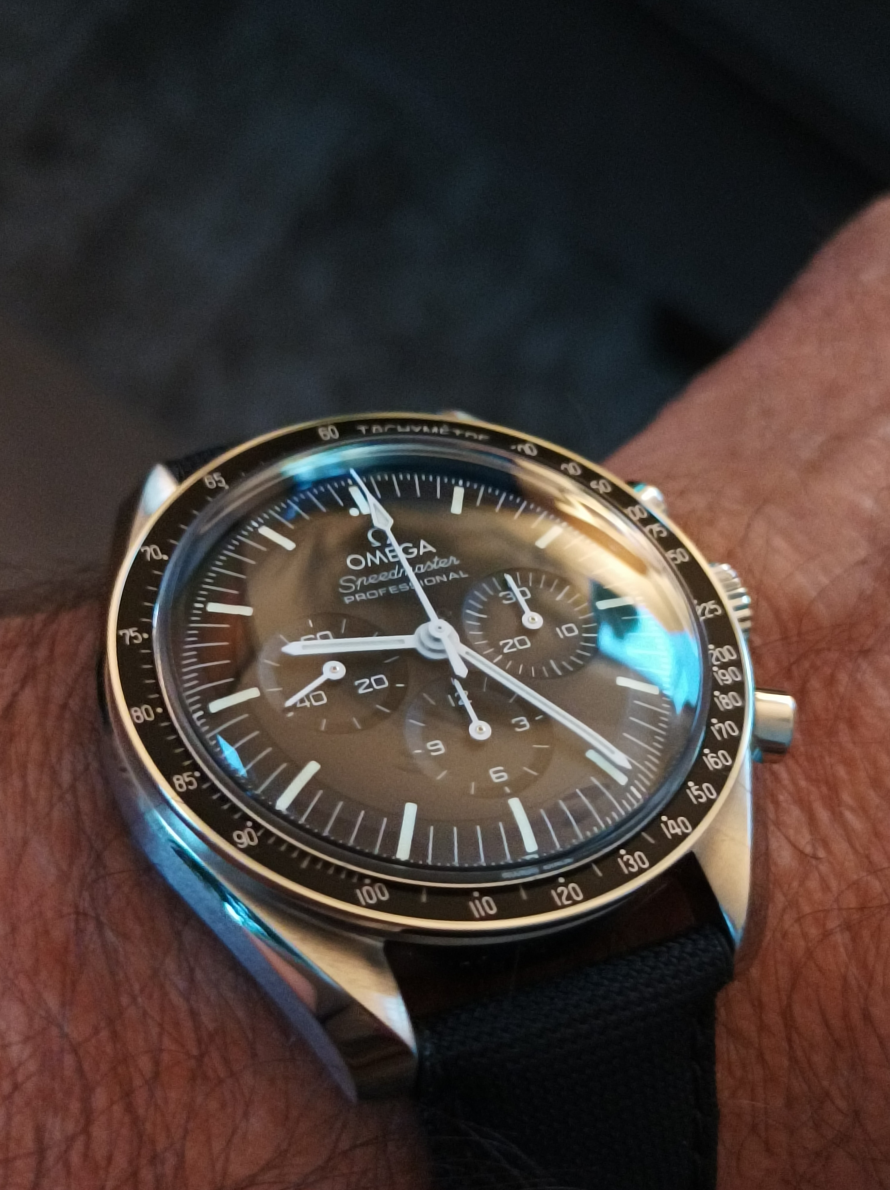 In any event, just took delivery of my first (and only) Speedmaster Professional. After a large amount of waffling and research I decided on the Hesalite version ~ I wanted as authentic as possible while taking full advantage of everything Omega had to offer on the research & development front.