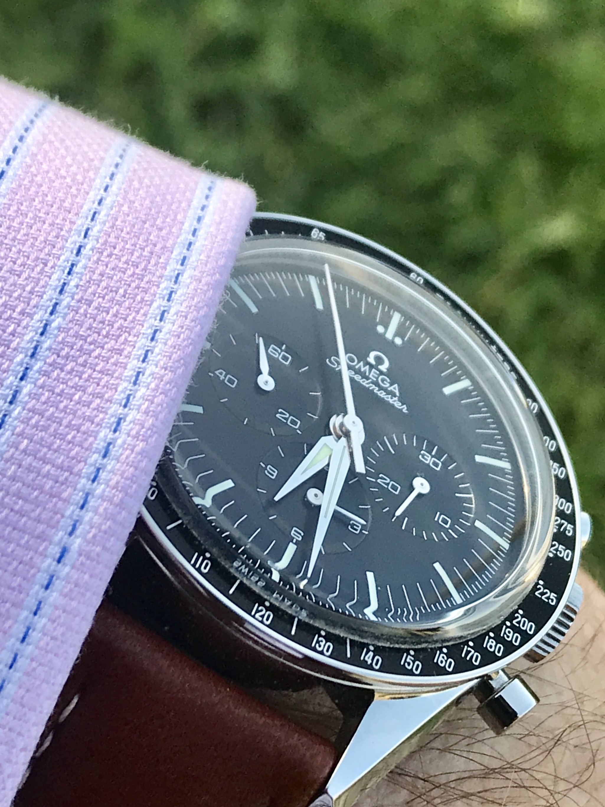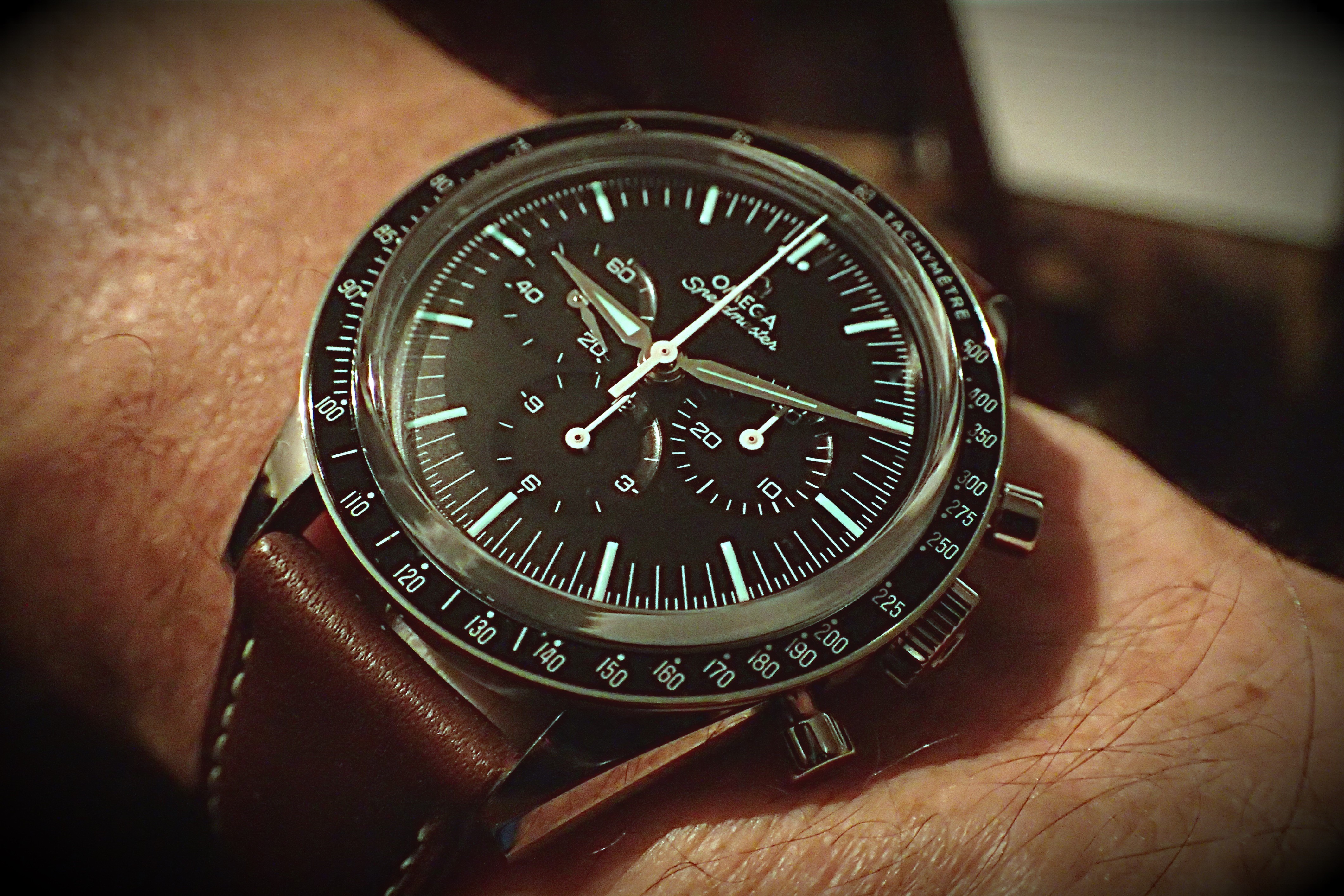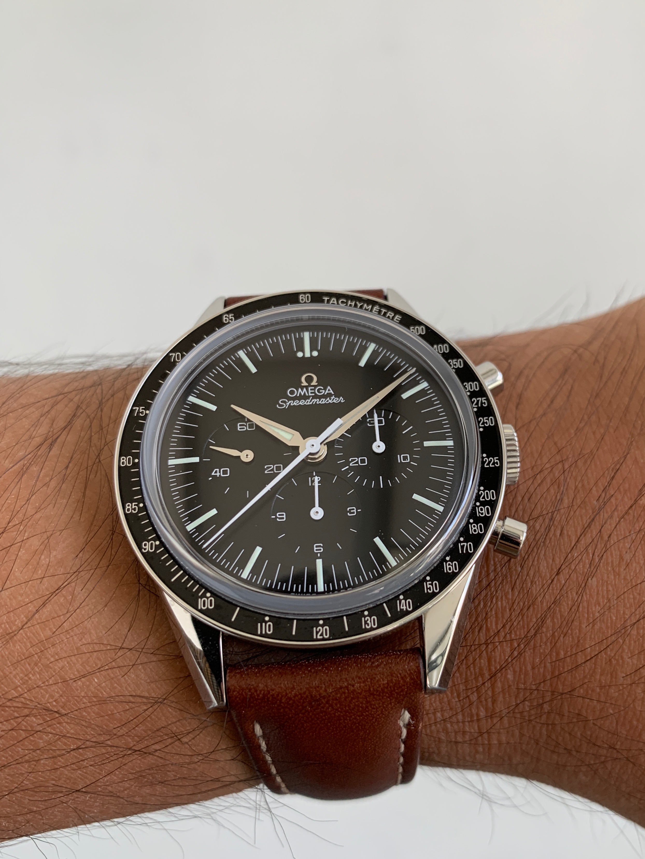 Just got my FOIS yesterday (Tuesday). Previous owner of two Pro 42mm over the years. Had my eyes on the FOIS for a long time. After trying it on yesterday, it just felt like it belongs on my wrist. I plan to keep it on this brown calfskin strap, and watch it gain patina. Even though my 7.25in wrist can take just about any size watch comfortably (my largest watch is a Panerai Luminor 47mm), I think this is the ideal Speedmaster size. I do have the 60th Anniversary Trilogy Speedmaster as well, slightly smaller at 38.6mm and a different history, and different aesthetic. So I think this FOIS will be a great addition to my collection. Cheers, Carl