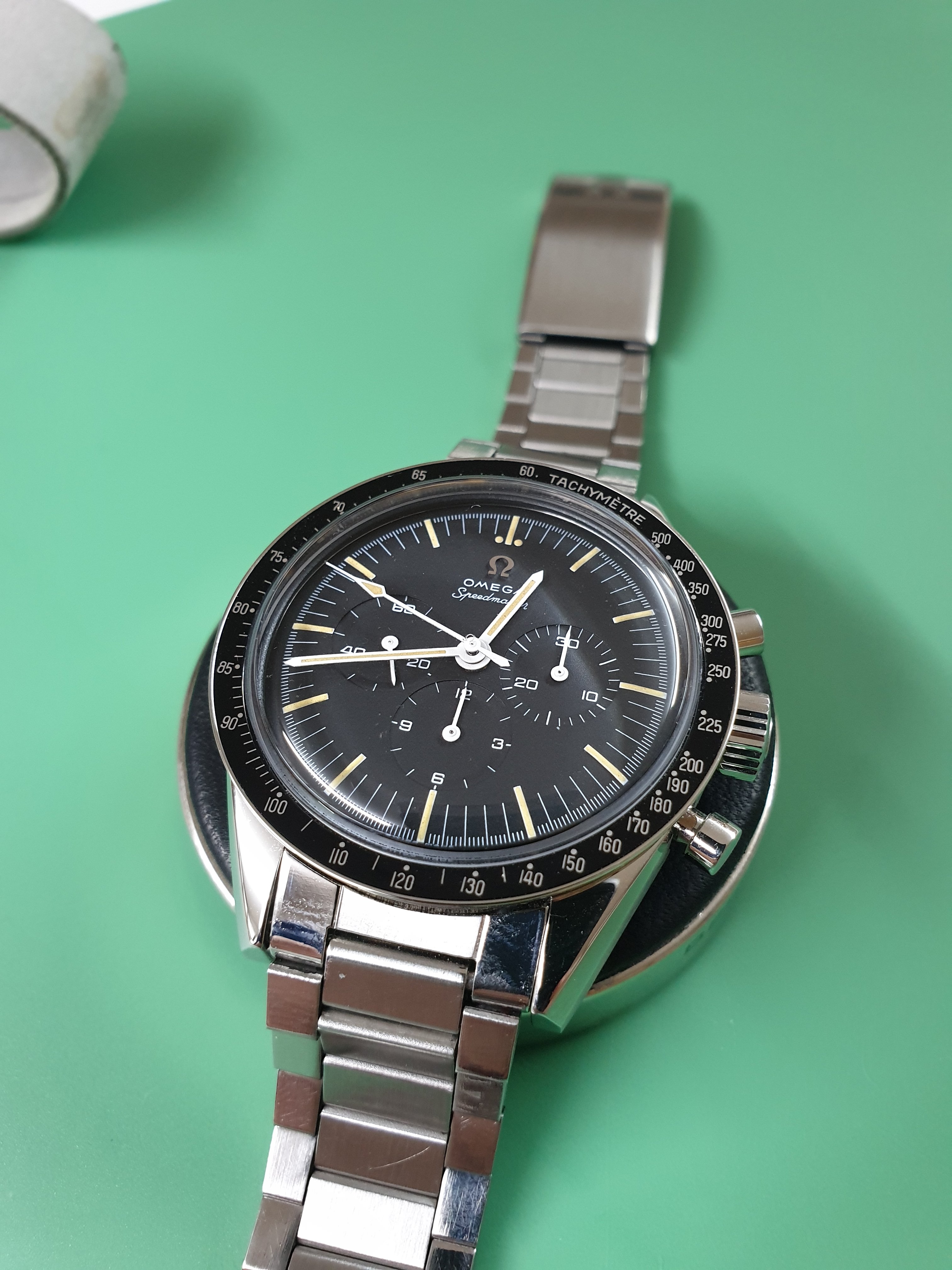 I am happy to hold really a lot of spare parts, dials, set of hands, cases, case backs, crystals, movement parts etc. I collected these items for many years. Spare part policy of Omega changed over the years. Happily I have contact to an AD for Omega watches with level 3. And the watchmaker is a wonderful man who supports me in what ever I need. And he is very skilled which watchmaking. See my statement about the hesalite crystal changing of a FOIS.