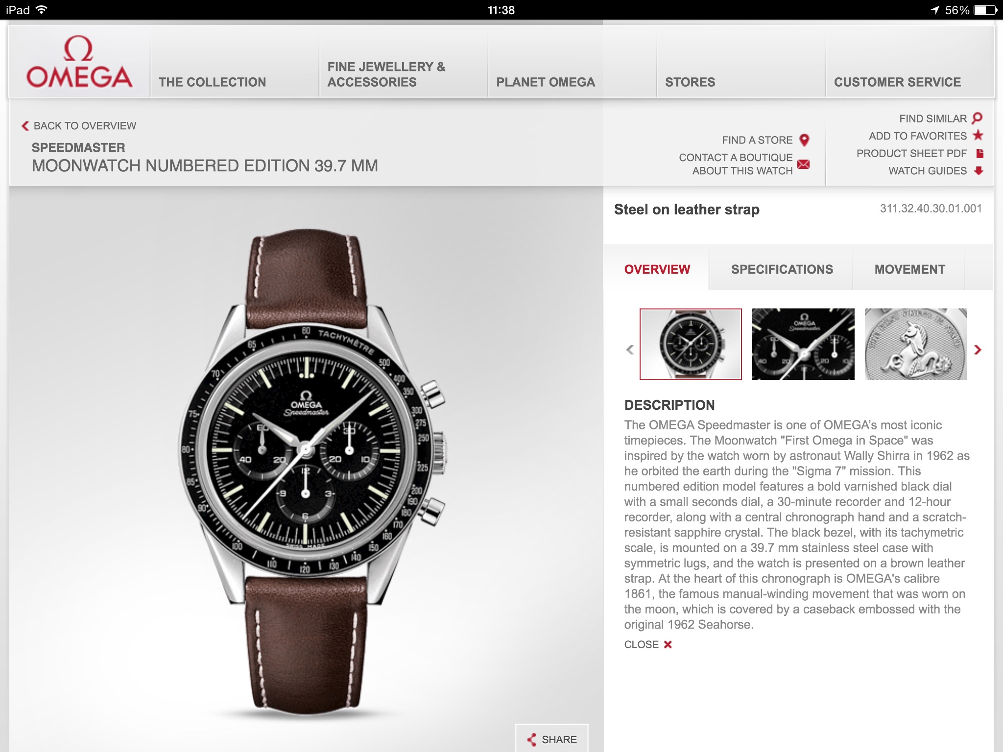 ·Nope, an aftermarket 20mm alligator with an Omega-like clasp. When I received it, I was a bit disappointed by seing an "OMEGA" on the back of the strap - it's a replica. It didn't say so in the advert, I just assumed it was an unbranded leather strap... Still, good value for the money; would never have bought it if it had been falsely advertised, though.