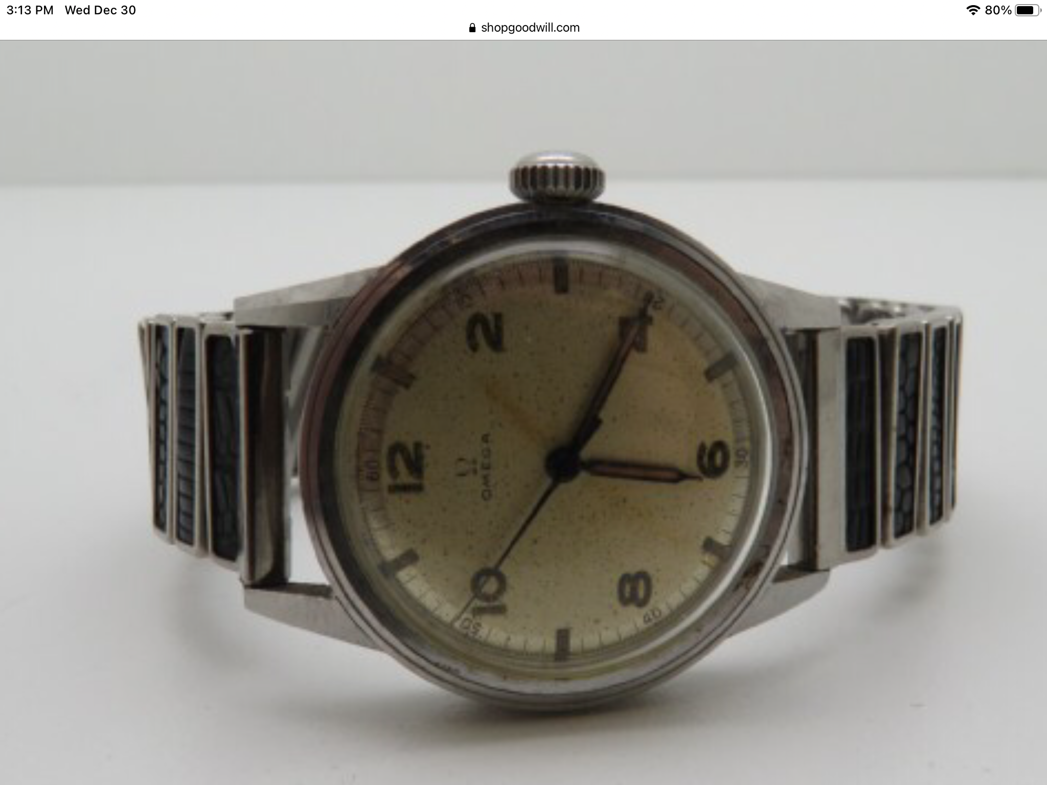 ·I’m considering bidding on this 1940’s mechanical and thought I’d ask for some knowledgeable opinions from you folks first. It would be my first Omega. From what I’ve read and comparing photos, this looks like a ref 2339 from 1943? The radium burn from the hour hand leads me to believe the dial and hands are original. Unfortunately, very little info is provided by the auction site and you’re not able to ask questions. It has a plain crown and is the case is 31mm. Currently the high bid is $118. I love the history of these old watches, not just that it’s an Omega...any thoughts? Thank you in advance!