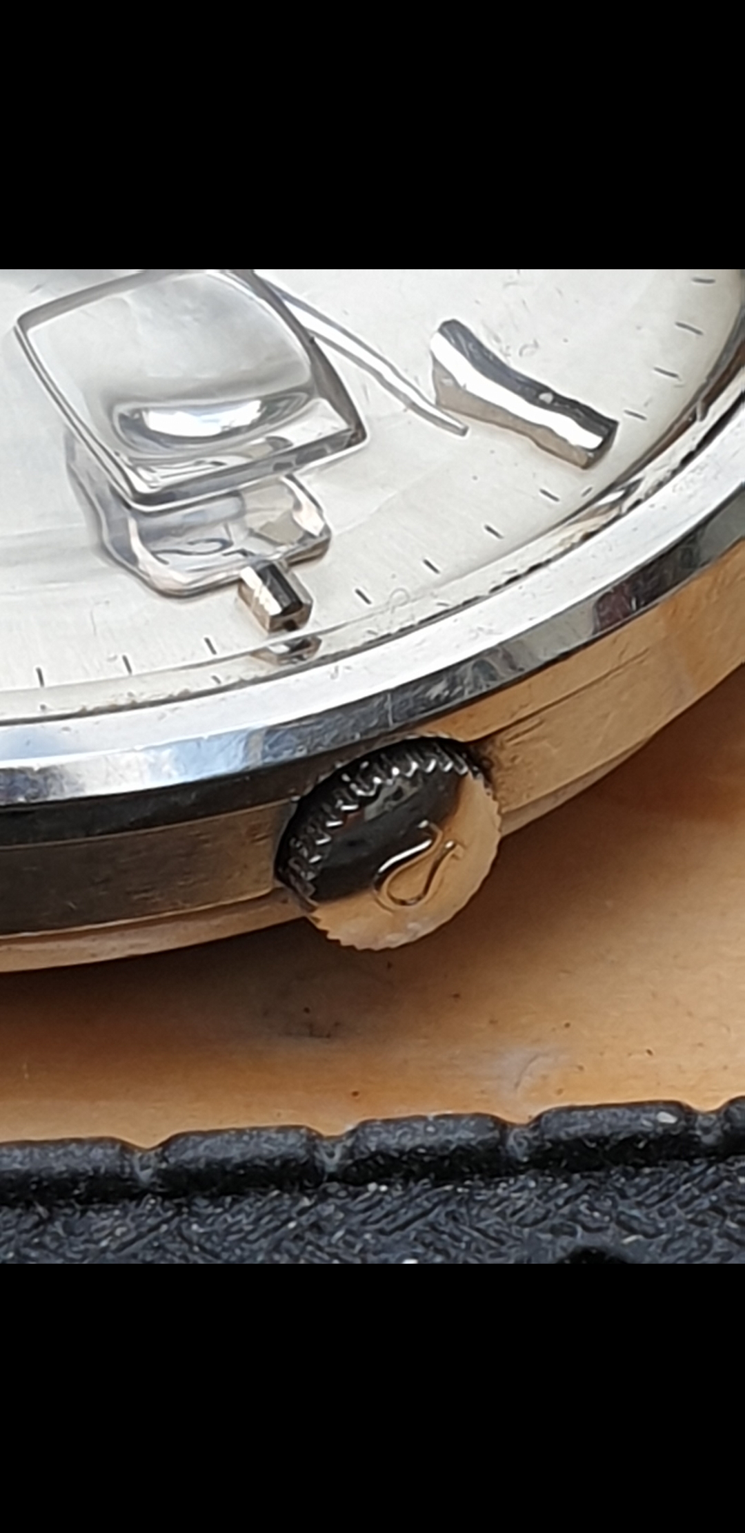 The dial looks good (Unusual ‘full indices lume’ more normally seen on an .004 rather than an .010) but with the crown and the case in this condition, this is a $500 watch not a $1200 watch.