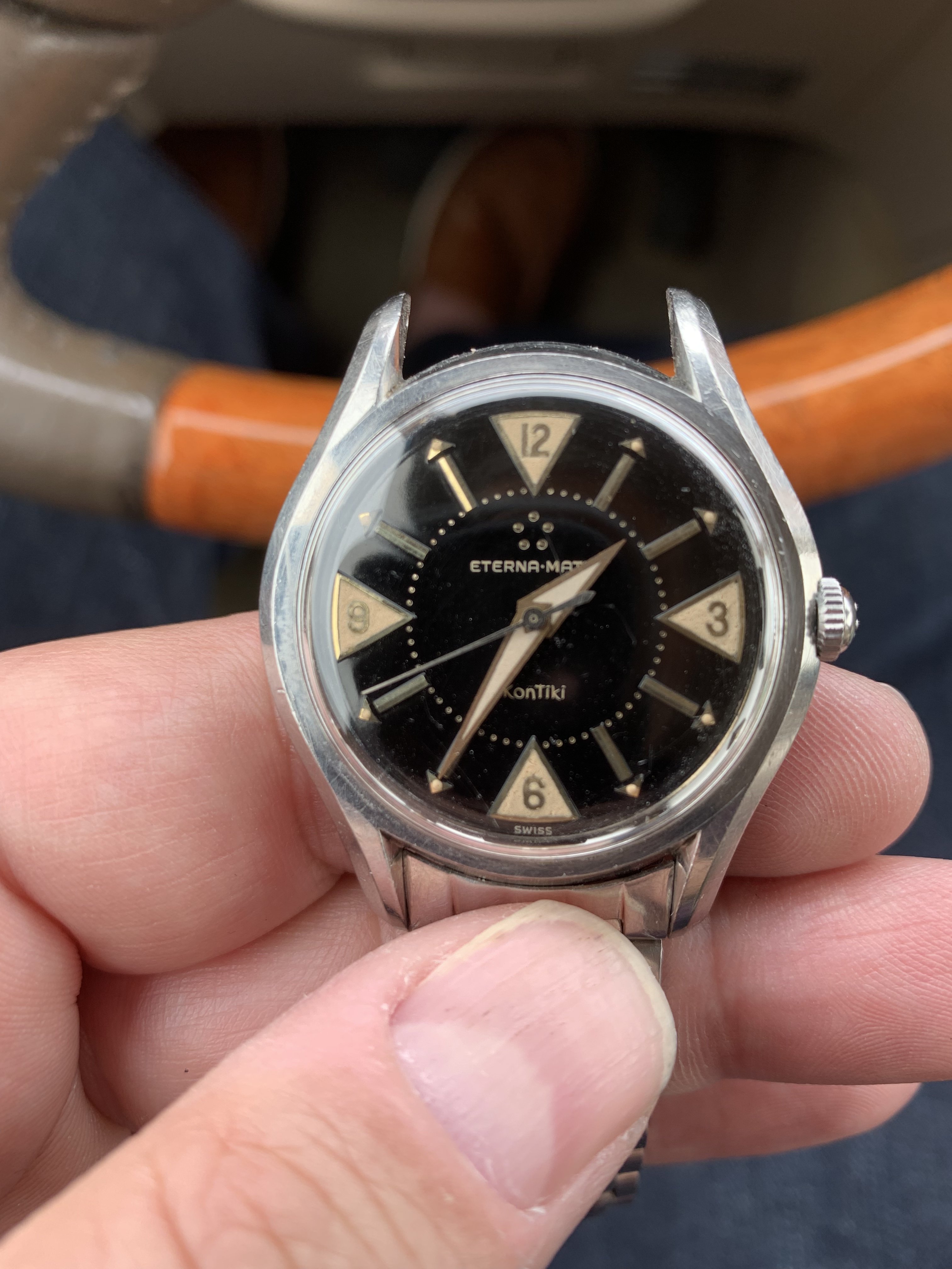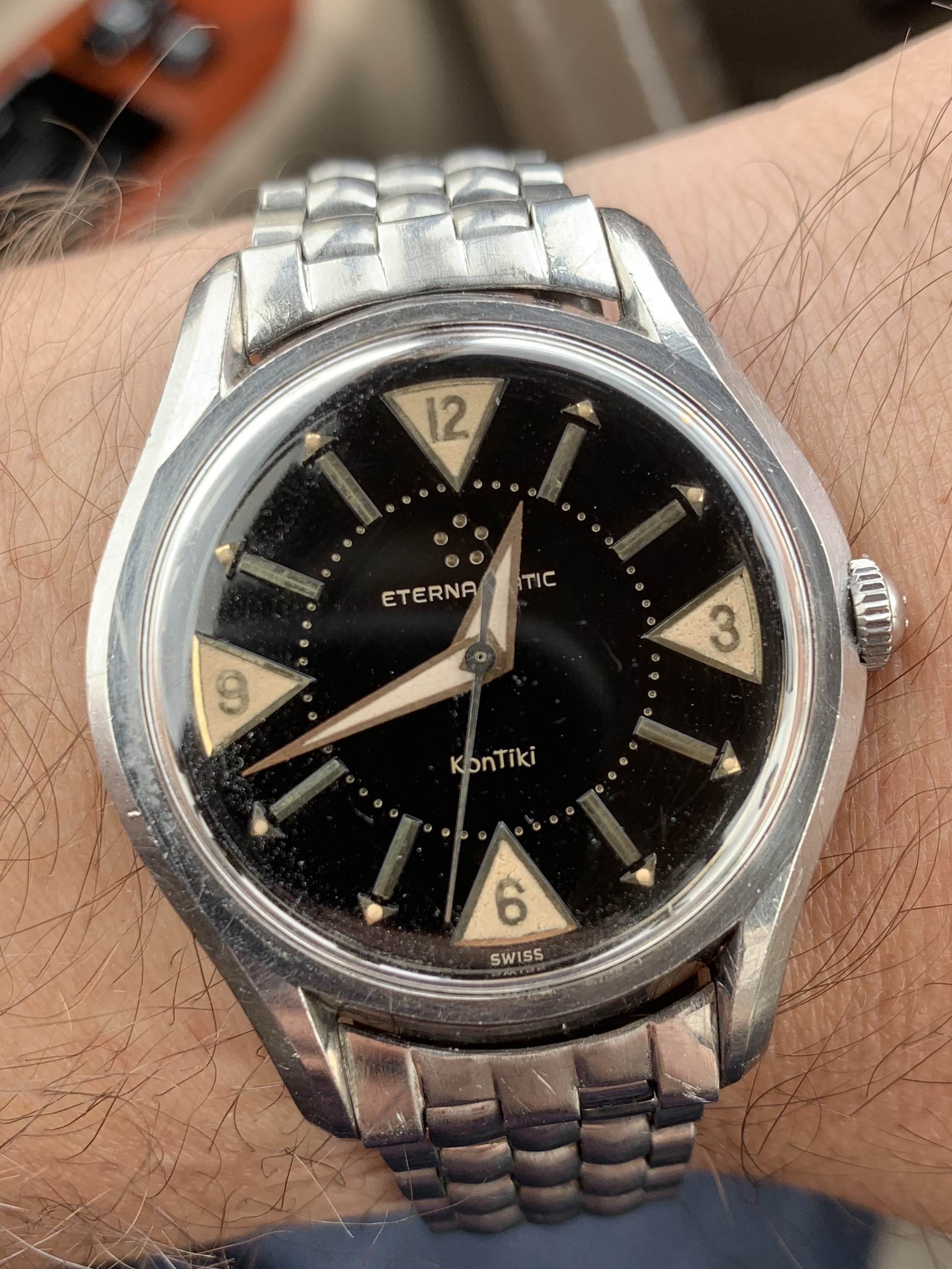 Having enjoyed the forum, its high time to contribute. Here is a recent find in a Colorado backwater. My first Kontiki but now the fever is running hot and the search is on for more. The GF bracelet is marked 1 58 and based on serial comparisons I believe this is a first series - untouched.