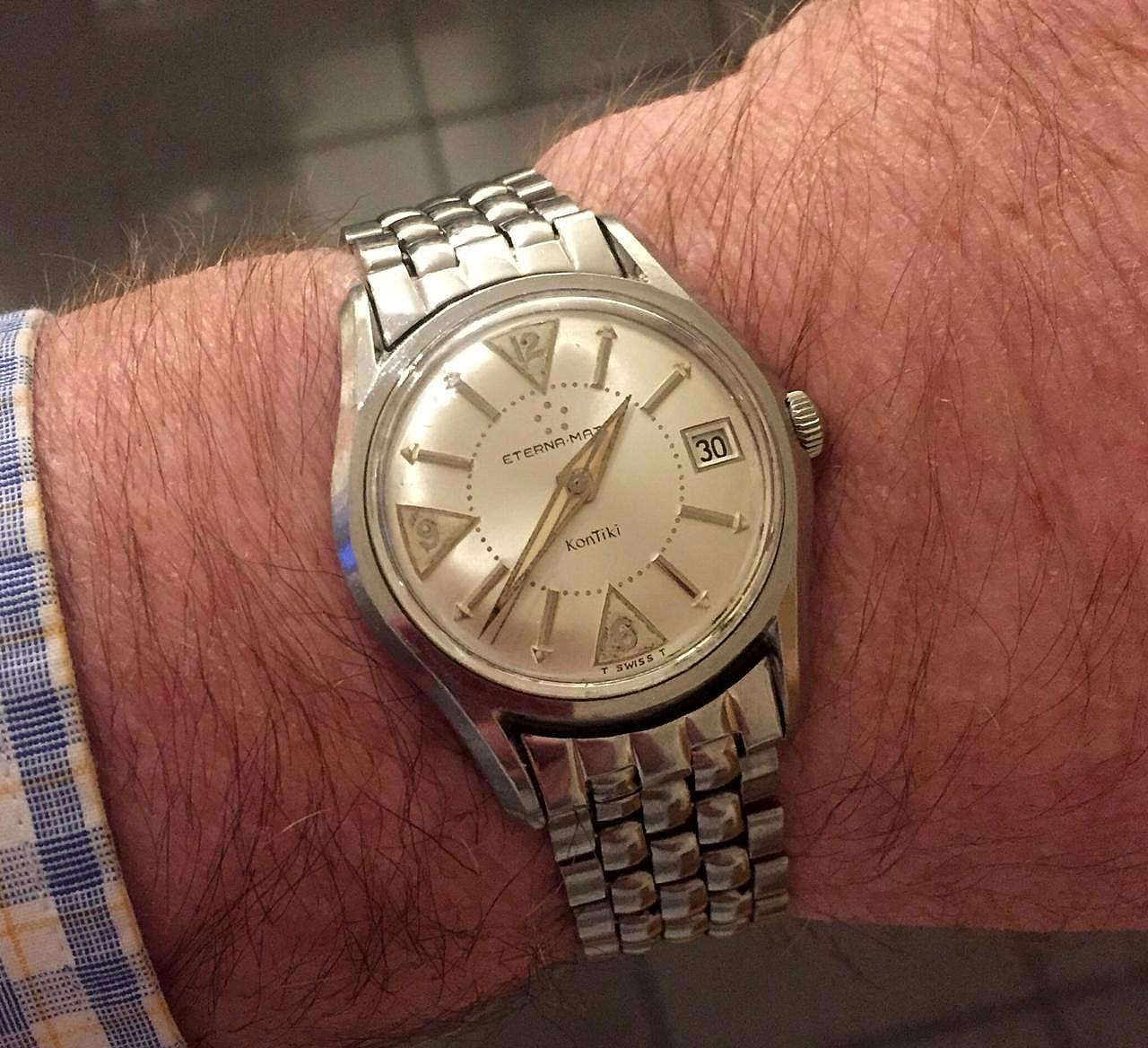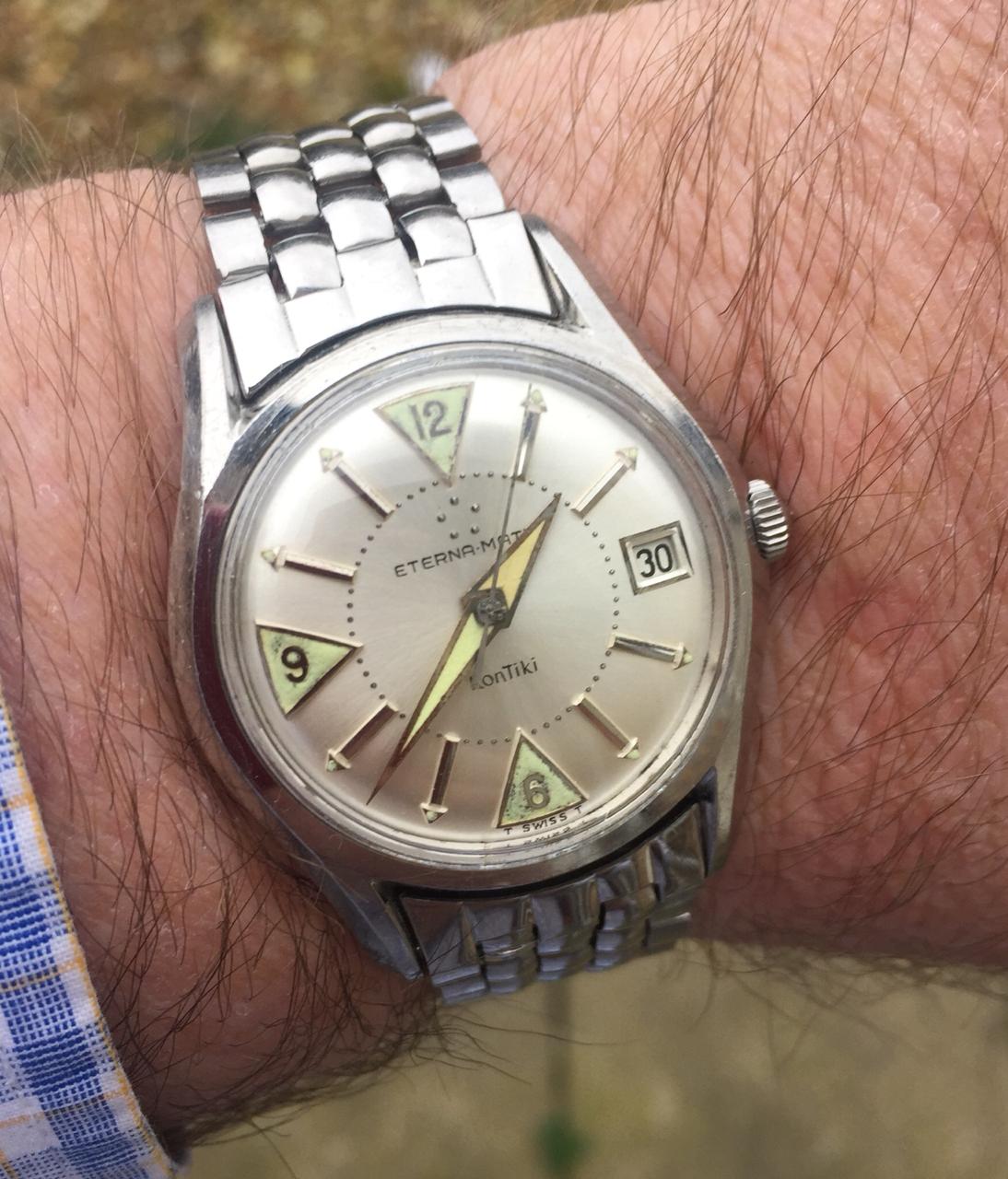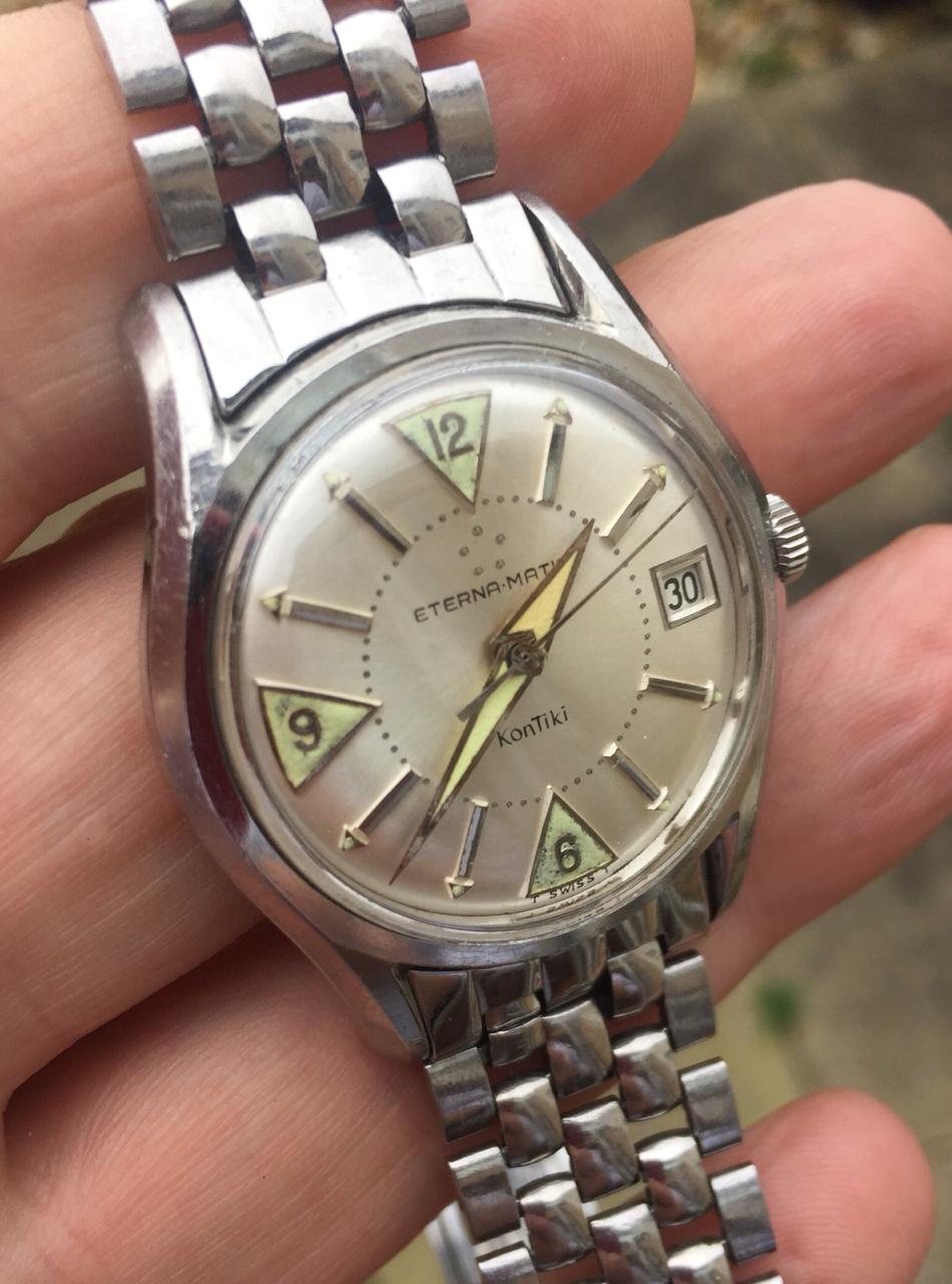 Has anyone come across this version of the Eterna Kontiki with a silver dial and date from circa 1958. This one is all original with Gay Freres bracelet and original crystal. It has the 1422UD automatic movement in it which is very clean. The case is in very good condition as well. I haven't been able to find another silver dial version anywhere. , so I suspect it might be quite rare.