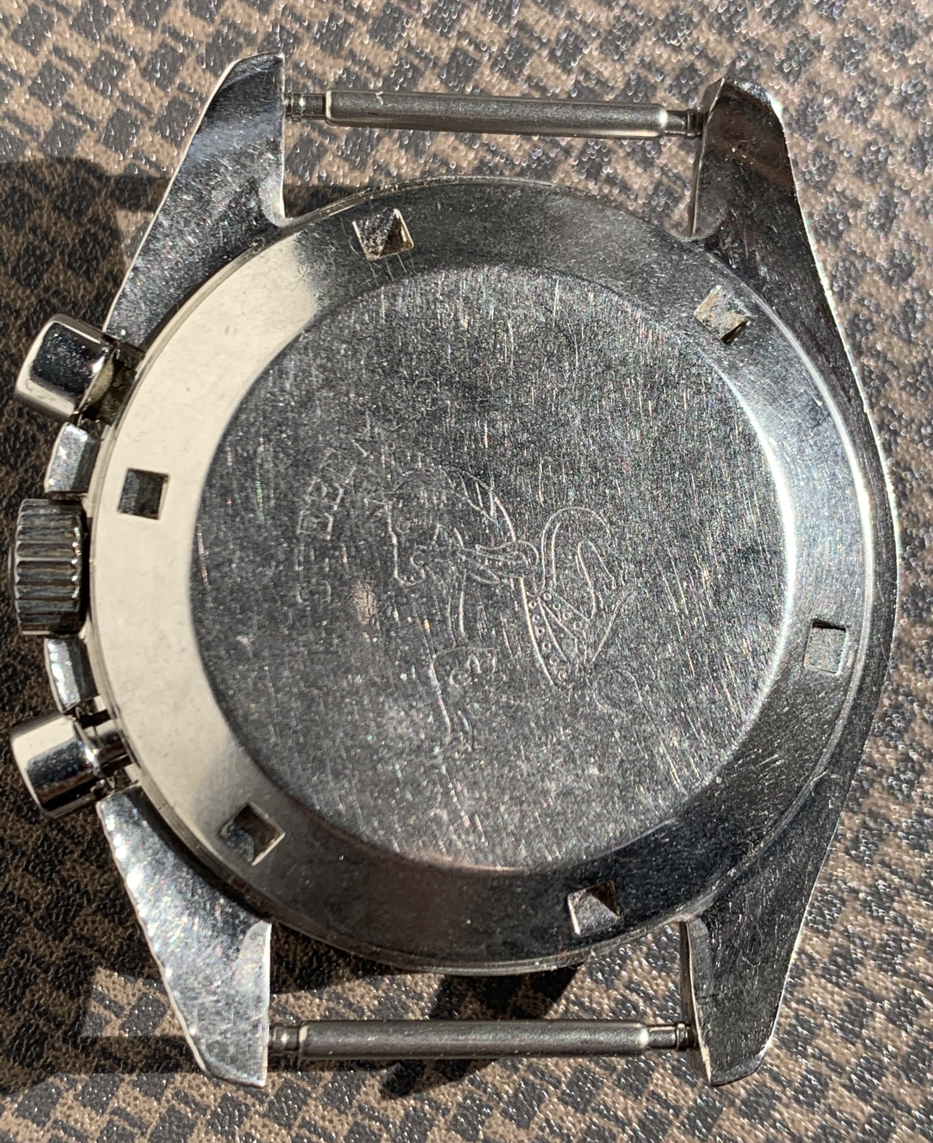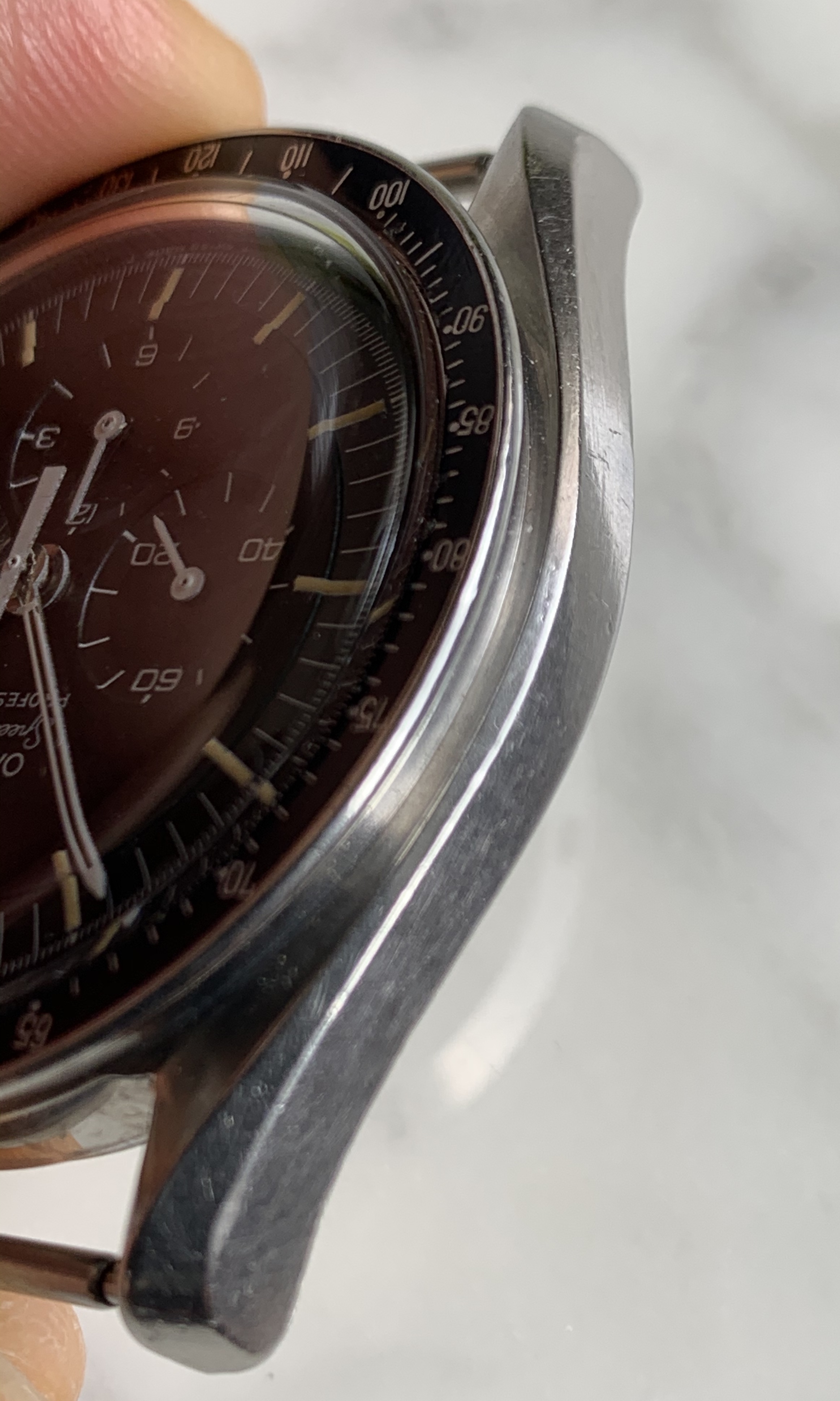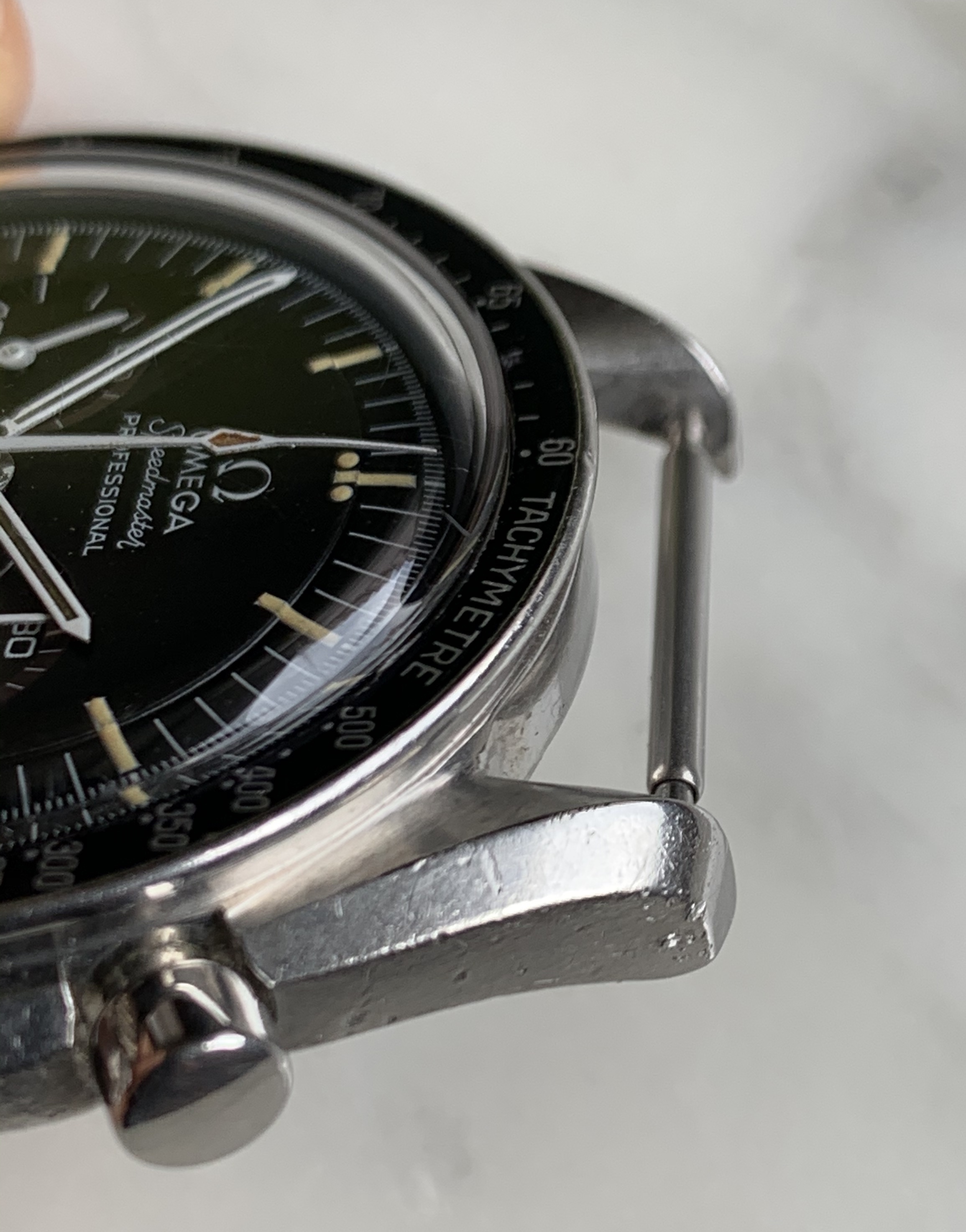 Caseback - Speedmaster etching is faint due to polishing, caseback teeth in good condition with no large scratches, inside stamped with correct number