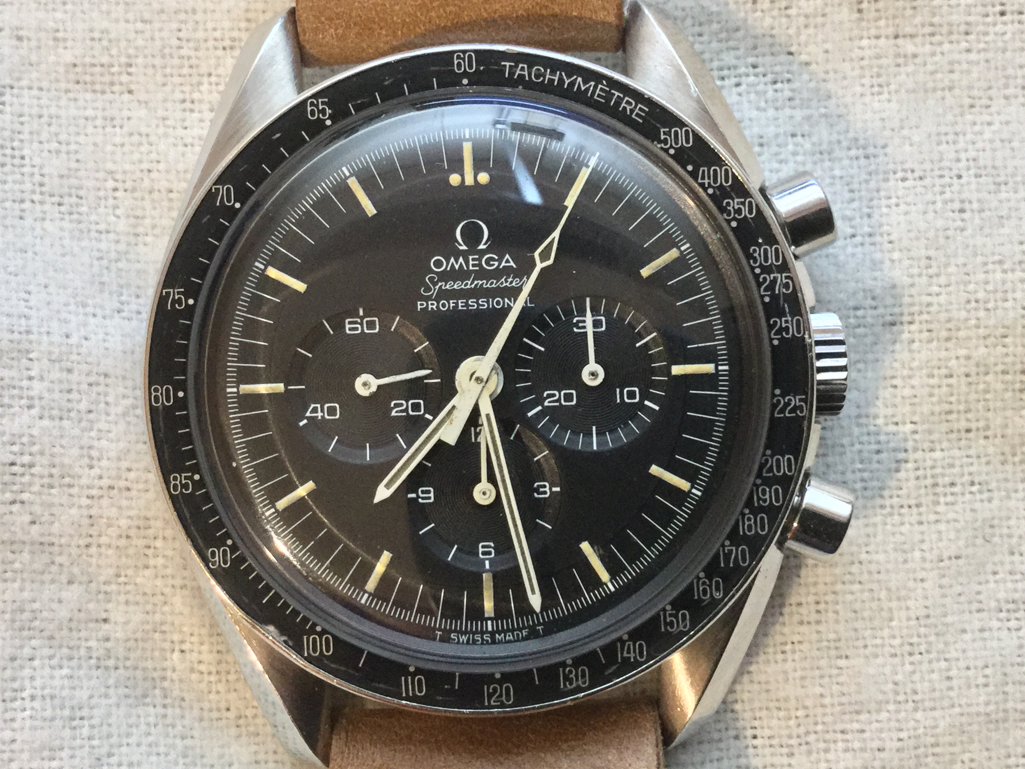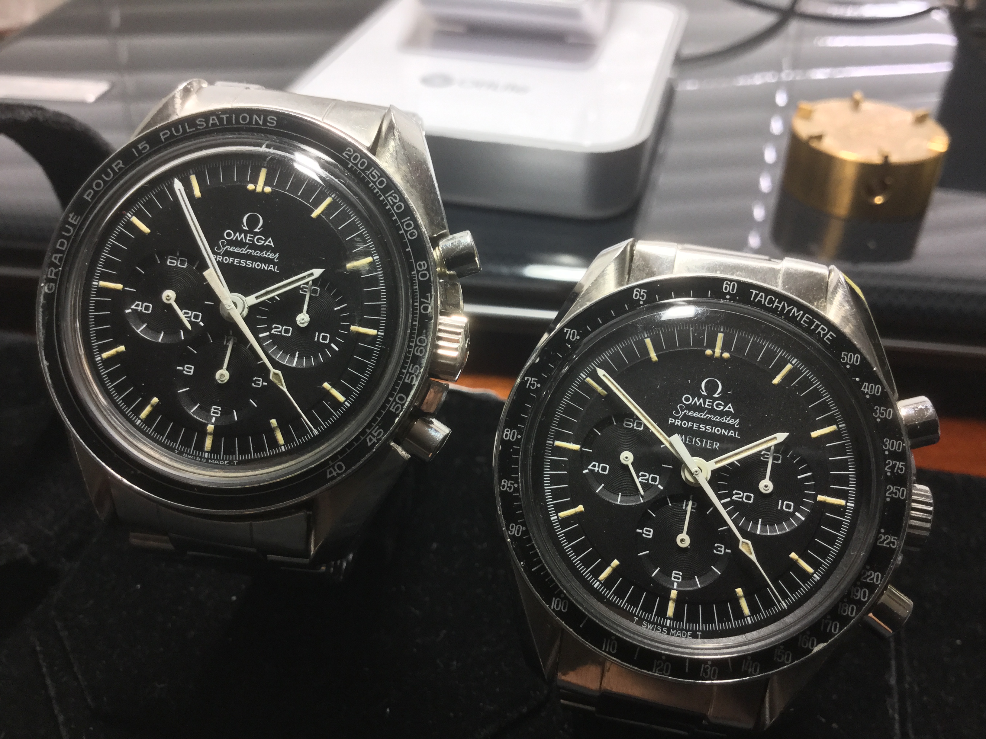 The request to see the movement would help to understand whether the bezel and caseback don't belong to this watch or the dial is potentially coming from a premoon Speedy, based on the following I assume :