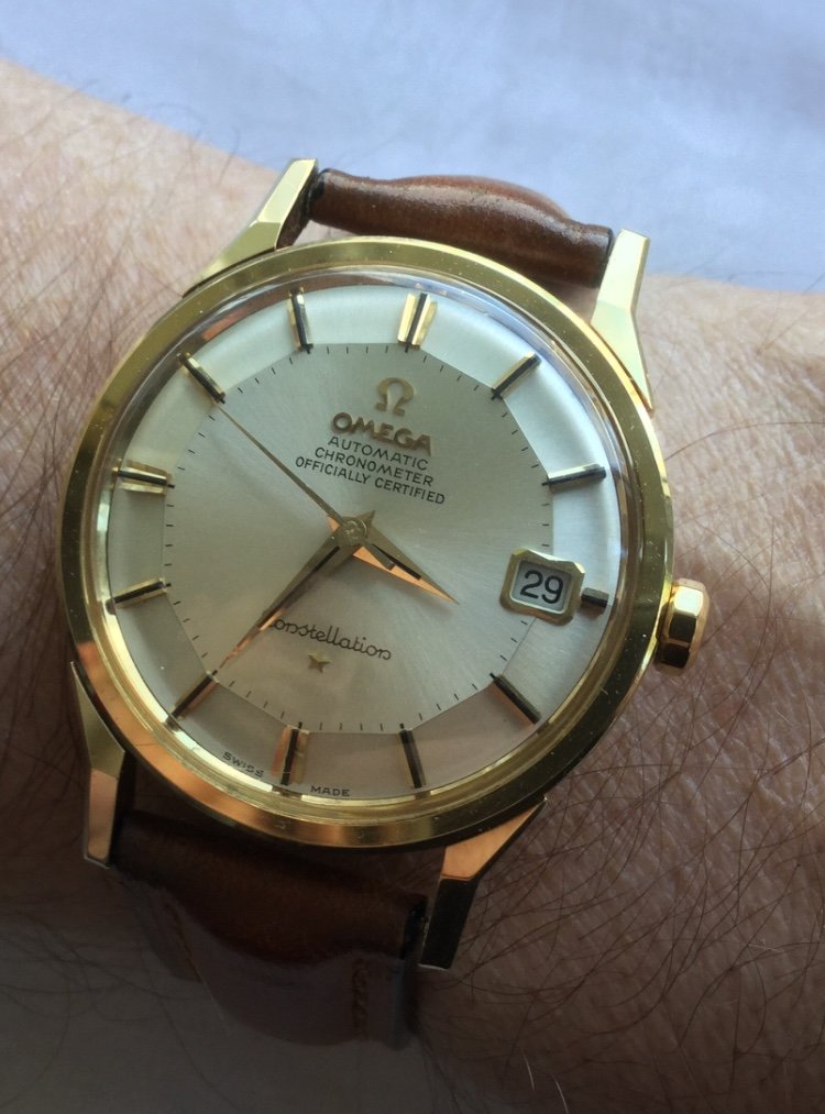 I’ve been looking into acquiring my first vintage watch and came across an Omega Constellation with a Pie Pan dial in yellow gold that stuck in my mind.
