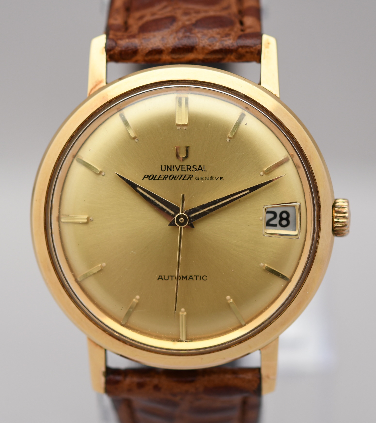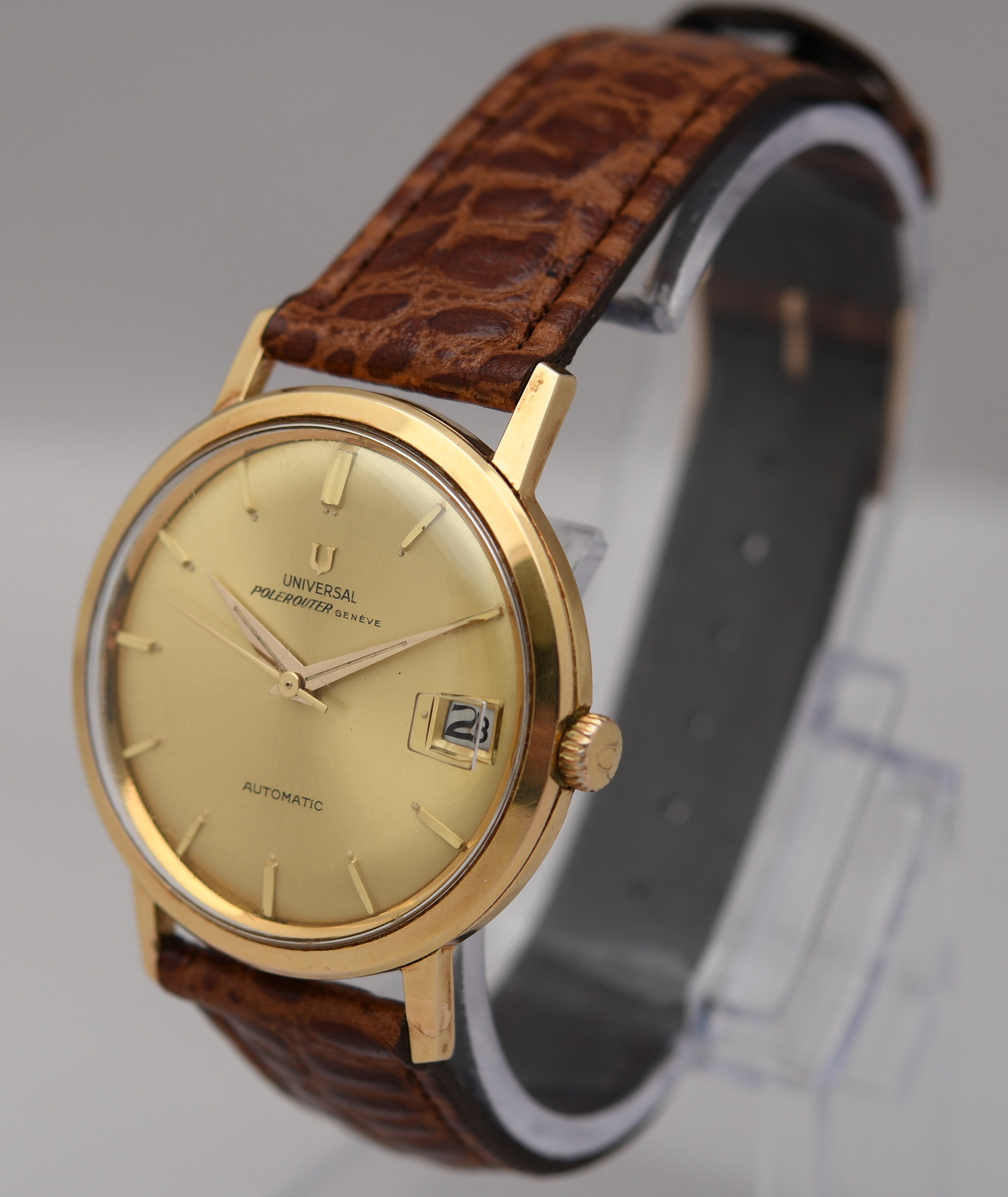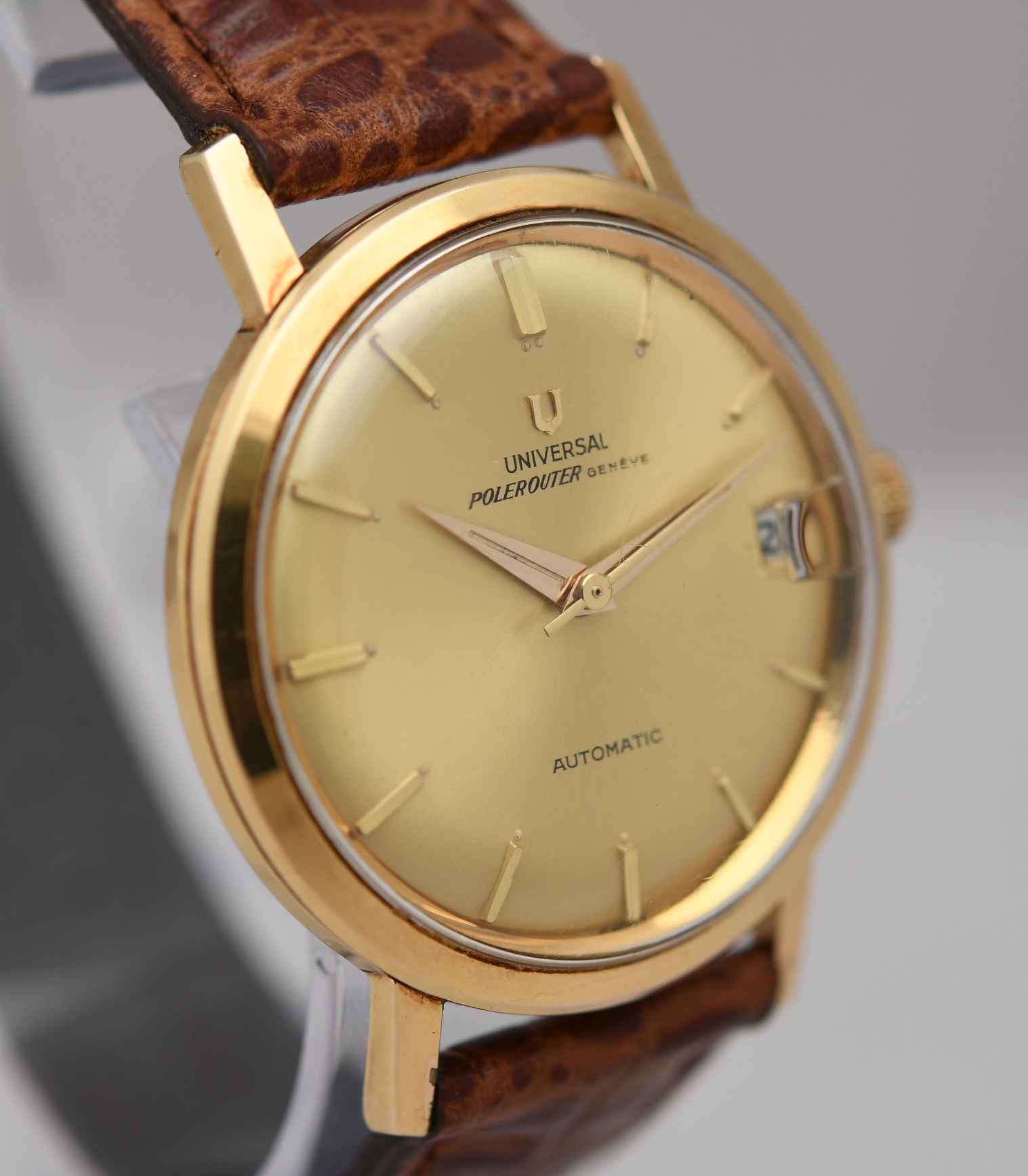 ·I'm looking at a 1960 404604-3 Polerouter Geneve as an entry into Universal Geneve. The watch is priced at 895 Euros freight free. It comes with the box and papers. Unfortunately no photos of the movement - "(We have not opened the back case due to not making any damage to this near mint watch)"
