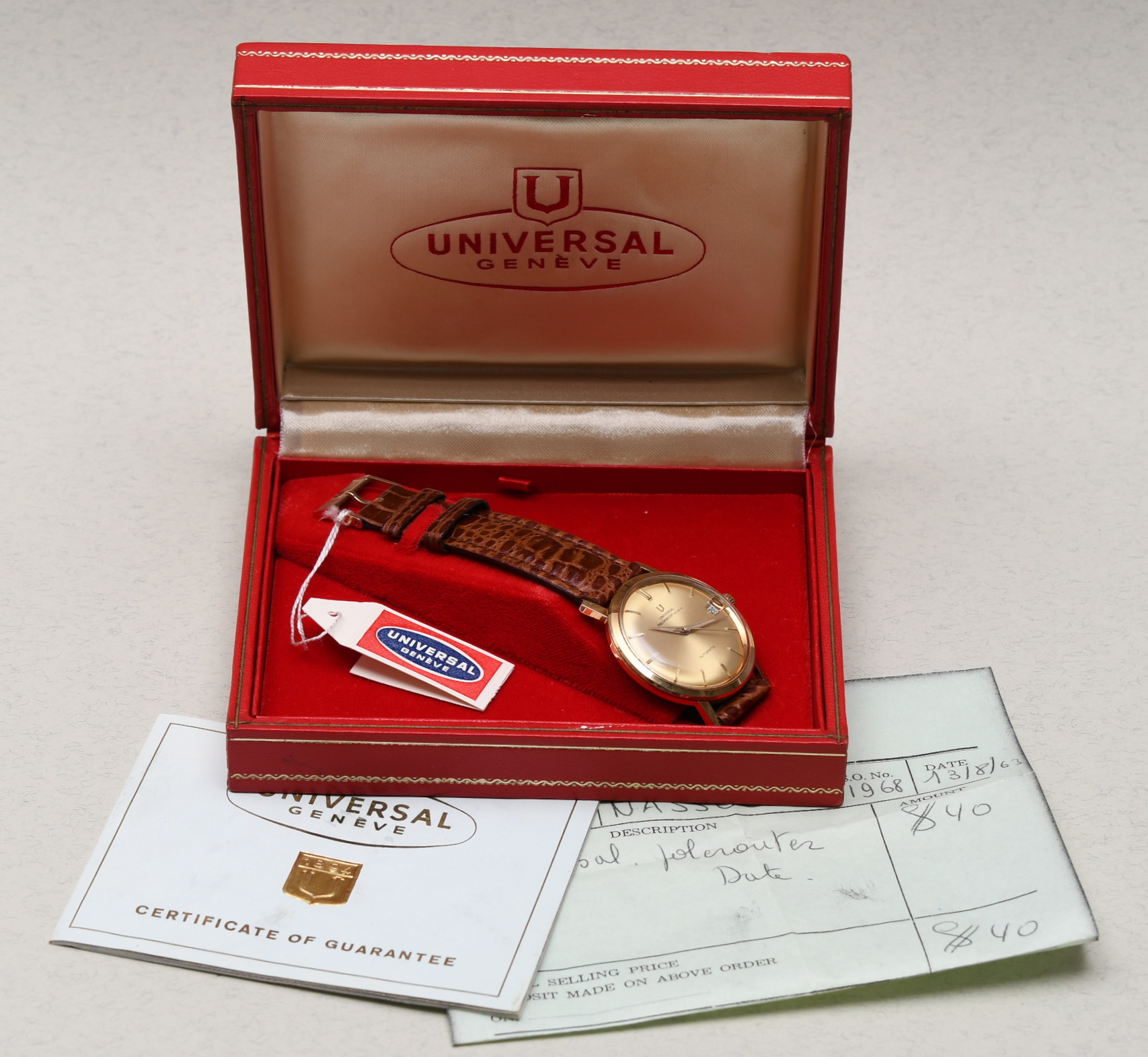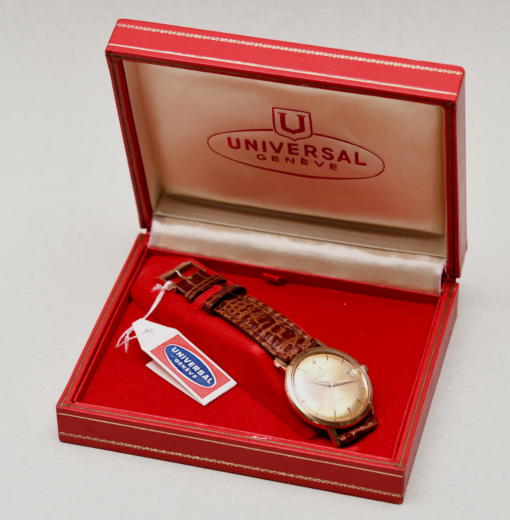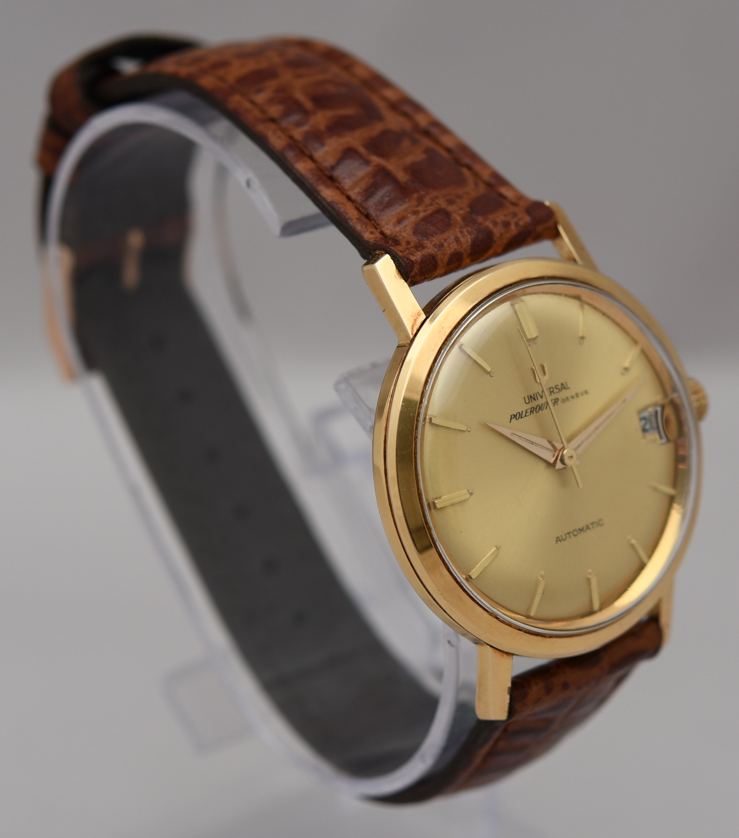 ·I'm looking at a 1960 404604-3 Polerouter Geneve as an entry into Universal Geneve. The watch is priced at 895 Euros freight free. It comes with the box and papers. Unfortunately no photos of the movement - "(We have not opened the back case due to not making any damage to this near mint watch)"