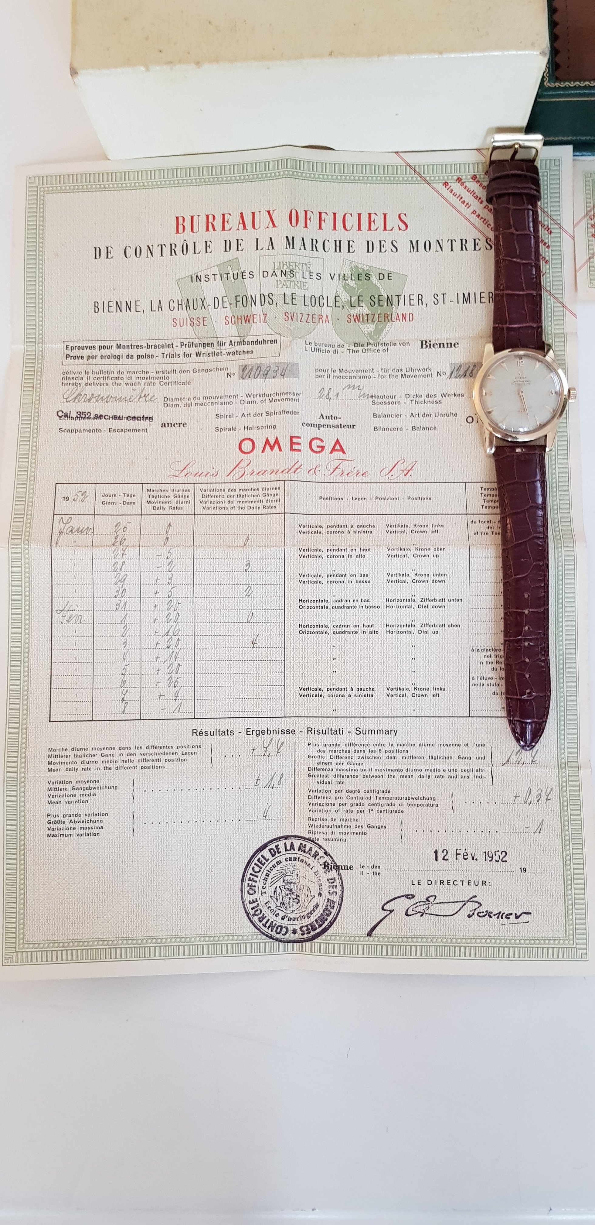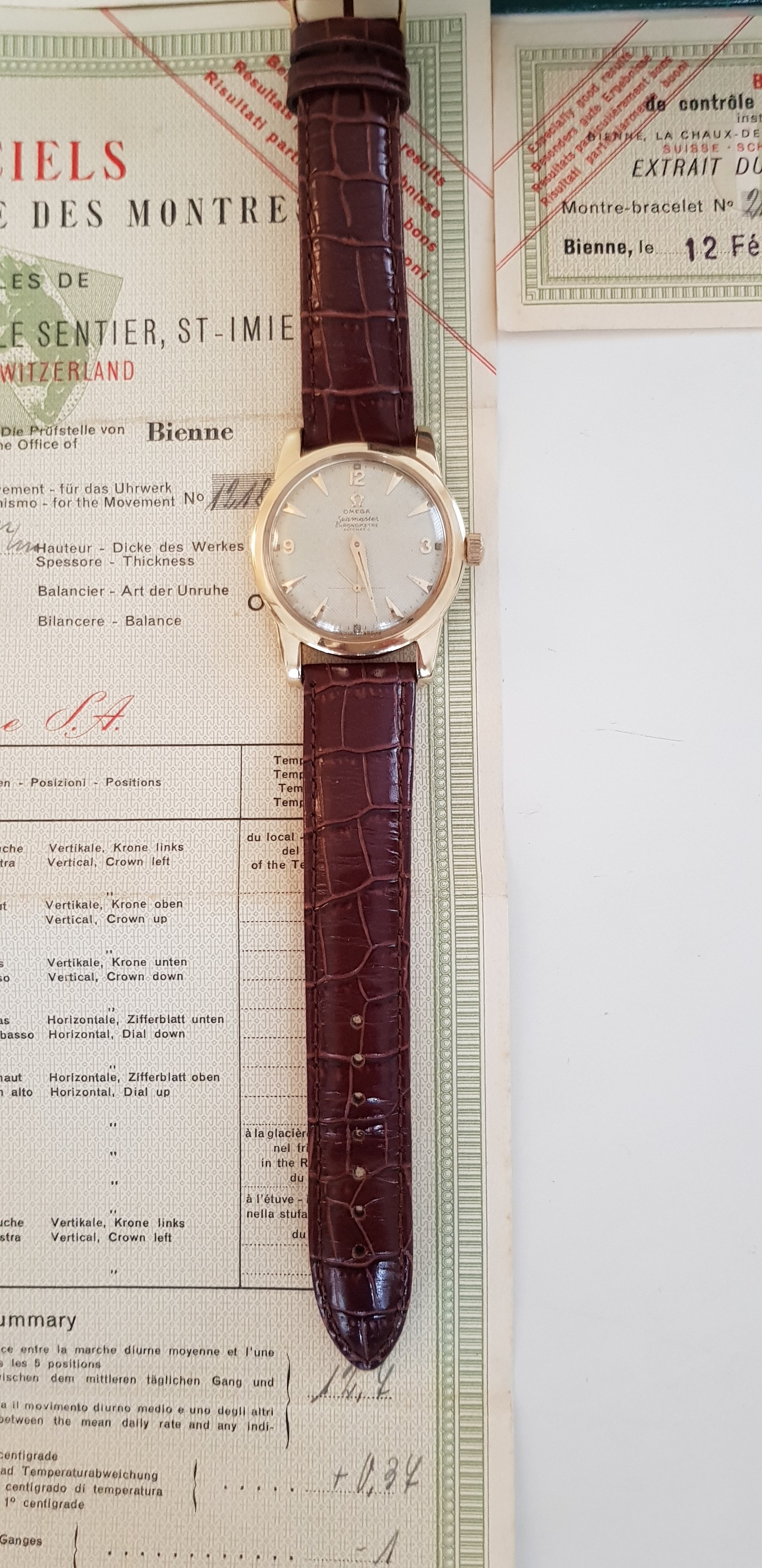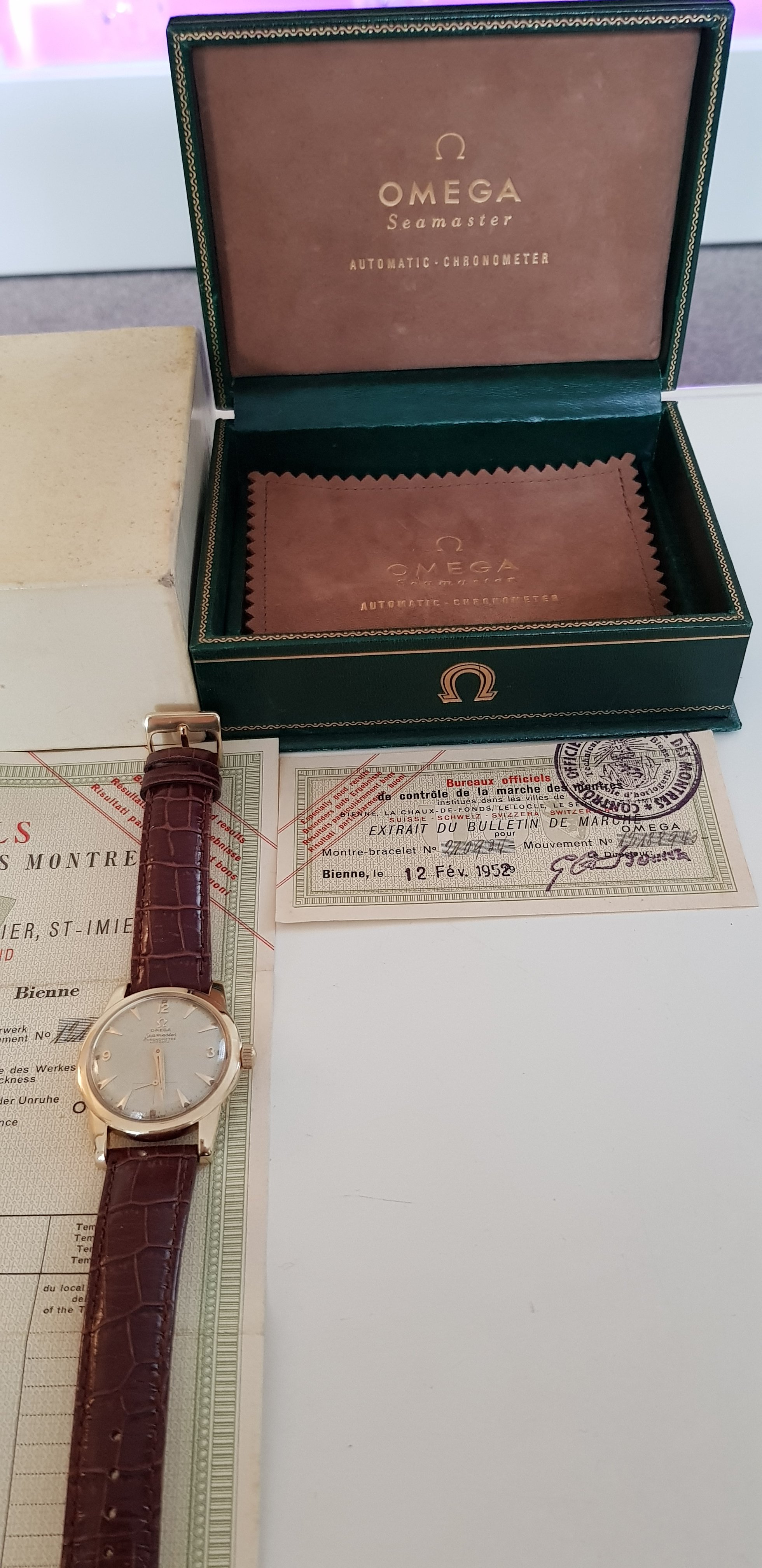 There may be a difference of 2 years or more between the date that the movement was produced and when it was delivered by Omega to an importer or wholesaler. In the case of a tested chronometer, it could take longer.