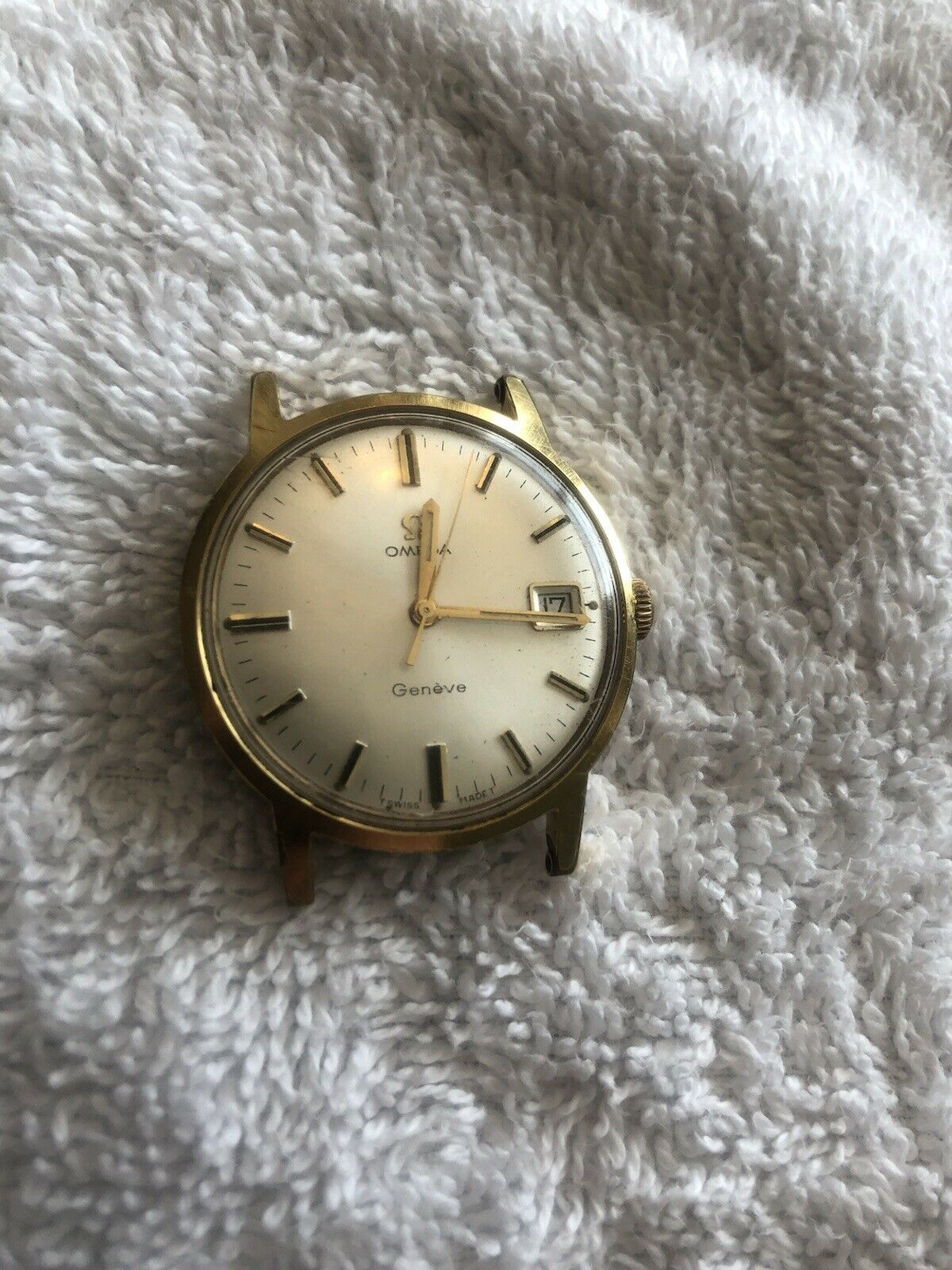 "Vintage omega bumper watch. Condition is "Pre-owned". Shipped with USPS First Class. Works and runs just fine by twisting the crown a few rotations. Date adjusts properly as well. It ran from full wind-up close to 48 hours. Over 24 hours it was odd around 15 seconds. This was purchased at an estate sale. It has not been adjusted. I threw away the old (not Omega) watch band and cleaned it, but that’s all. Great watch for someone to get a new band and have it properly adjusted by a jeweler."