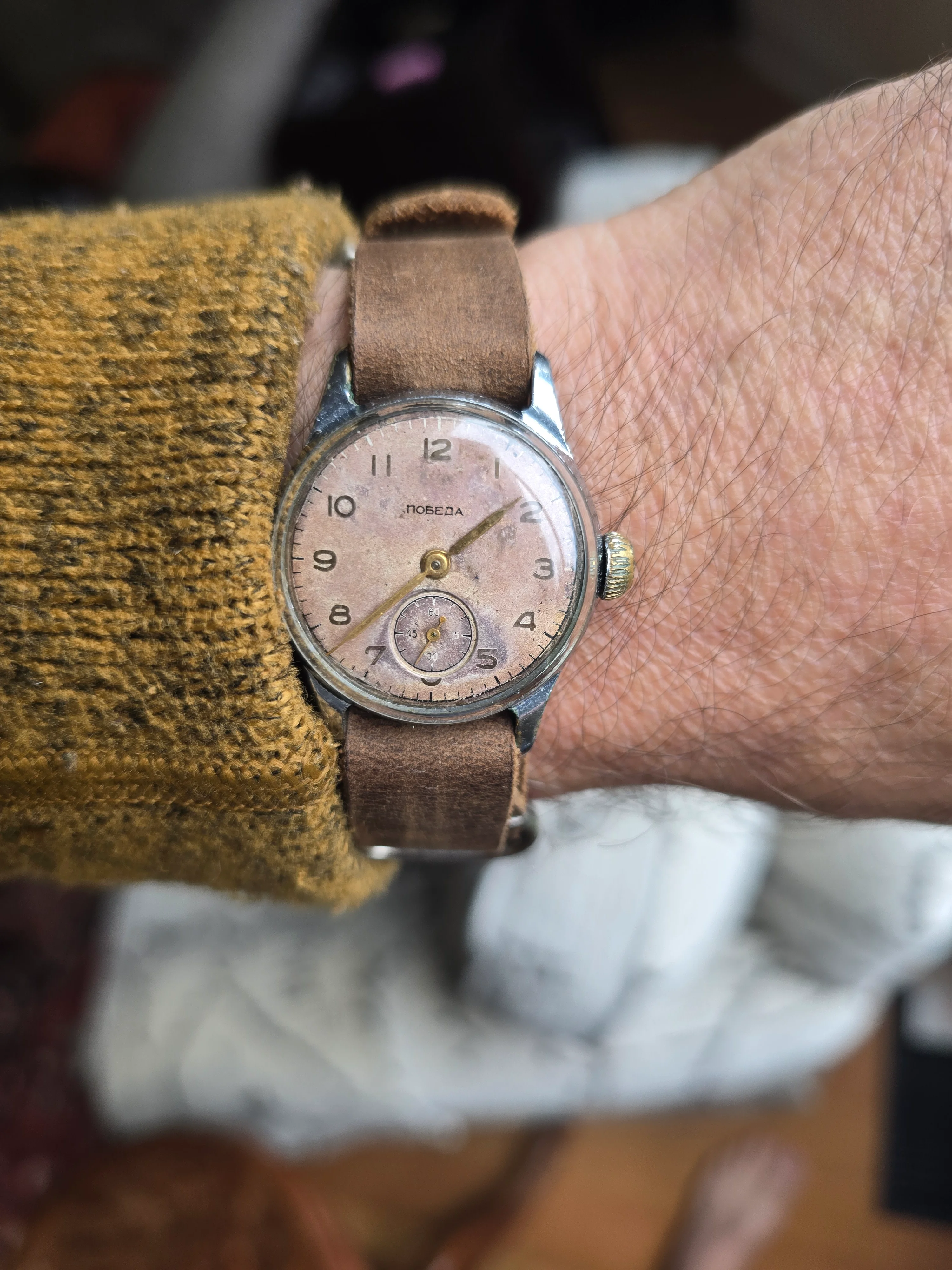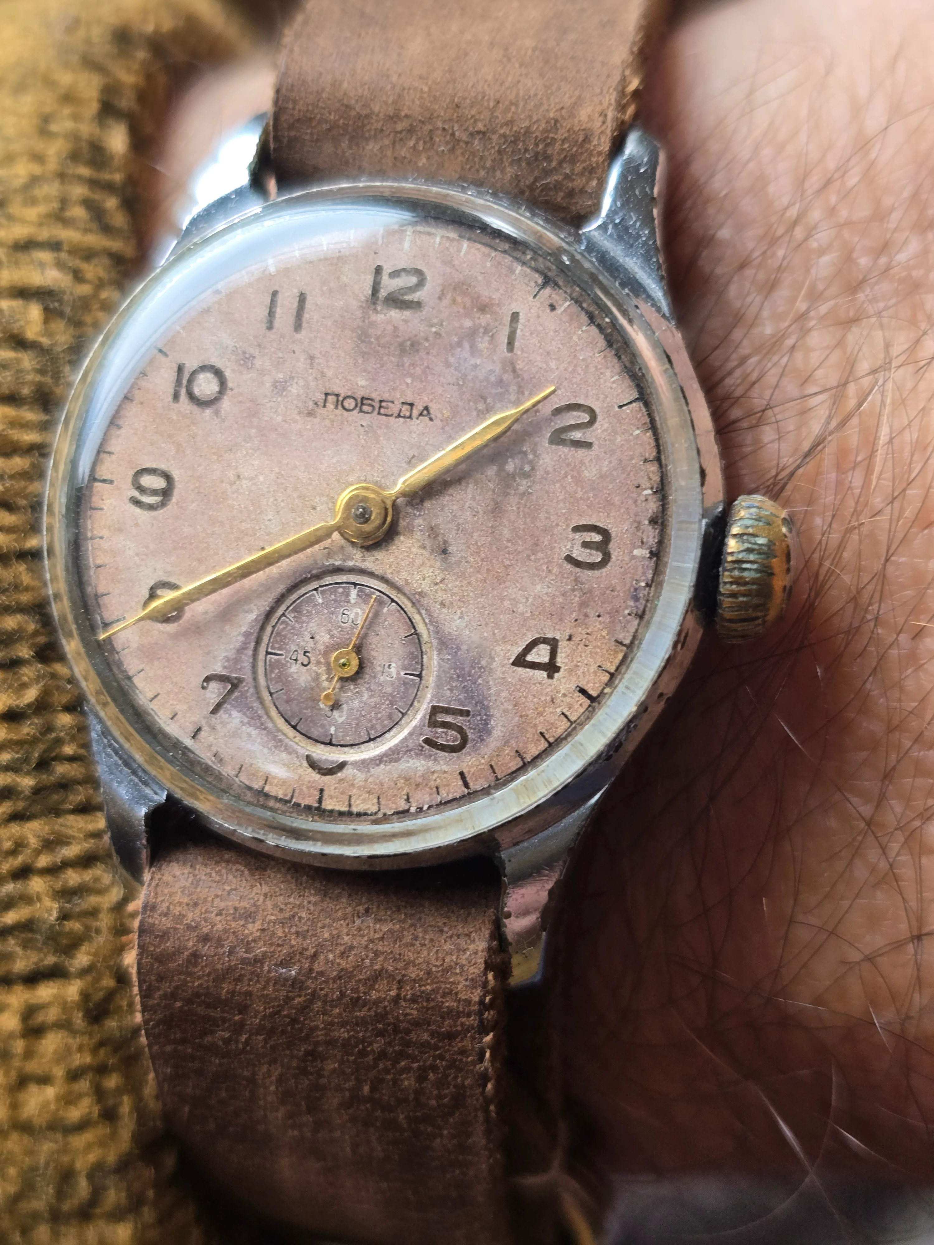 Alright, here it is: Genin's Pobeda! The tiny seconds hand can be seen ticking away in the video.