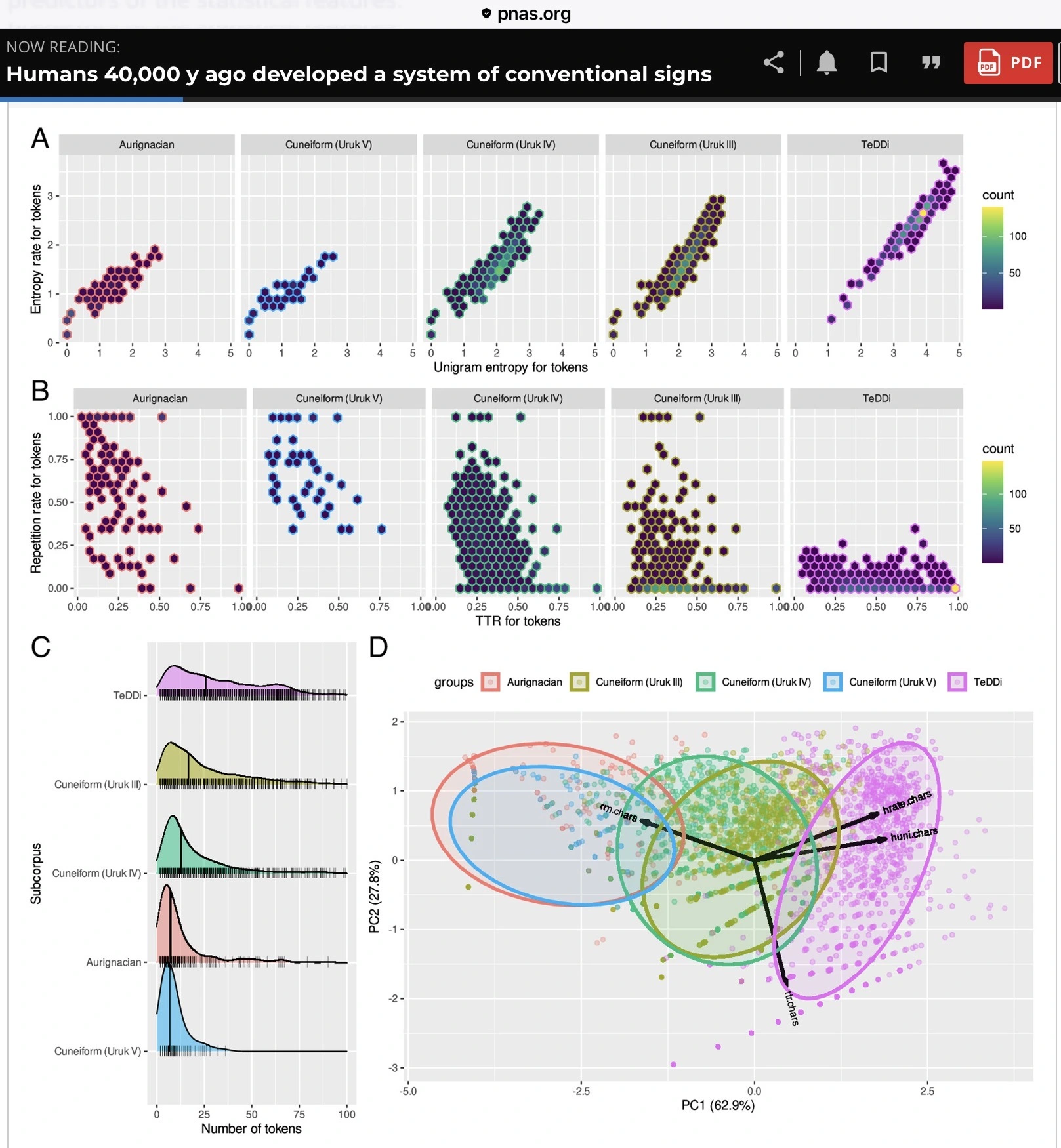 More museum fodder I hear you saying. Thing is they have dated it to 45,000 BCE so predating the previously considered earliest forms of cunieformic tablets from the Middle East by 40,000 years! About the time H. Sapiens from Africa started mingling with the indigenous Neanderthals.