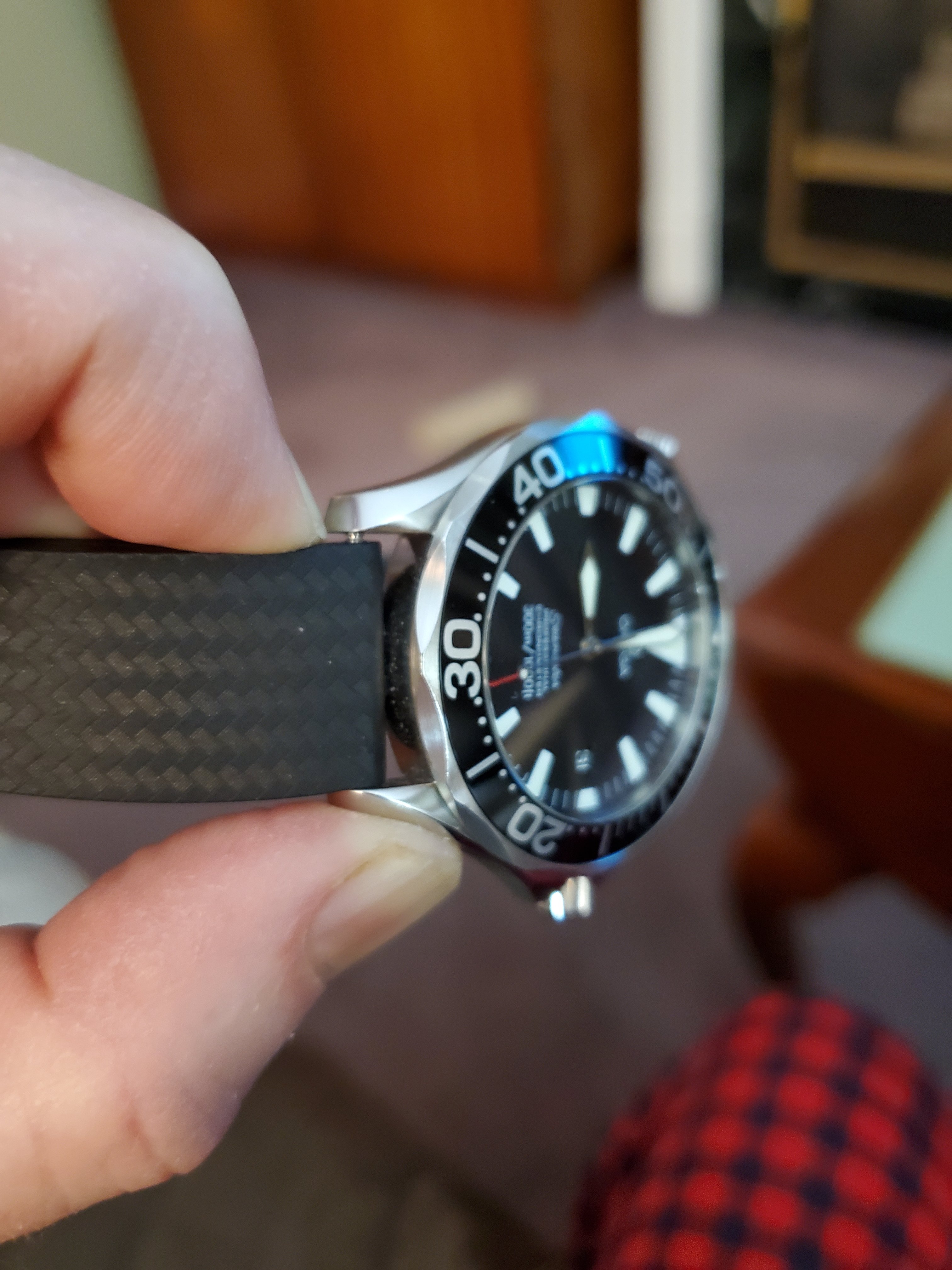 You could also leave it on the tighter one and it might eventually loosen up to fit perfectly over time. I know the leather strap on my GSOTM did exactly that, but I'm not sure if rubber will act the same way. To speed this up, you can keep the watch strapped to the watch pillow it came with.