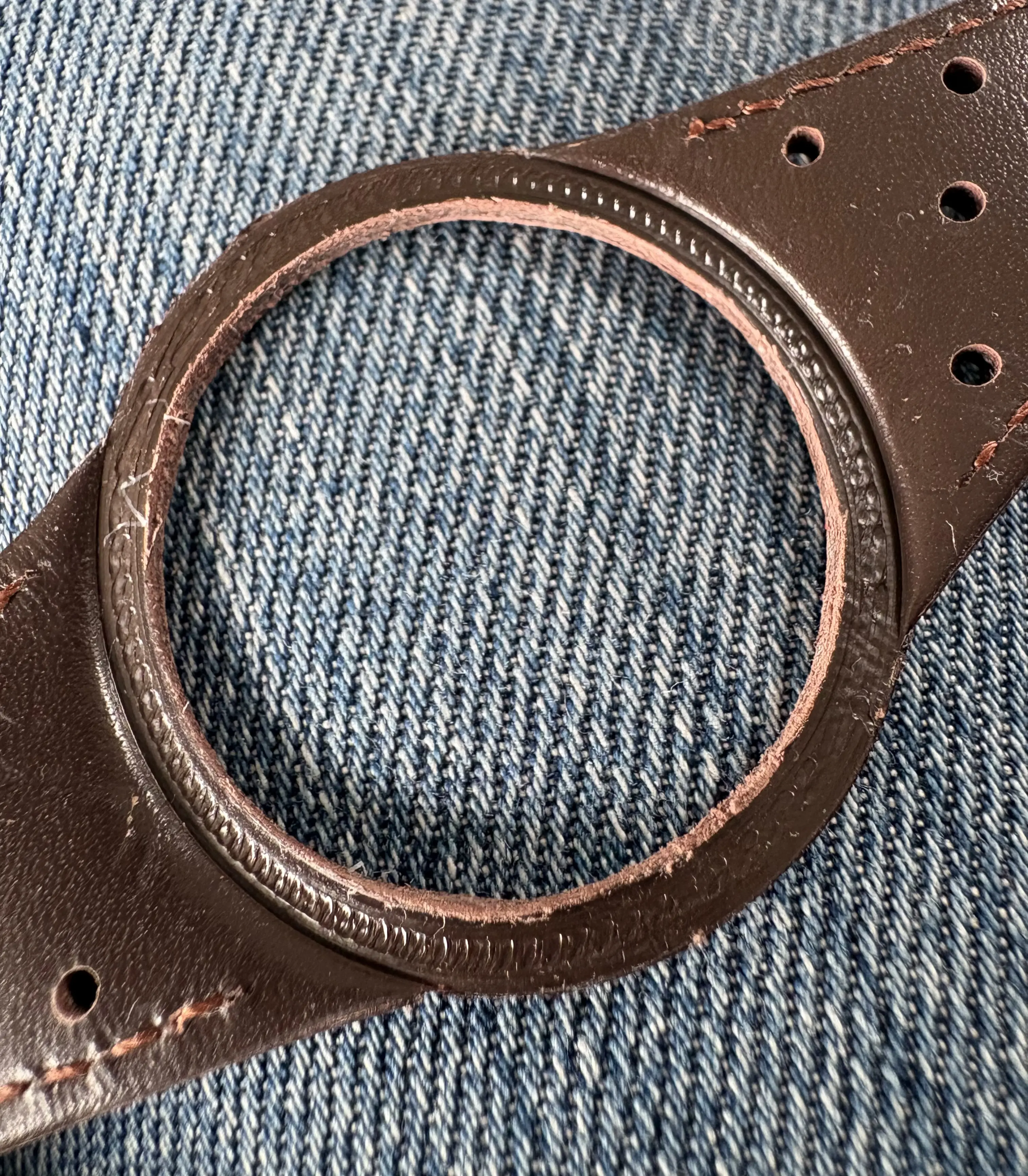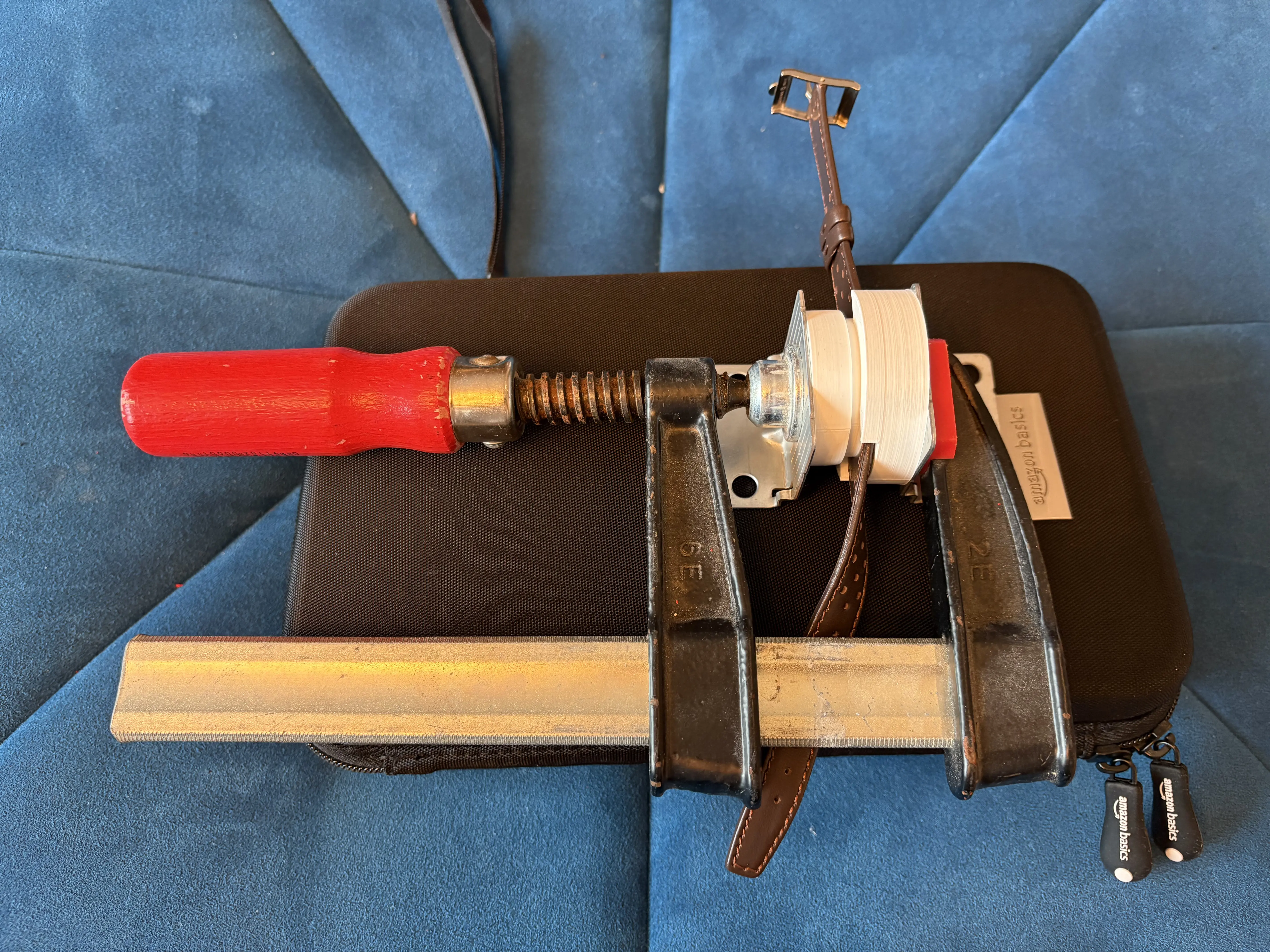 Leather band after ~6 days in a press; I tightened up the clamp every couple of days.