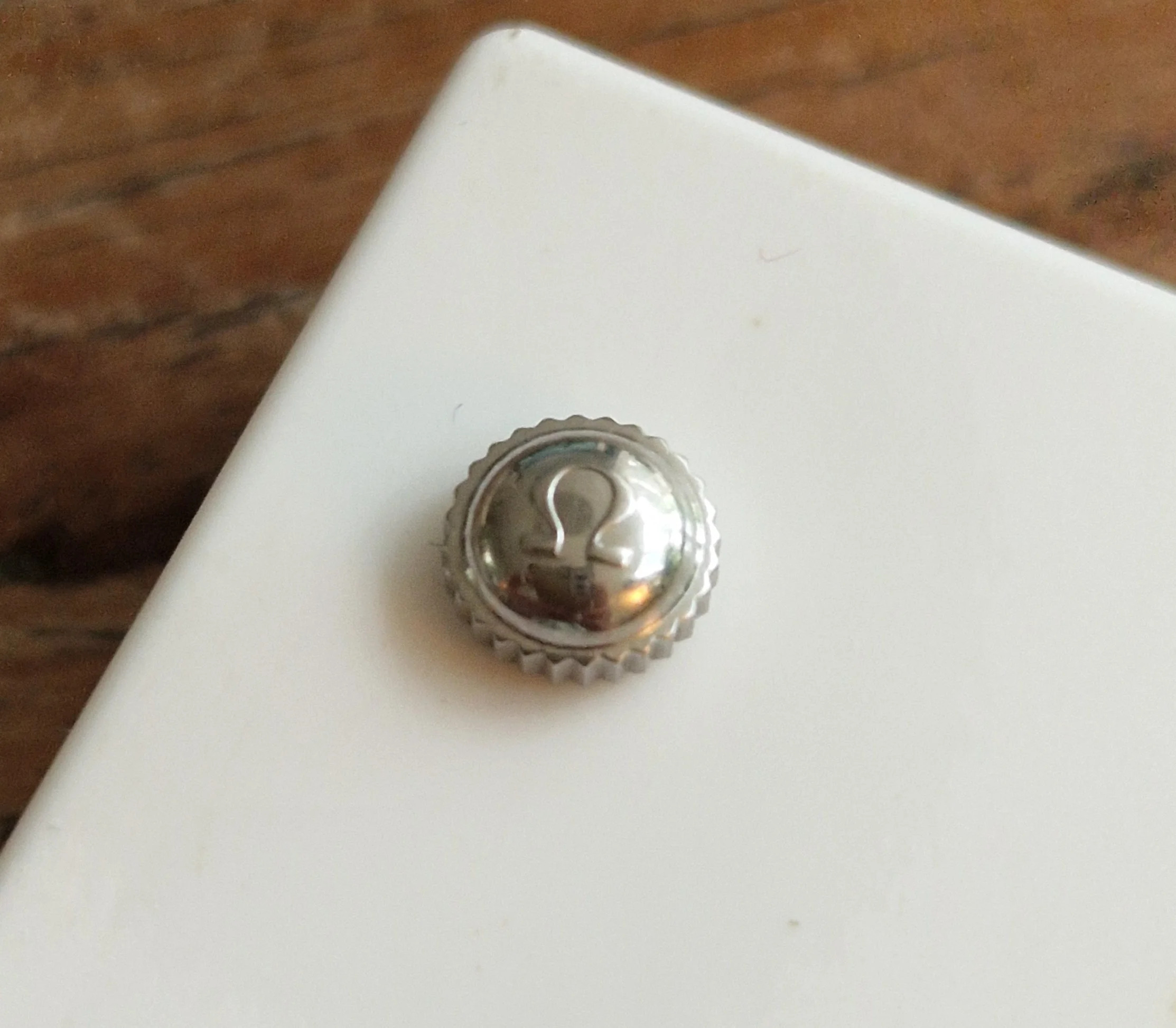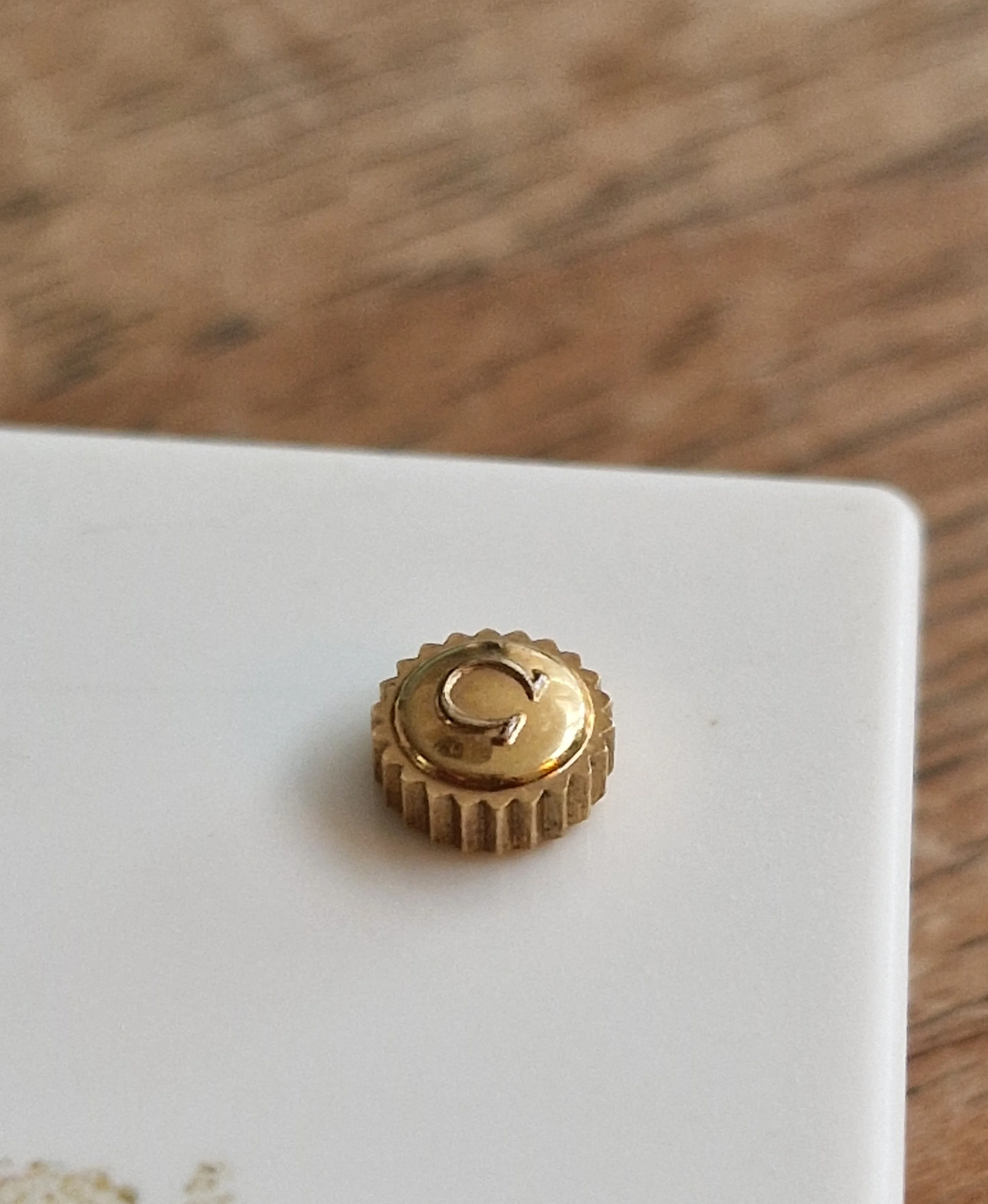 €75 Ranchero (crown ref. 4503) gold colour : 5.5mm diameter. 2.5mm thick. 2.5mm tube. 1.2mm crown thread (later 1960s logo on this one)