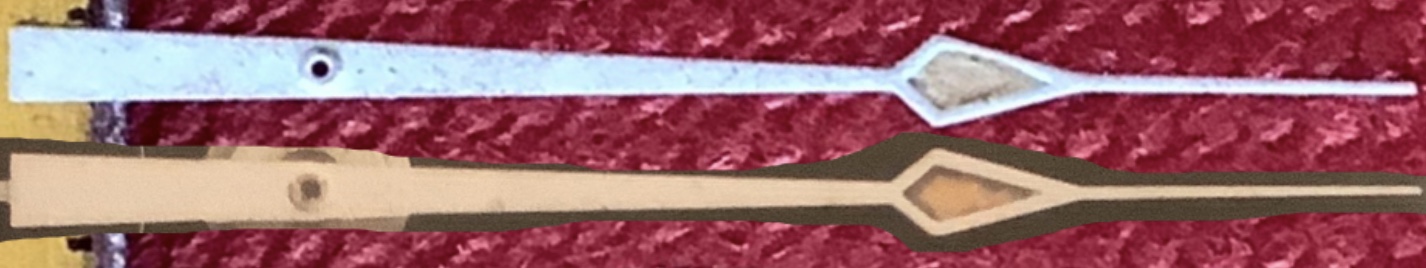 ·I’ve looked for clear information on flat tail hand dimensions and haven’t really found much. I’ve got three Tritium flat tail hands that initially look to be all the same, but on closer inspection there is one that is fractionally longer than the other two. Measuring as best as I can I get one at 18.80mm and the other pair at 18.30mm. In MWO there is no mention of lengths in the main hands section, but the Ultraman orange hand is described as 18.80mm so I concluded that my 18.80mm hand is probably an original hand. The other two might be Tritium service hands (which I understand can be slightly shorter).