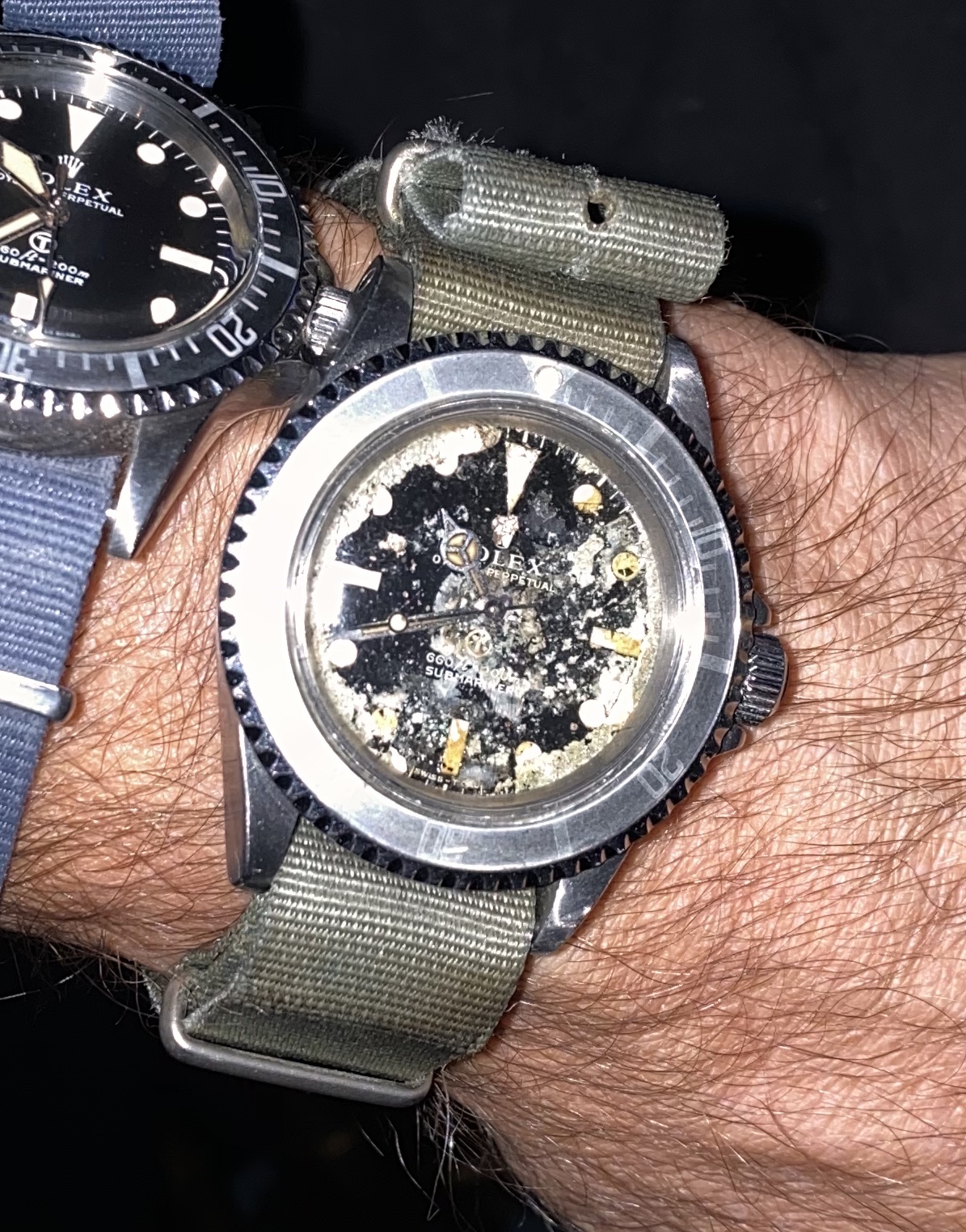 Interesting to see how a watch can be damaged in a fire. Tbh I would imagine worse. Hands are still "intact" as is the inner bezel. Maybe the crystal saved them, but was detached later to see whats left inside. Would be interesting to see the movement.