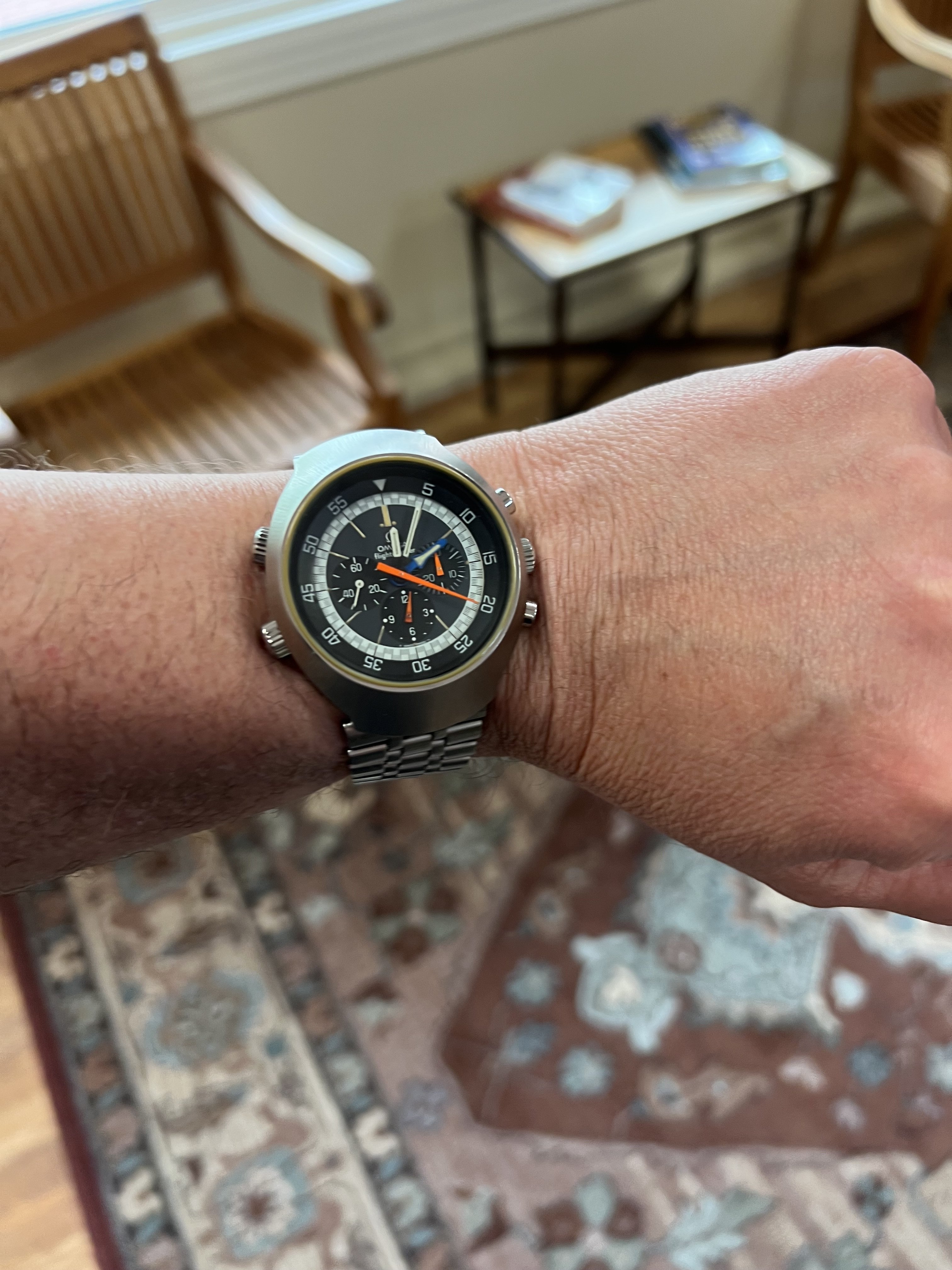 So I've got a line on a well preserved flightmaster. I've always been interested in the wonderful complex chaos of this watch. I was thinking of picking it up, but I might need to move quickly. I have a flat 6.8" wrist that easily wears a seedy and a seamaster w/room to spare. I do wear a 44mm Panerai luminor at times, but that's pushing the boundaries for me.