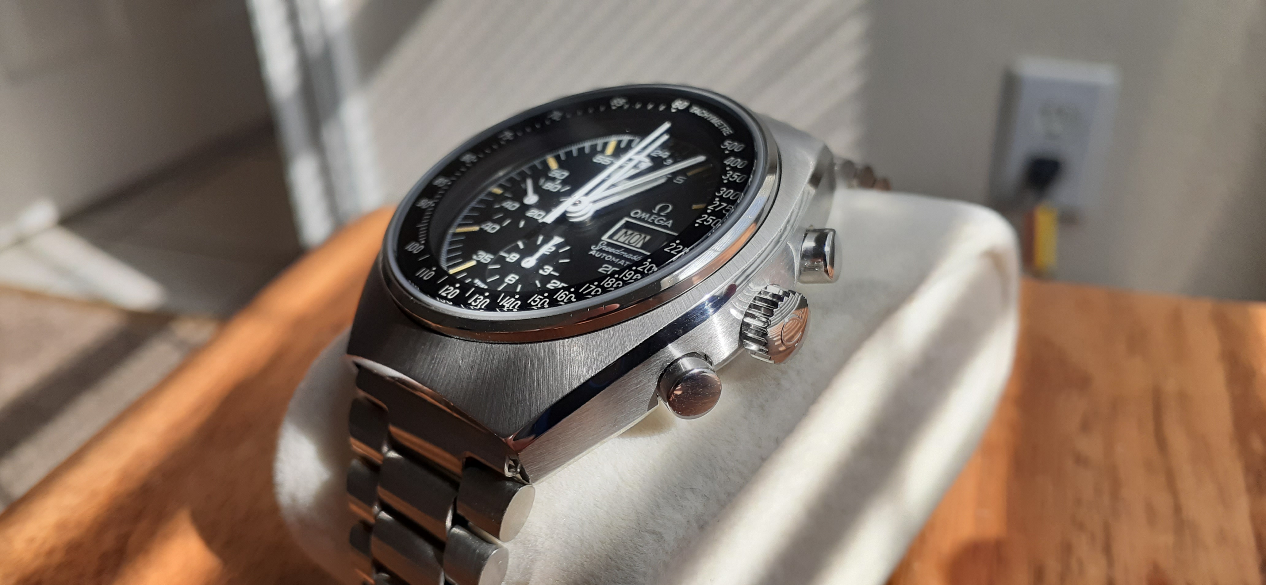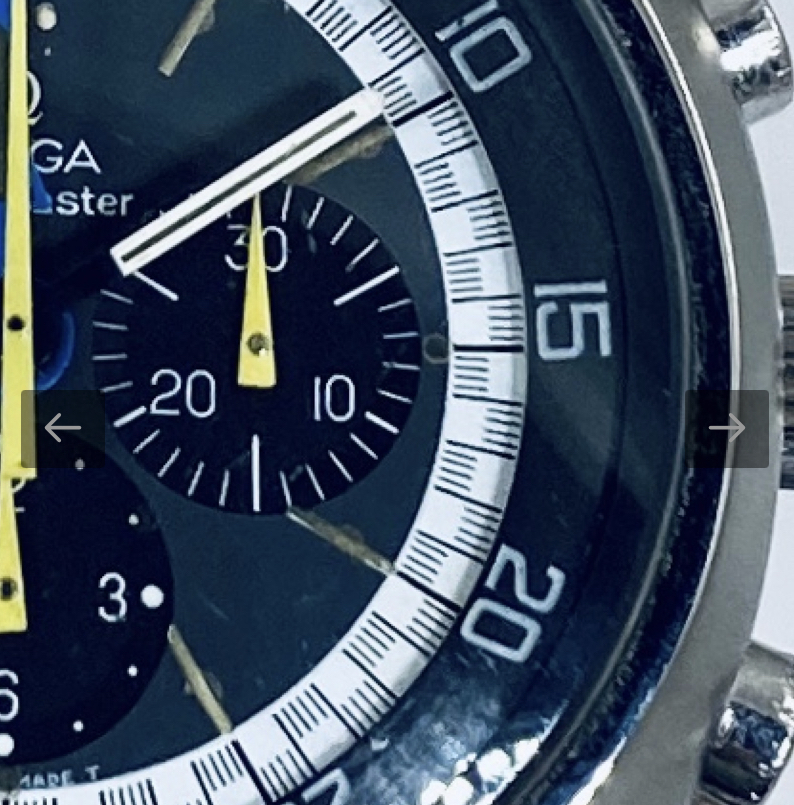 - Seller states that this is a 145.013, which would make this transitional, but is the dial correct for that? I haven’t seen the 3/6/9 line dots on a transitional with the sub dial ‘3m’ font the way it is.