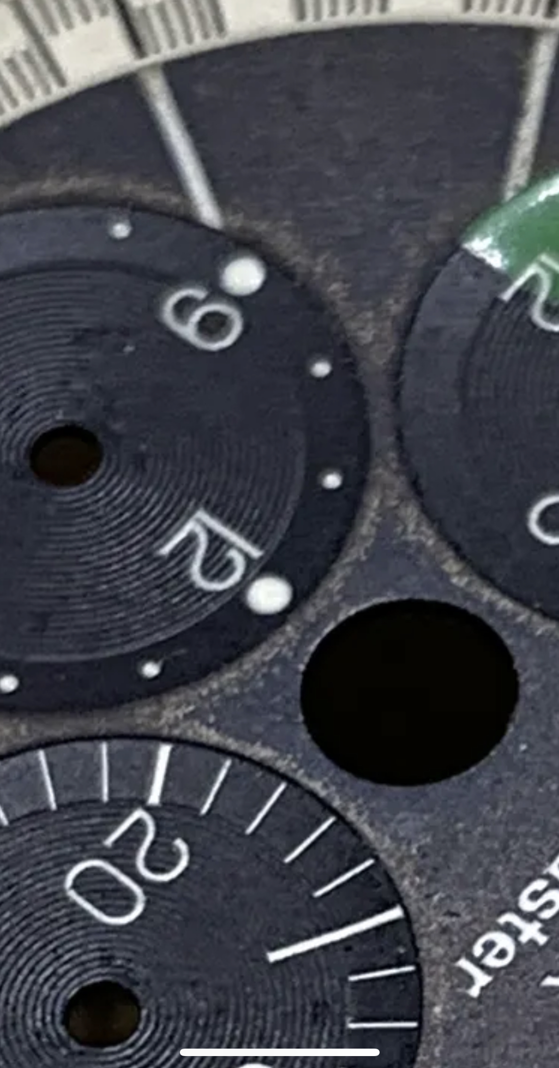 I’ve been enquiring about this one as the colour is great compared to others but I can’t make sense of what looks like a salty-like bleed on the edges of the subdials and near the top markers. Any thoughts to what it is? Will it get worse? And can it be stabilized or rectified. I’d asked for close ups and these were the best they gave me.