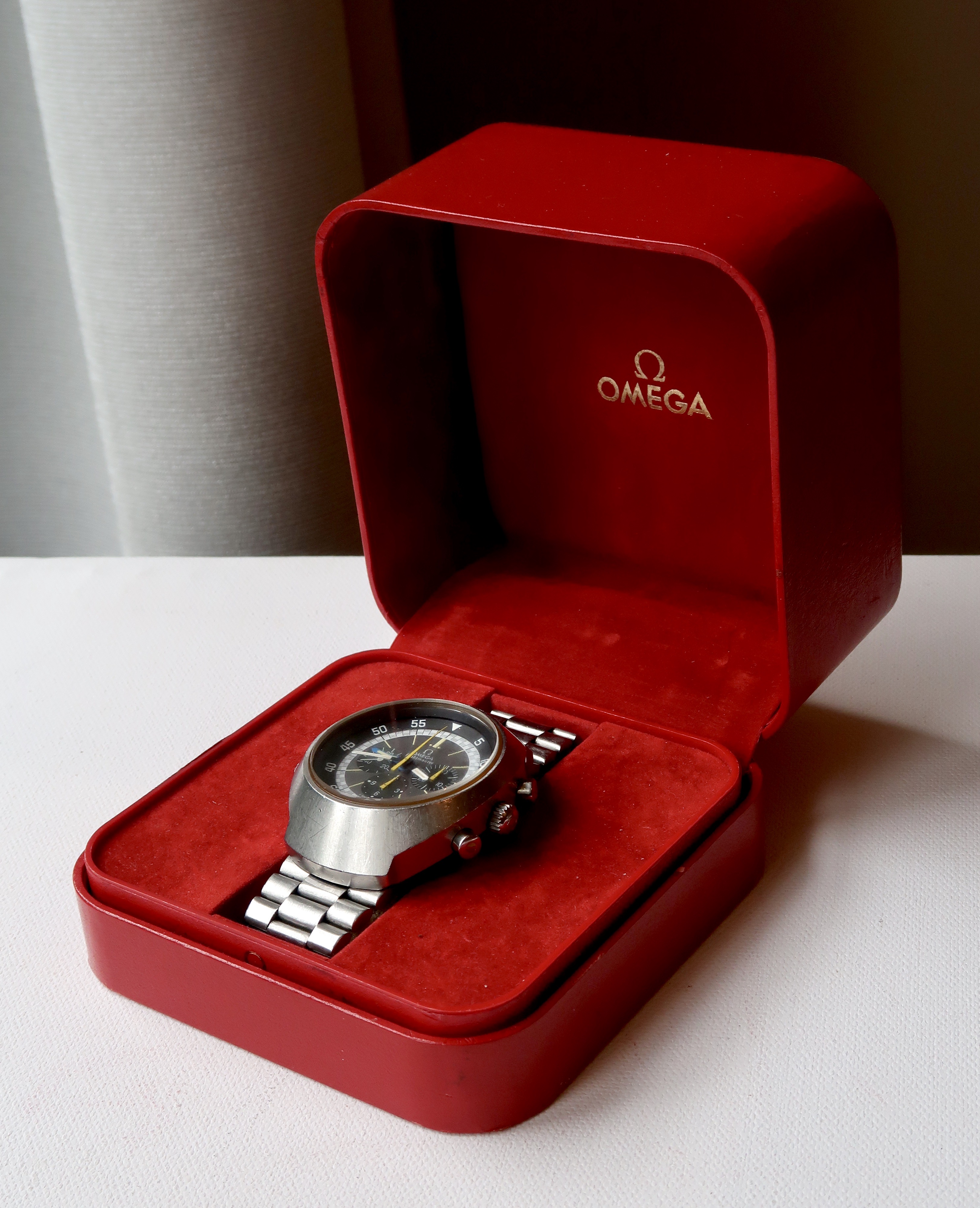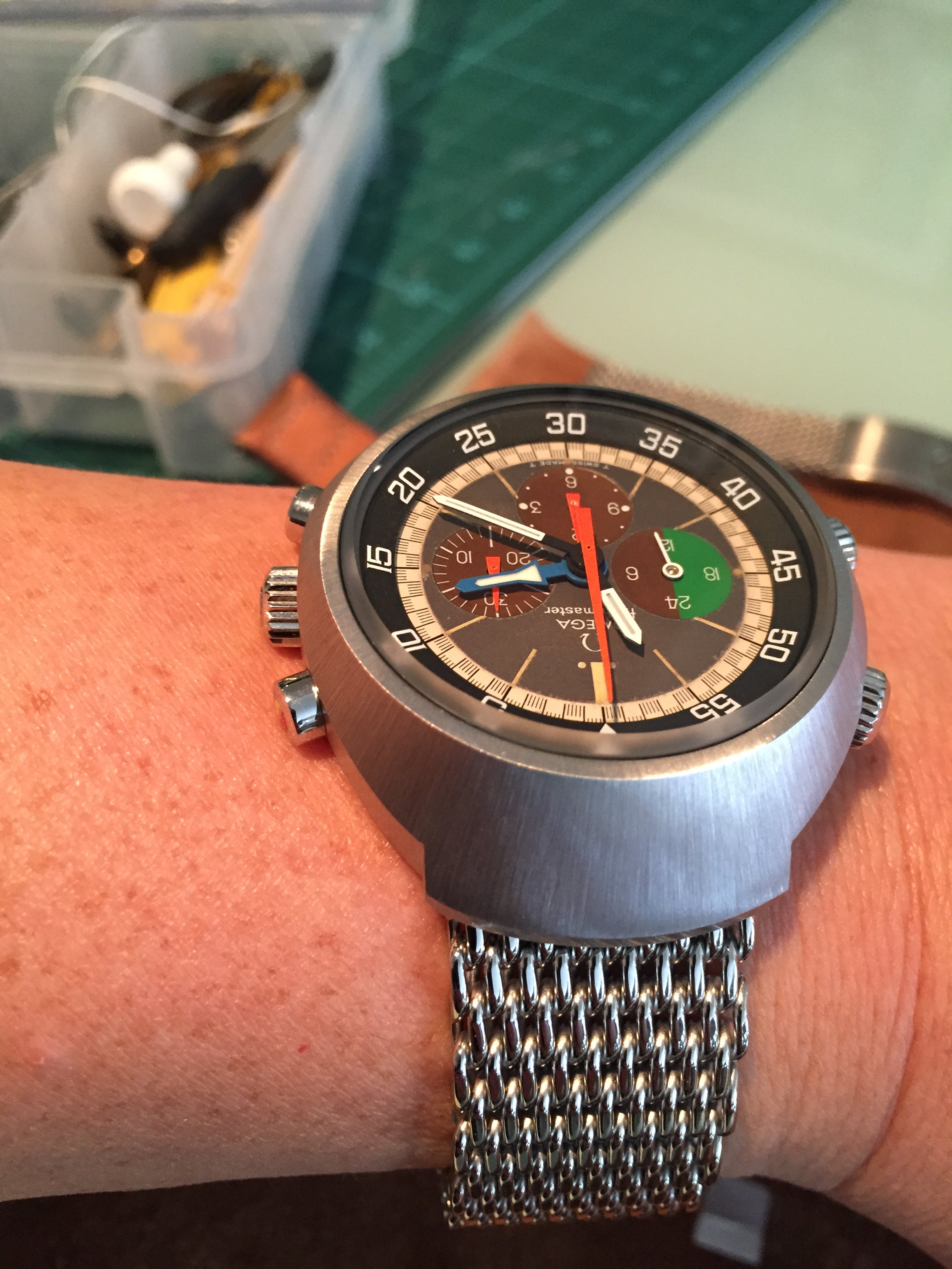 I suggest yours would come up nicely (no polishing!) with a new crystal, movement and bracelet service from an Omega licensed watch repairer, and a good clean. It will still look used, but full of character, whereas if you ask Omega to do a factory service it will come back to you looking like a new watch.