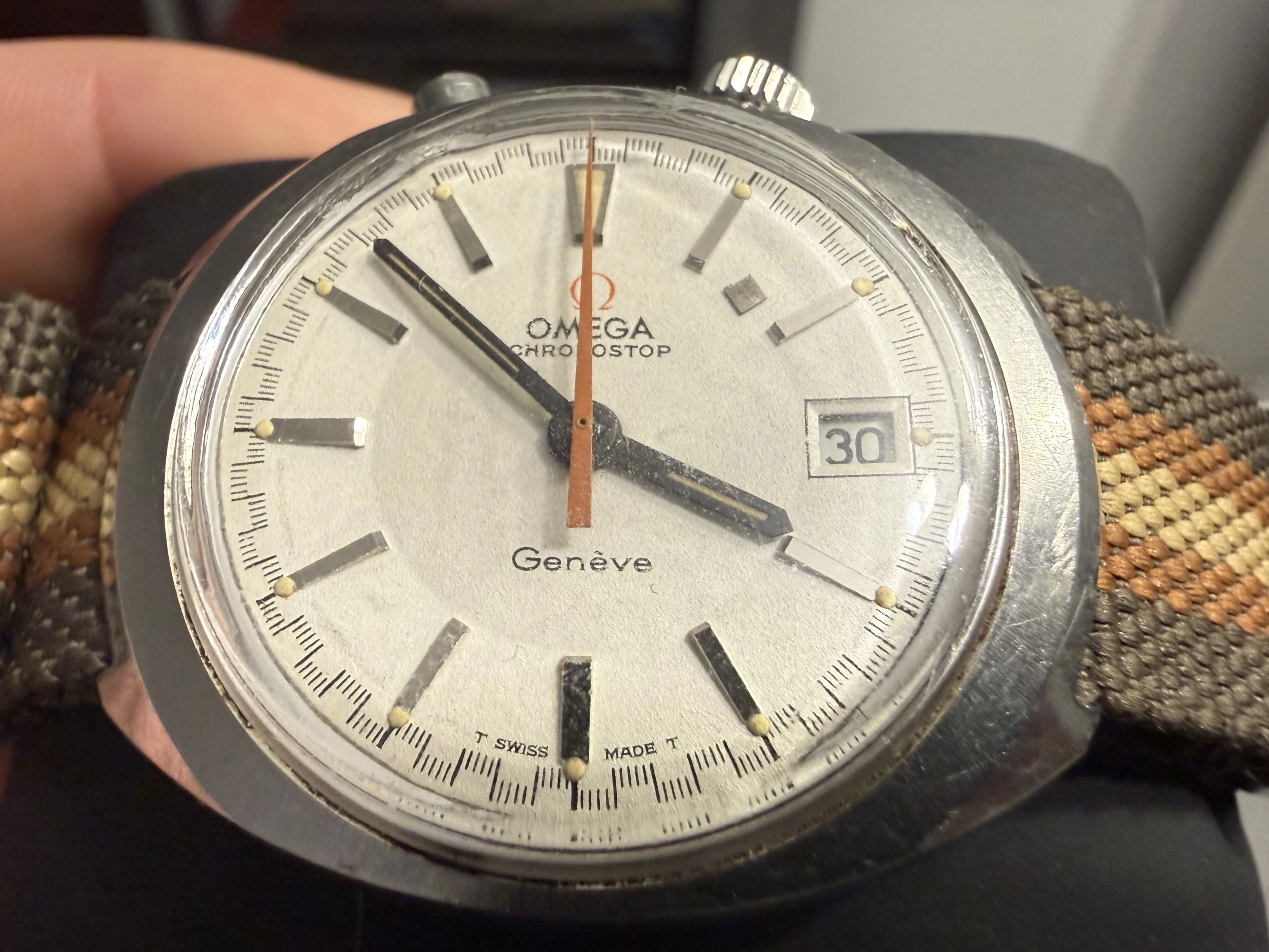 ·Today I was about to wear my chronostop when I noticed what appears to be a loose metal square on the dial.