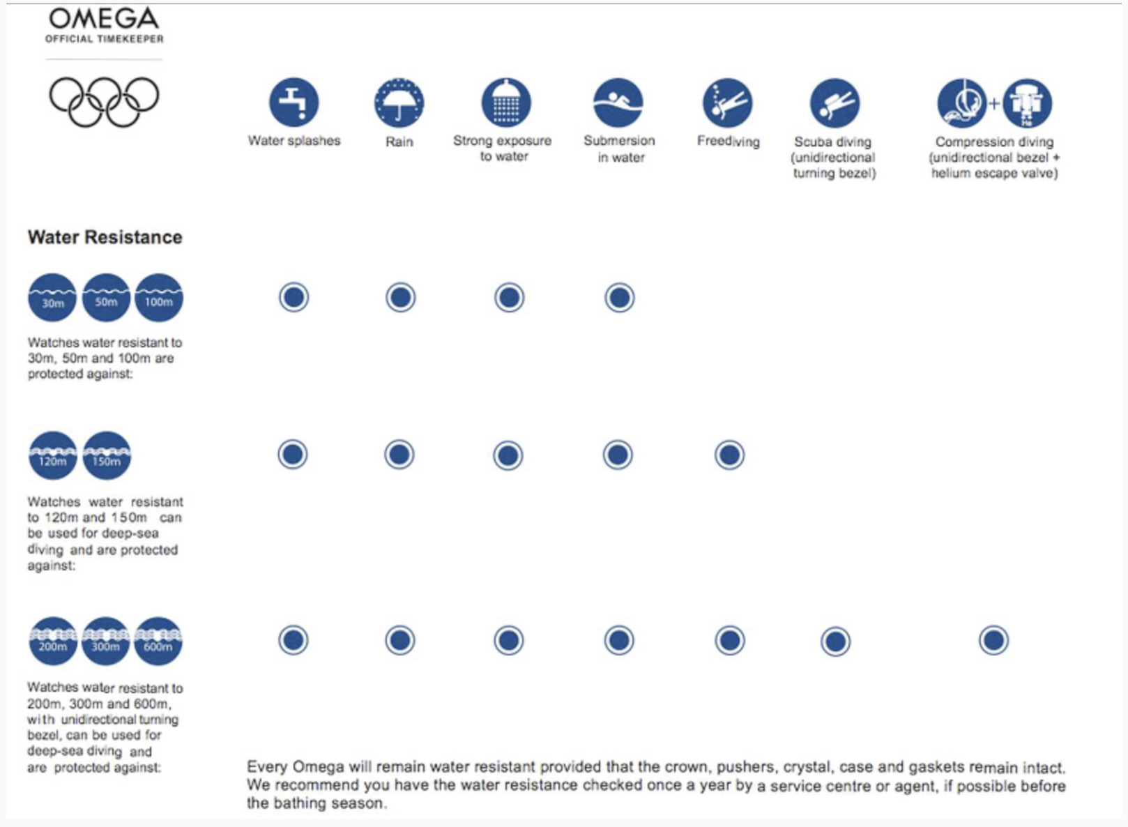 I am really confused reading this and coming from the Sales aspect every client I have personally dealt with have never been intrigued by the water resistance unless they know that they will be using it within water. Also its odd trying to understand your logic hotwheels and you have made it sound like you would be diving with a Speedmaster.... and those just don't go together, the Speedmaster moonwatch is designed with a water resistance of 50 meters, now does that mean you could dive with it? sure, do as you please, as the security of that timepiece is not equipped for the venture of an underwater excursion but again the consumer can do as they please as they own it. All of the DIVE pieces that omega produces meet the specifications of a Professional dive watch so you would use it for what its intended but no one ever does. Since you shop online you are your own sales person but you do have guidance, always feel free to call a boutique or come to the forums and get some questions you need answered, answered. You are fueling your logic with a "What If" scenario which is making you closed minded with a very broad open ended scenario where literally anything could be a response thus causing this debate to go pages and pages on the OP's thread.