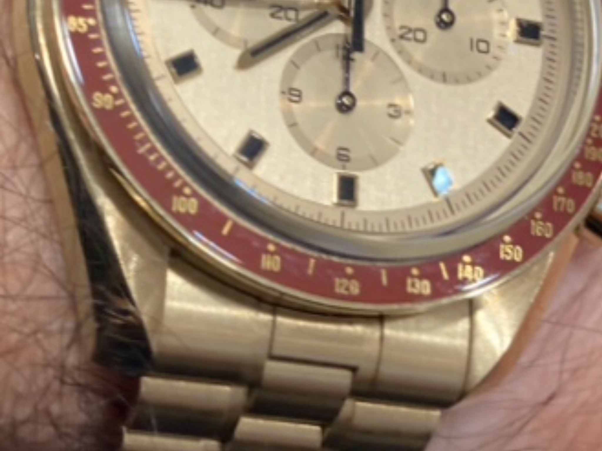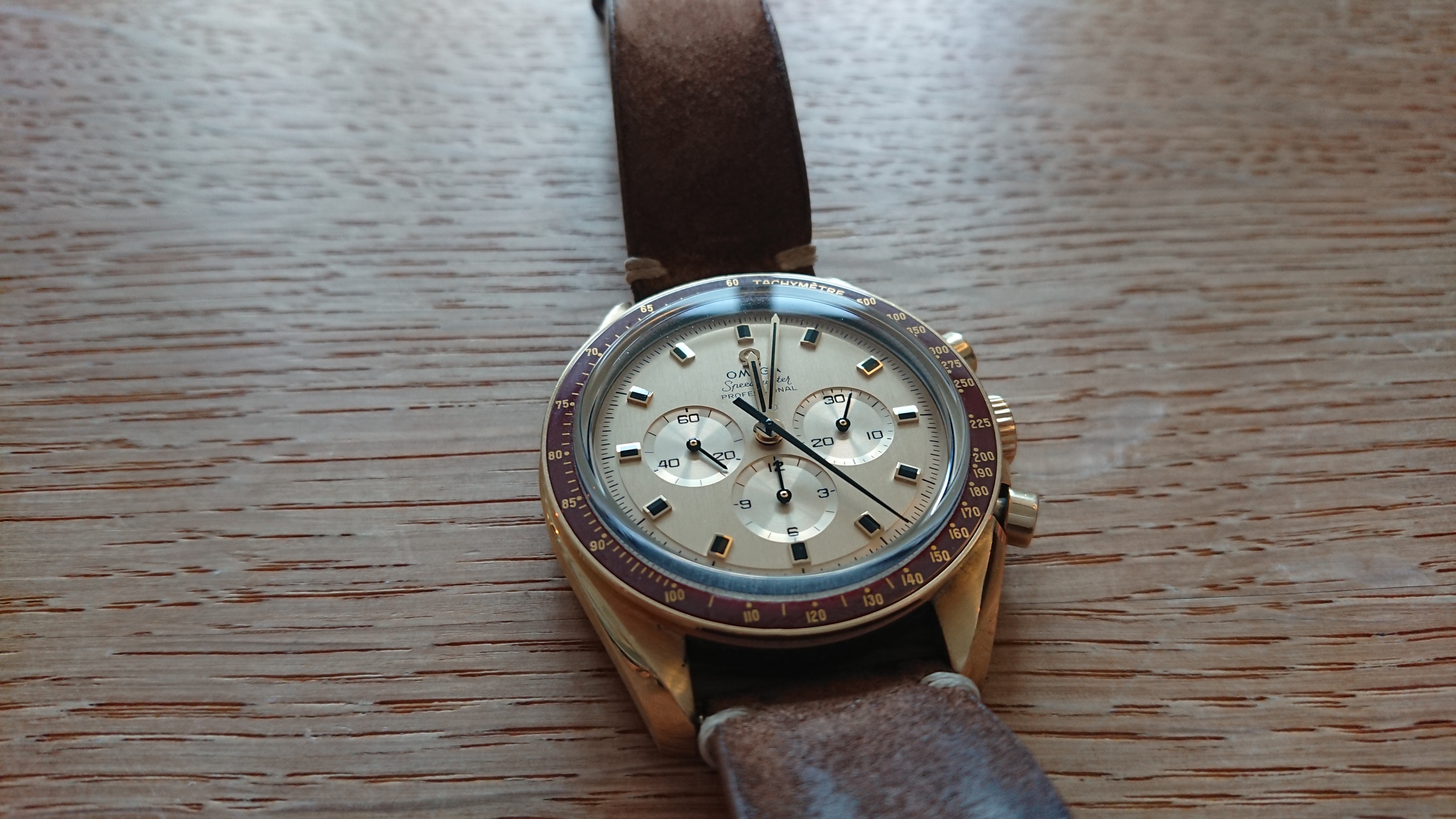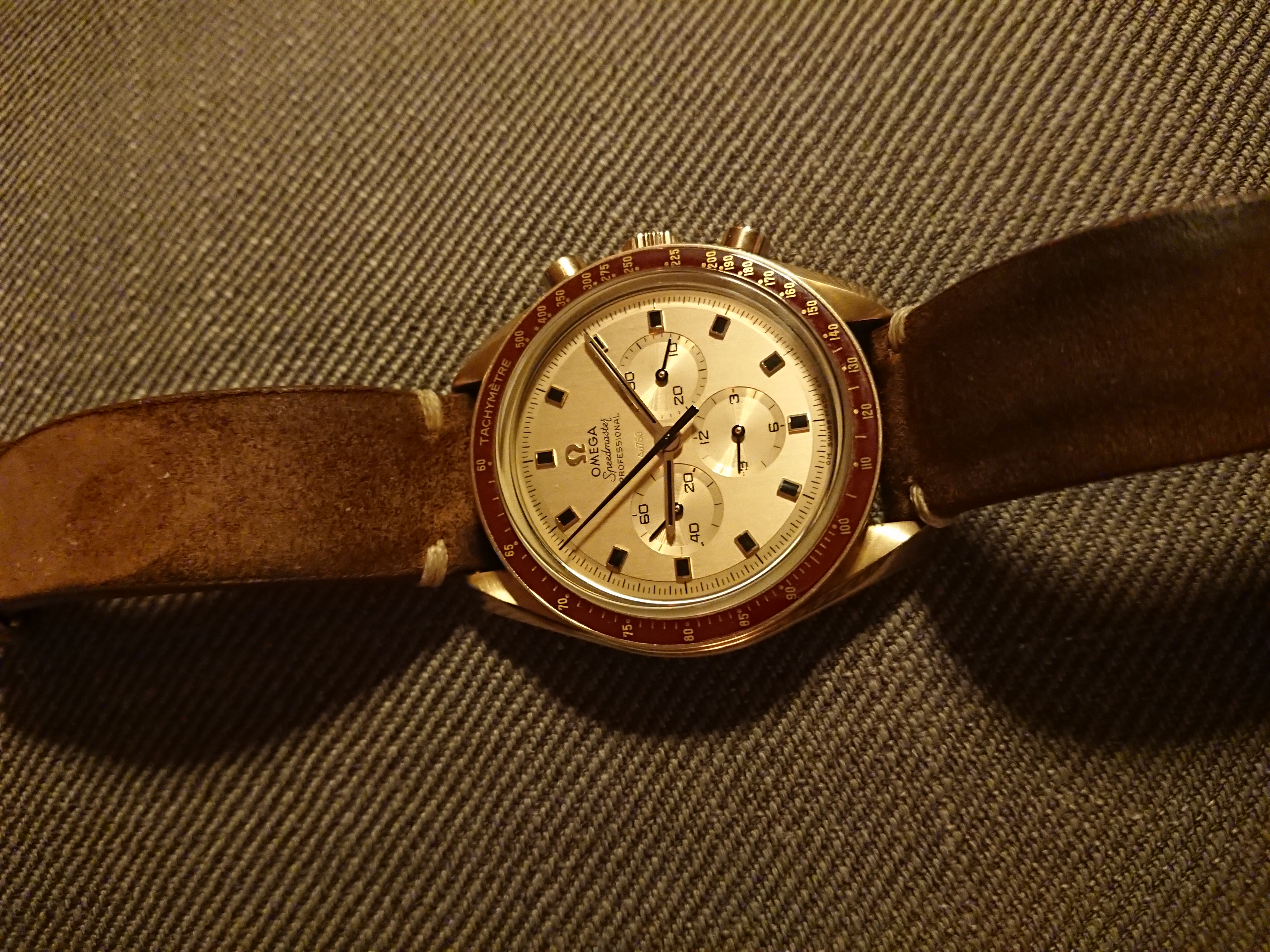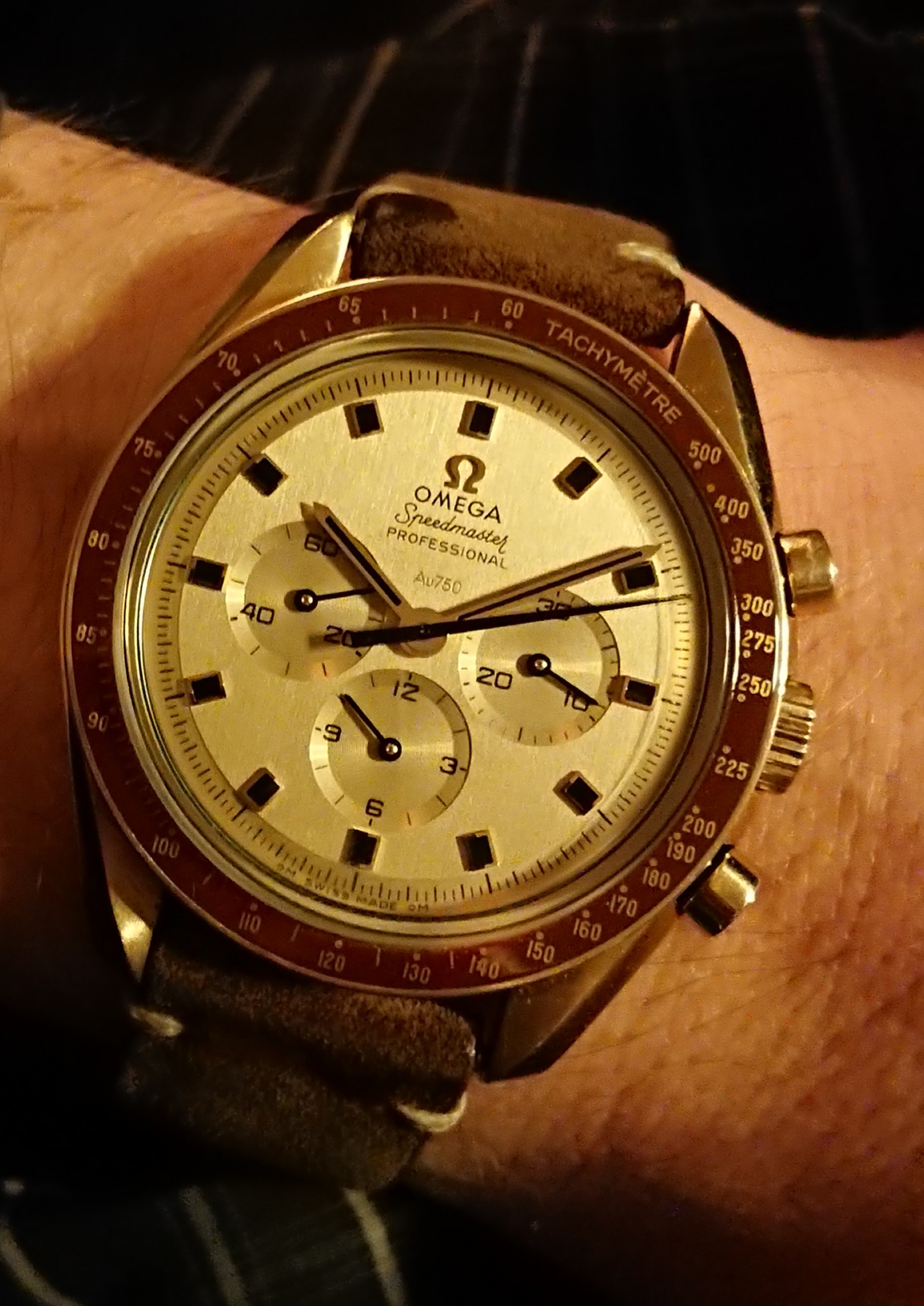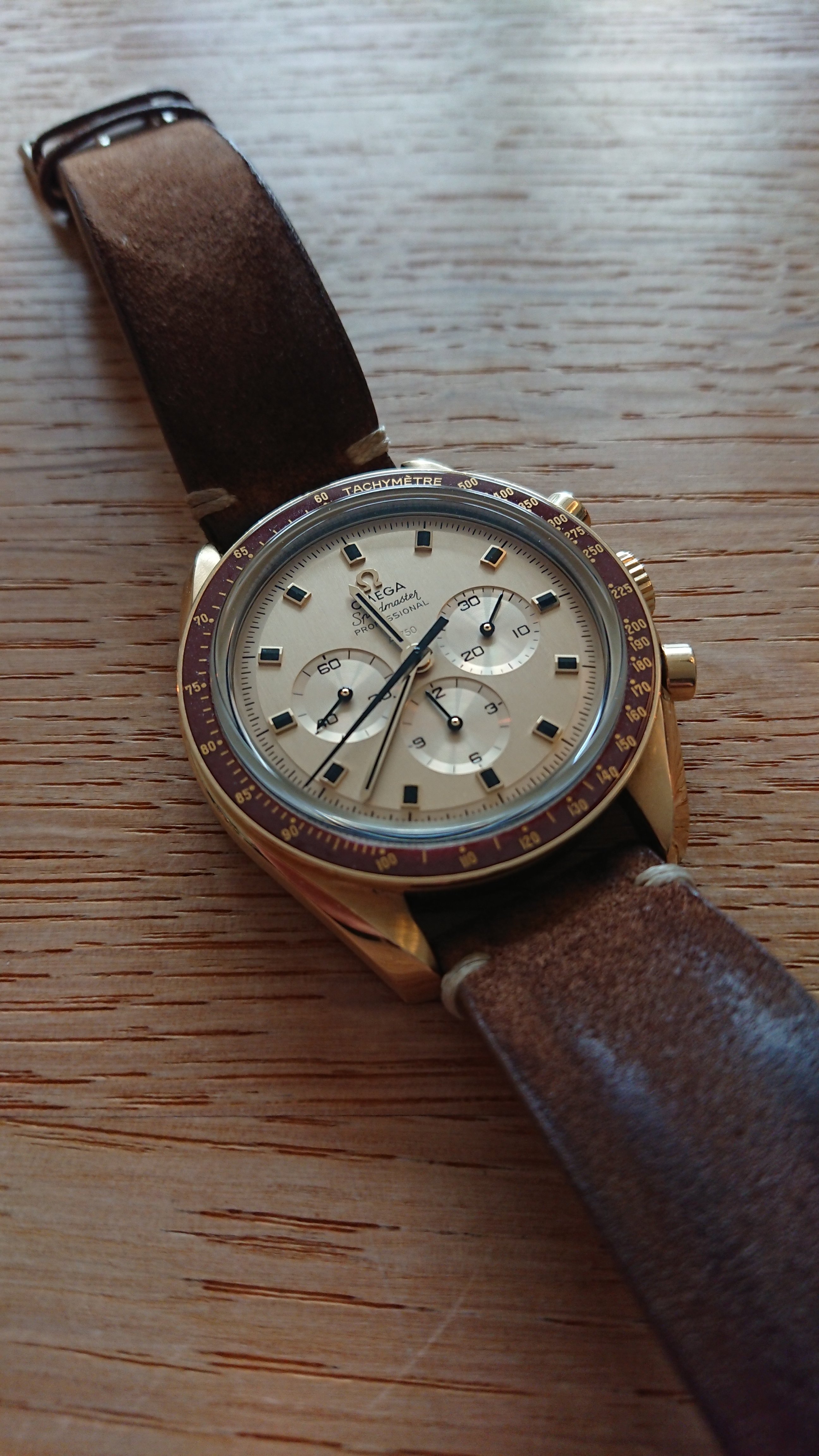 I saw one of these for the first time yesterday - lovely watch. Moonshine Gold is a special material when you see it in reality. Omega had a red gold buckle but I am not sure it would be a match?
