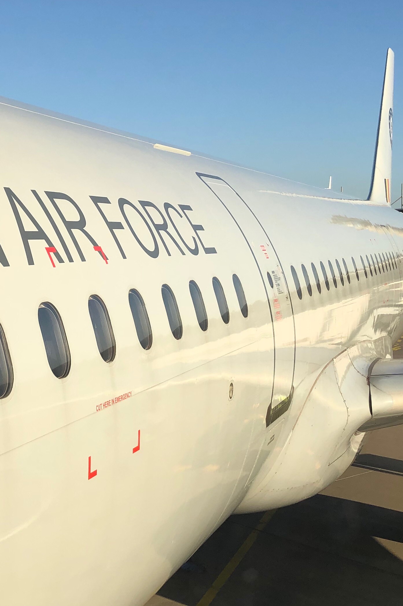 Maybe because his Eurowings Airbus is equipped with an optional Inmarsat antenna so it should be possible to connect to the on-board IFEC system....but I bet he is too busy oggling his new acquisition to waste time figuring out how to connect to it; rightly so.