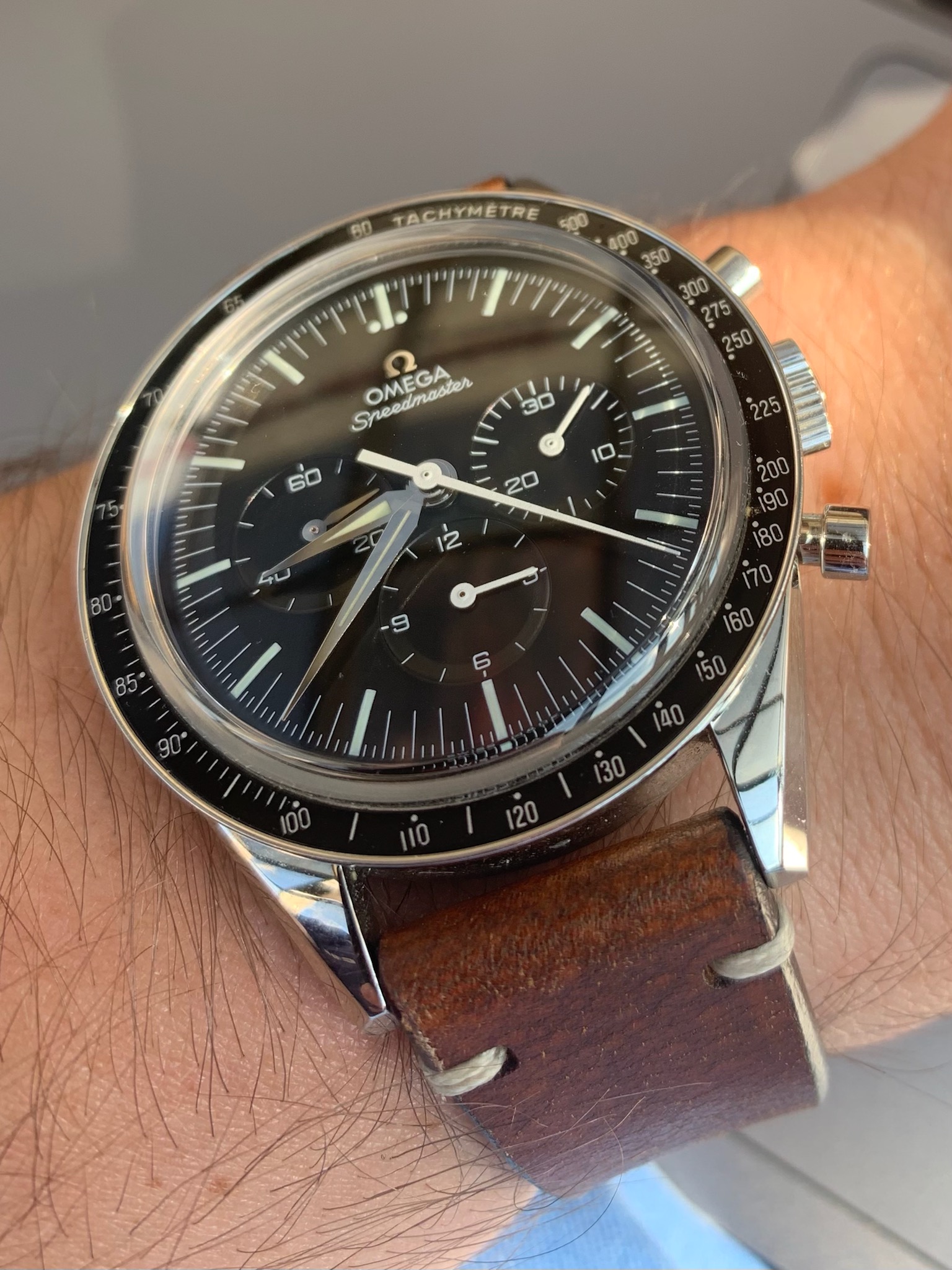 I recently picked up a FOIS and I can’t believe how awesome it is! The Alpha hands and the central chronograph hand are amazing, and the way the watch wears is perfect!! The simplicity of the dial is so cool, I wish Omega would have used a baton continuous second hand, but it is a neat feature to add the leaf shaped second hand to differentiate the FOIS from the original CK-2998. I haven’t taken it off since getting it, such a fun watch!!