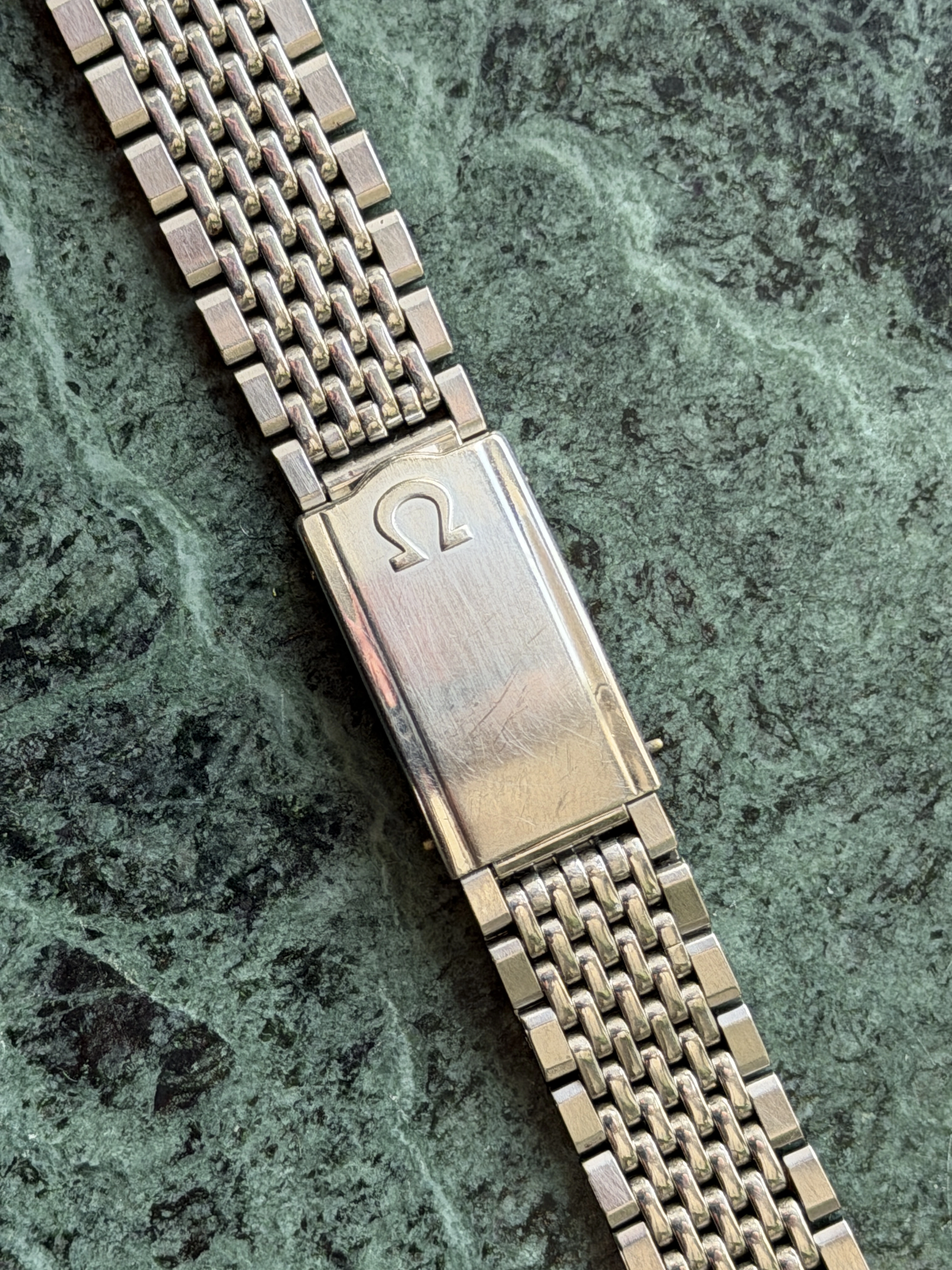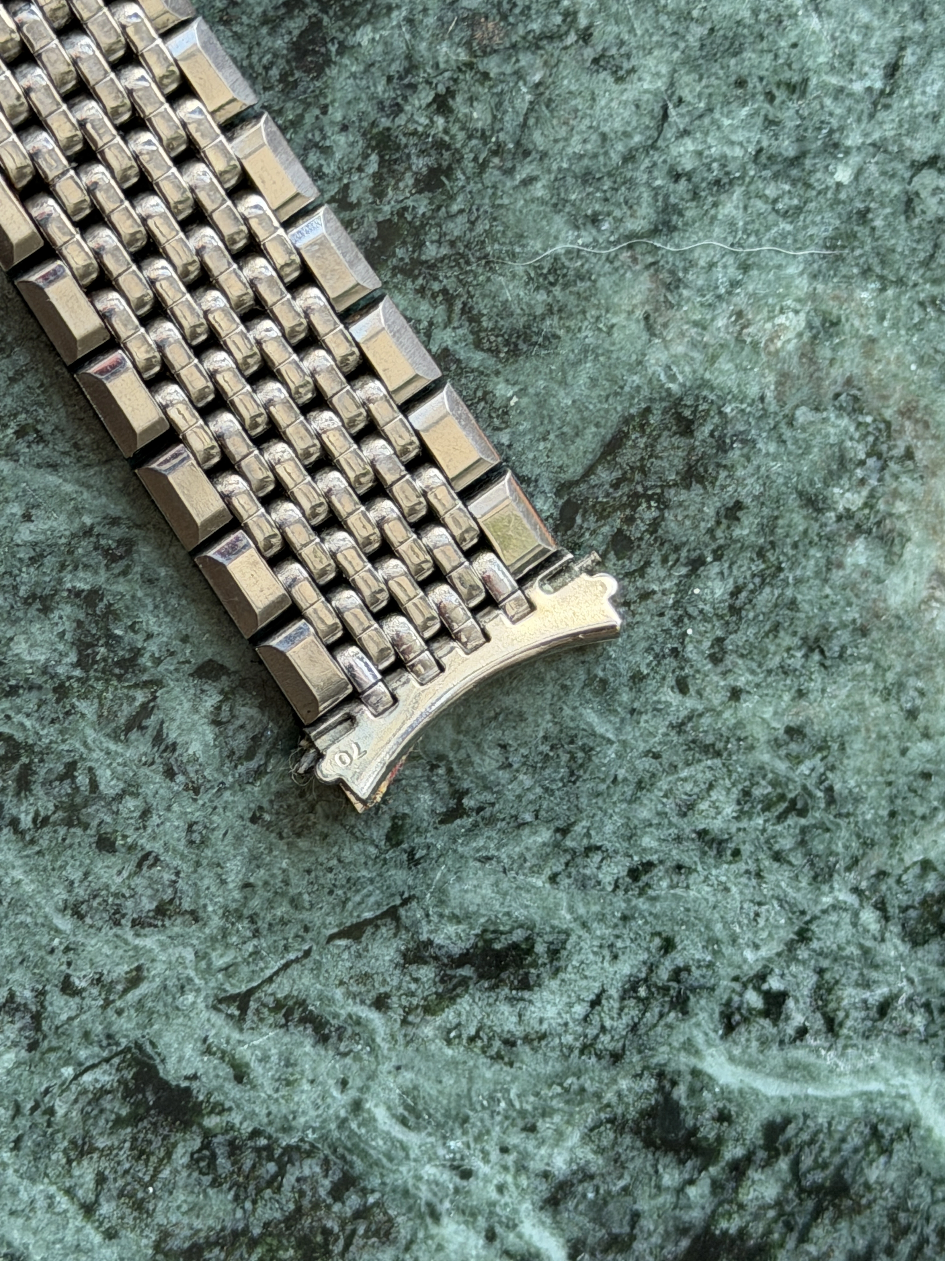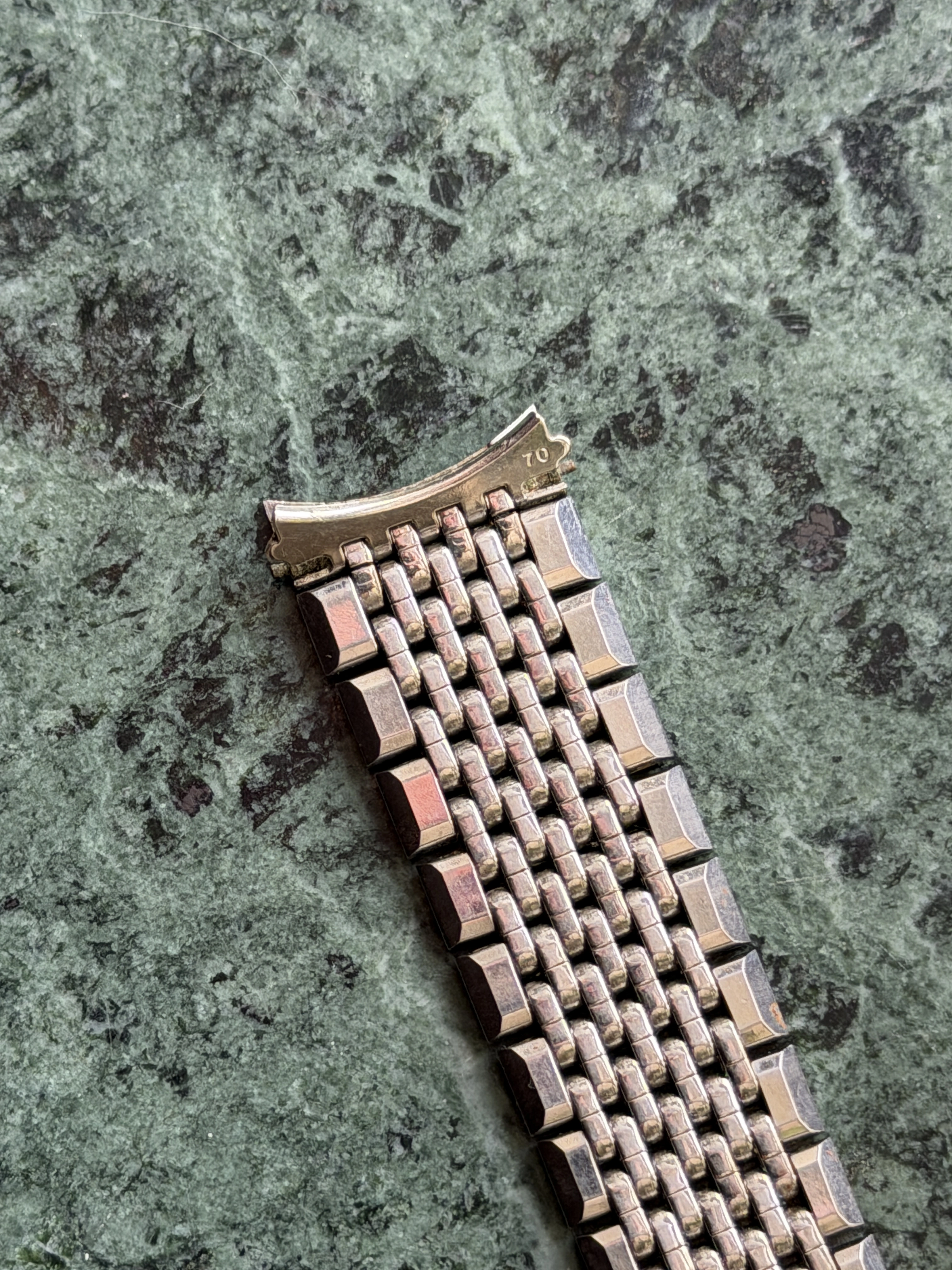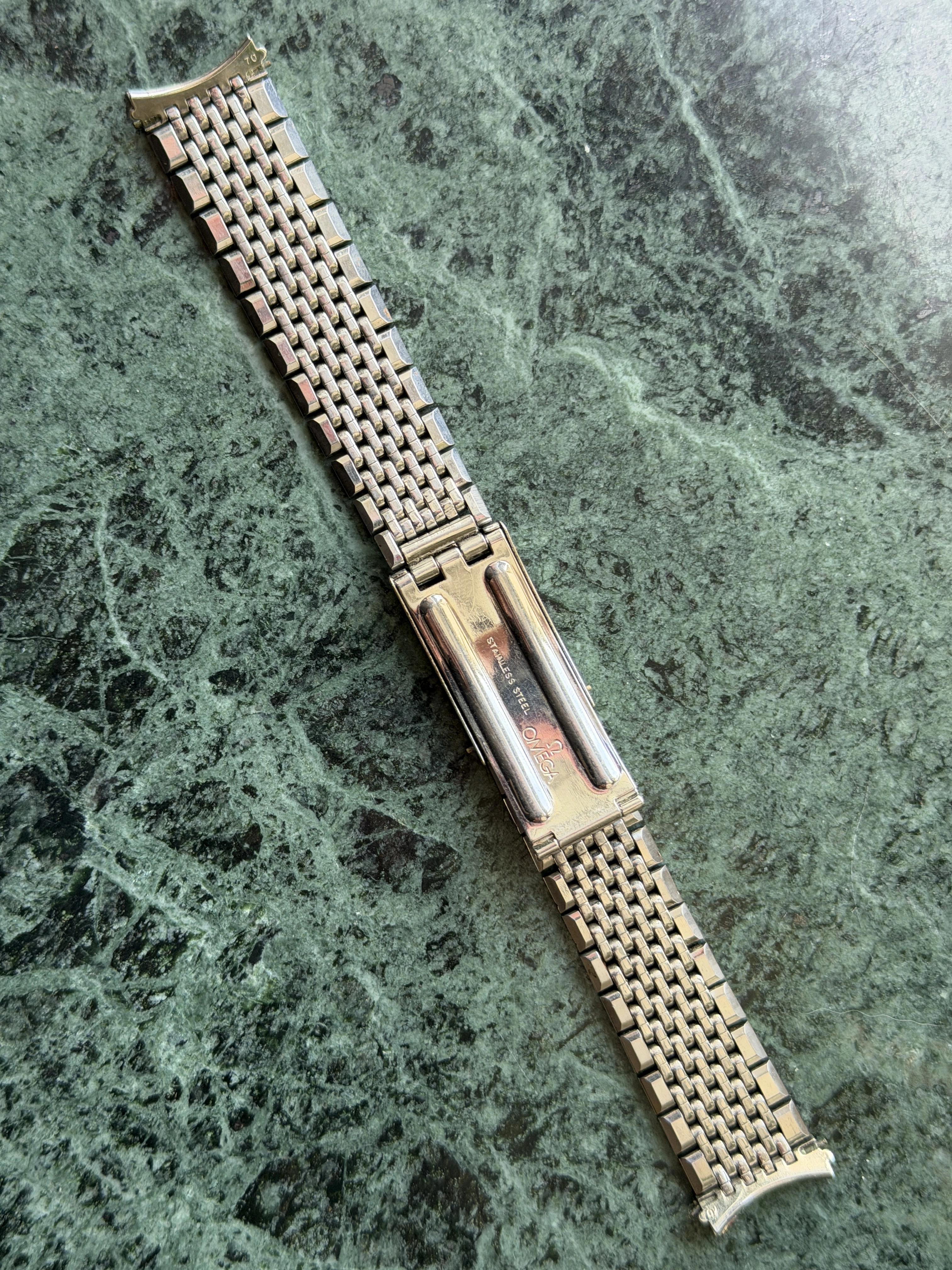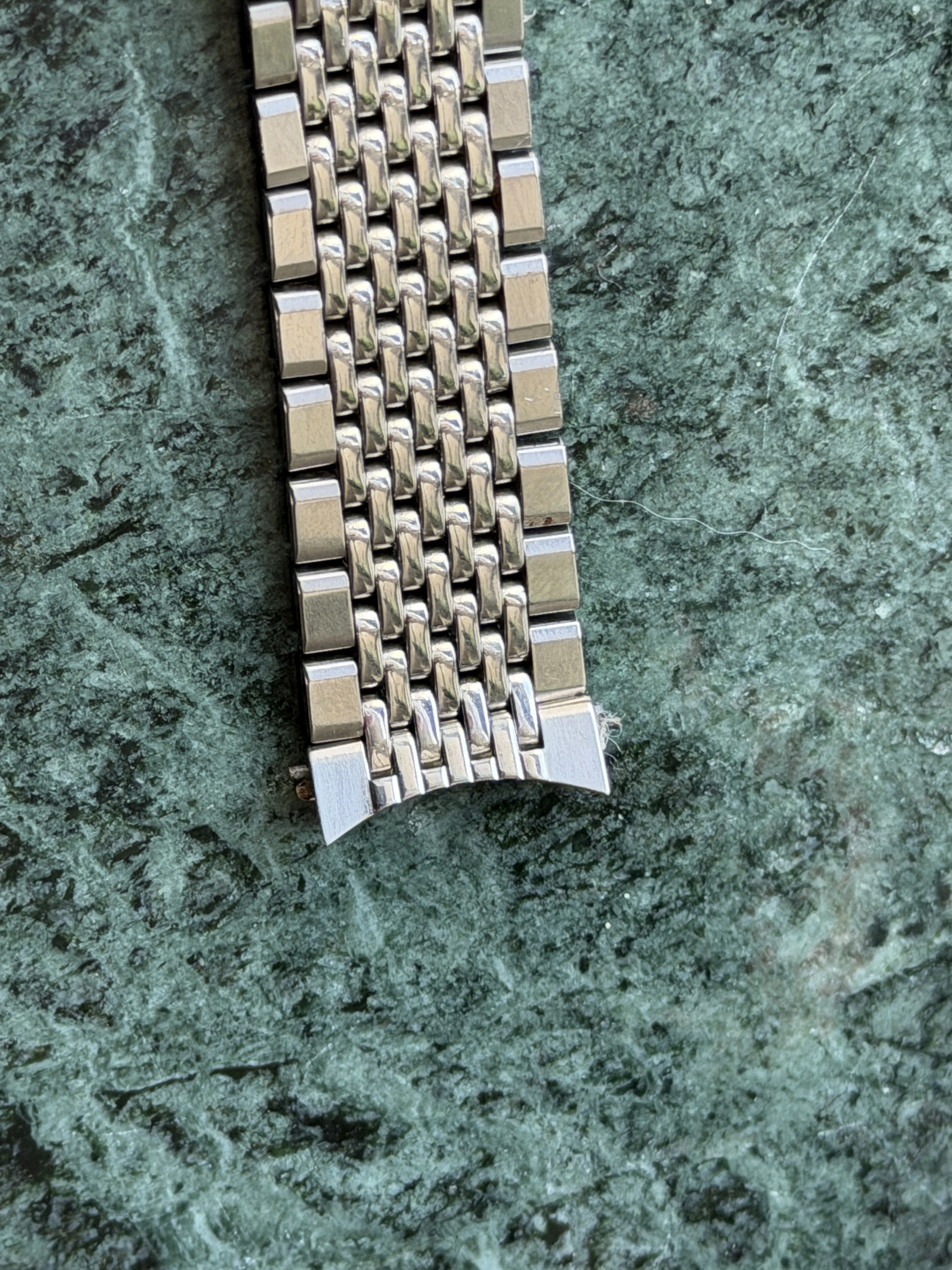 The bracelet is a 7-row on #70 endlinks, good length, good shape, all stainless steel.