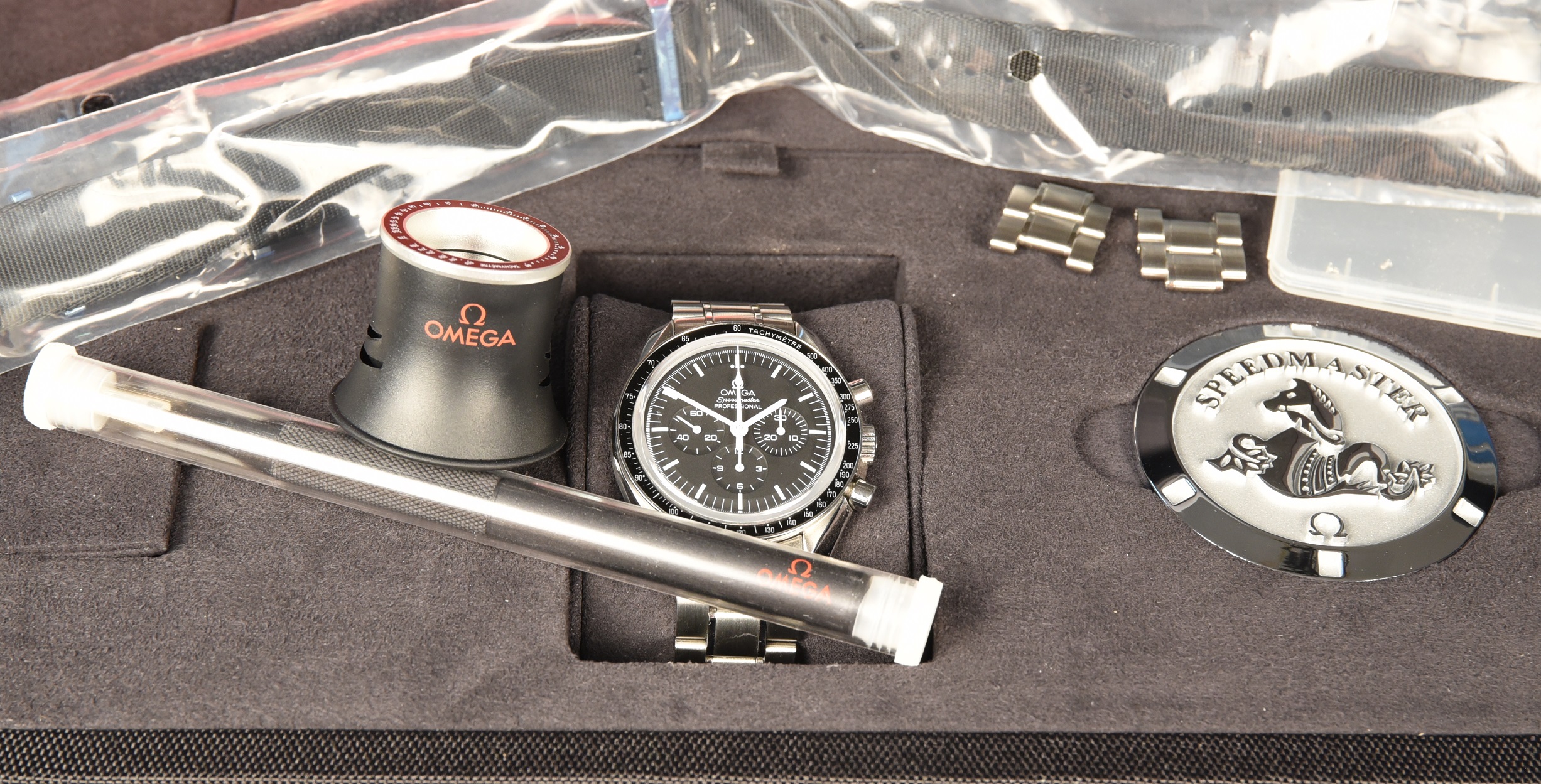 ·Up for sale is my Speedmaster 311.30.42.30.01.006 42mm "sapphire sandwich" with the 1863 movement, bought new by me in September of 2019. I am not a professional photographer, but I have tried to show the watch and condition accurately in the photos here, which are all untouched and have no editing except for cropping and hiding the serial number. The watch is in excellent condition, no scratches or blemishes on the crystal, case or bezel that I've seen. There are a few hairline scratches on the bracelet and clasp, and on the back of the case. It has been worn infrequently in rotation with my many other watches.