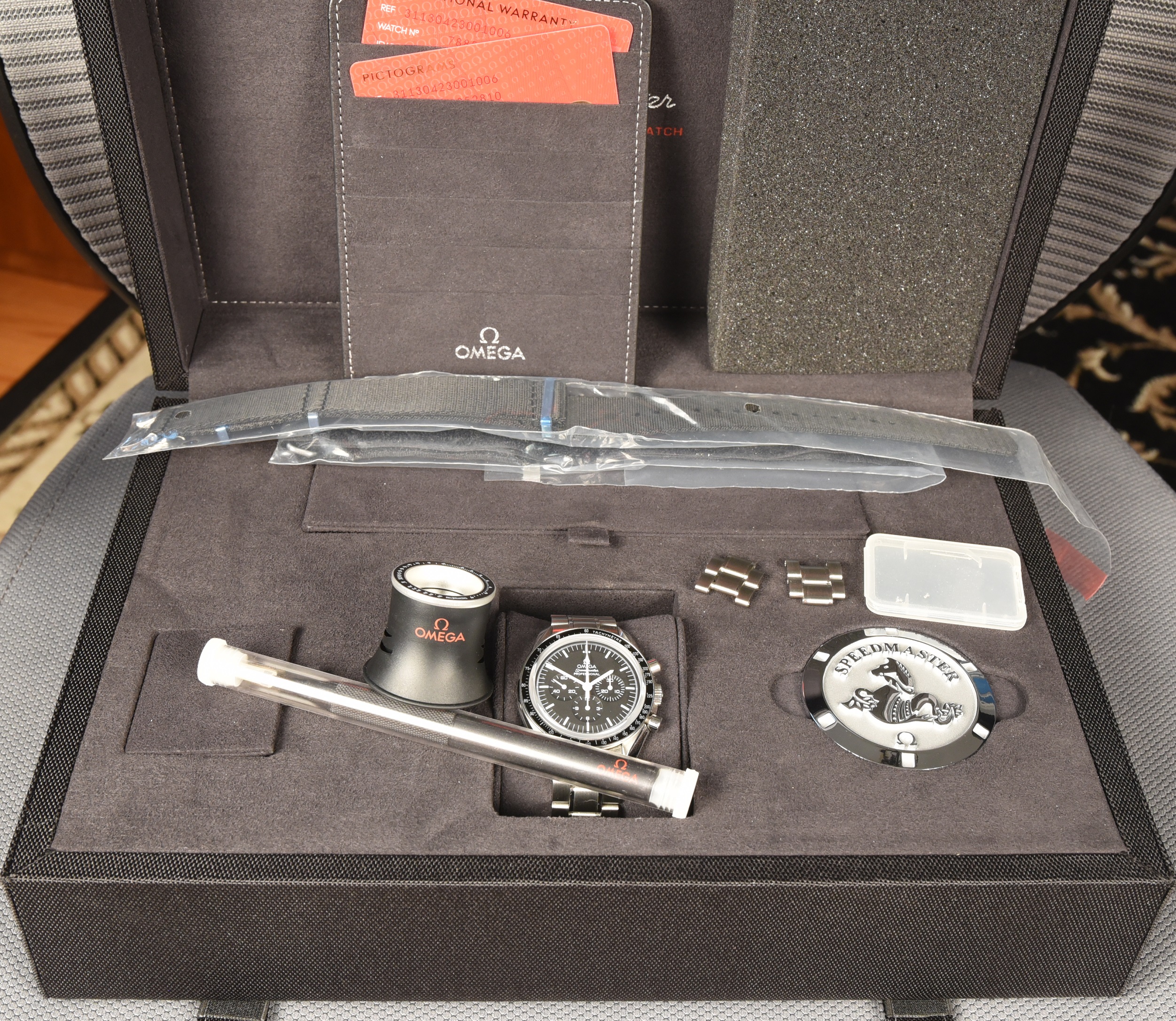 The sale includes everything that came with the watch, pictured below, all of the boxes, accessories, NATO and Velcro straps (unused), bracelet, removed links, pins and screws, tools, manuals, warranty cards and, of course, the watch itself.