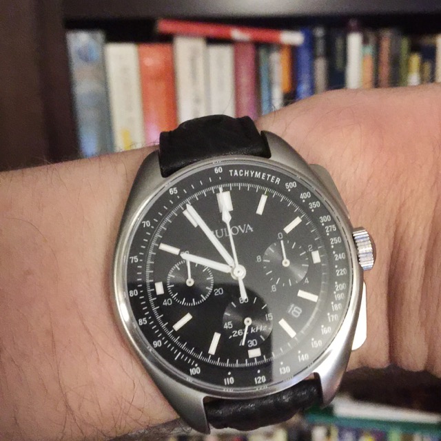 ··The black sheep in the Spee-ee-eee-eedmaster flockBought from another forum member in February and I love it - the size, the shape, the dial, everything about it. Not so much the JB Champion bracelet but I've been living with it just fine, and I infinitely prefer it to a leather strap. This was the other day at work when I wanted to get a good sunshine picture after I polished the crystal a few days prior.