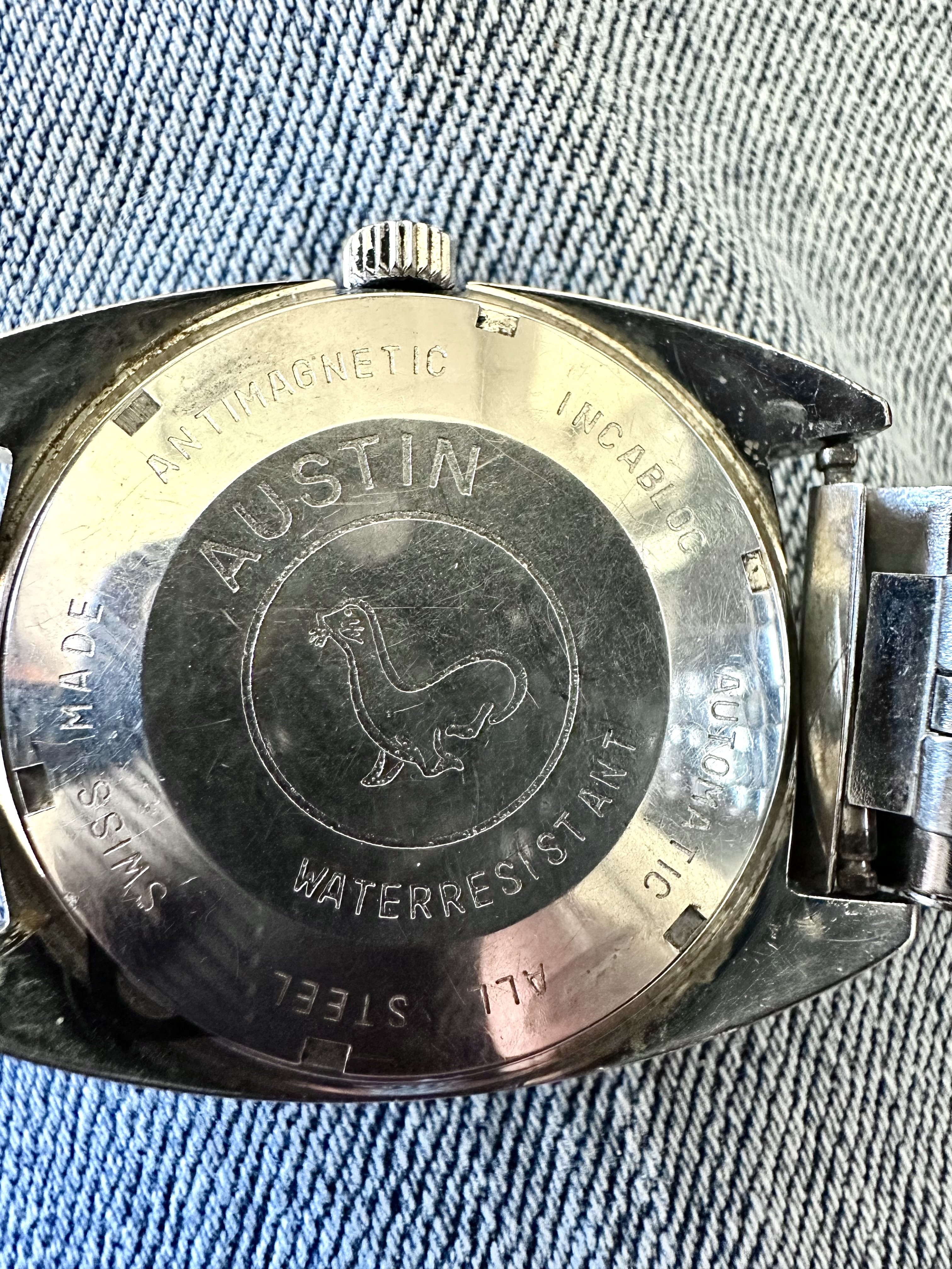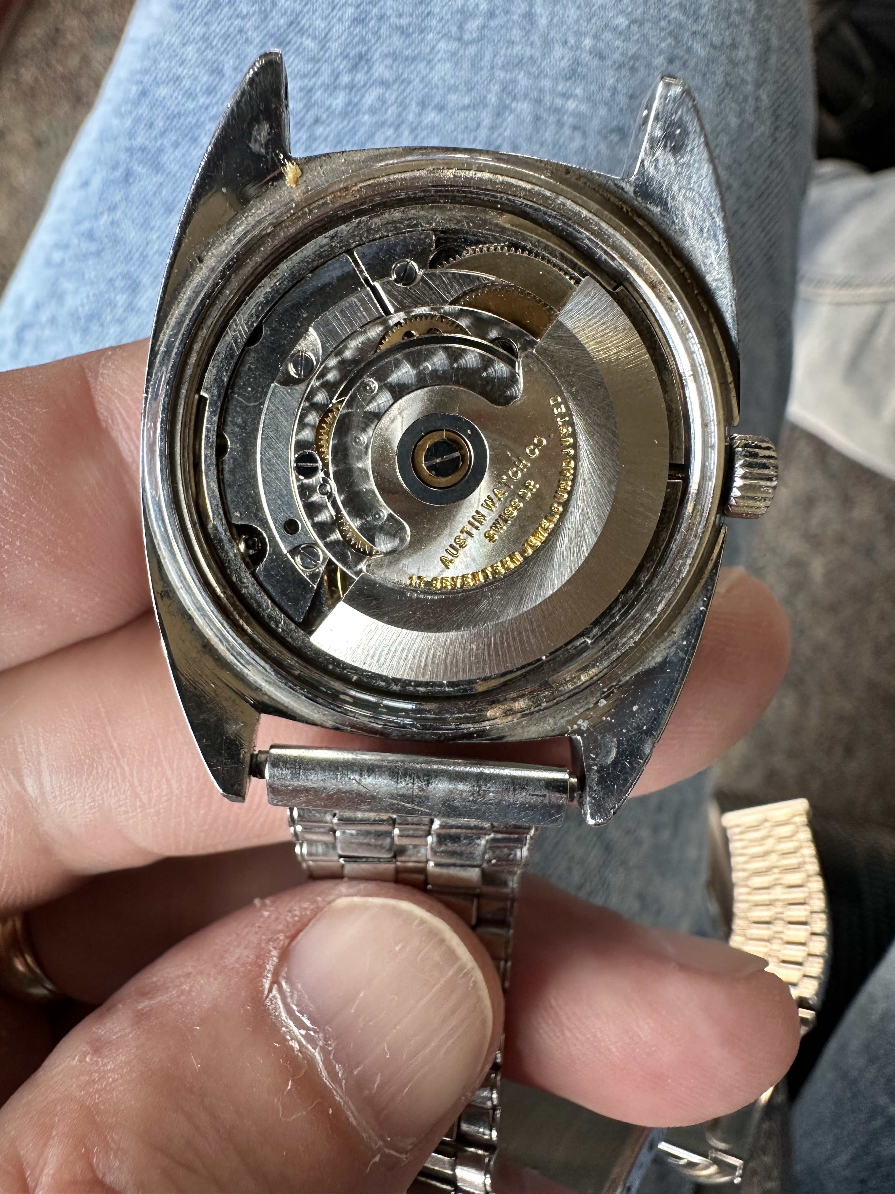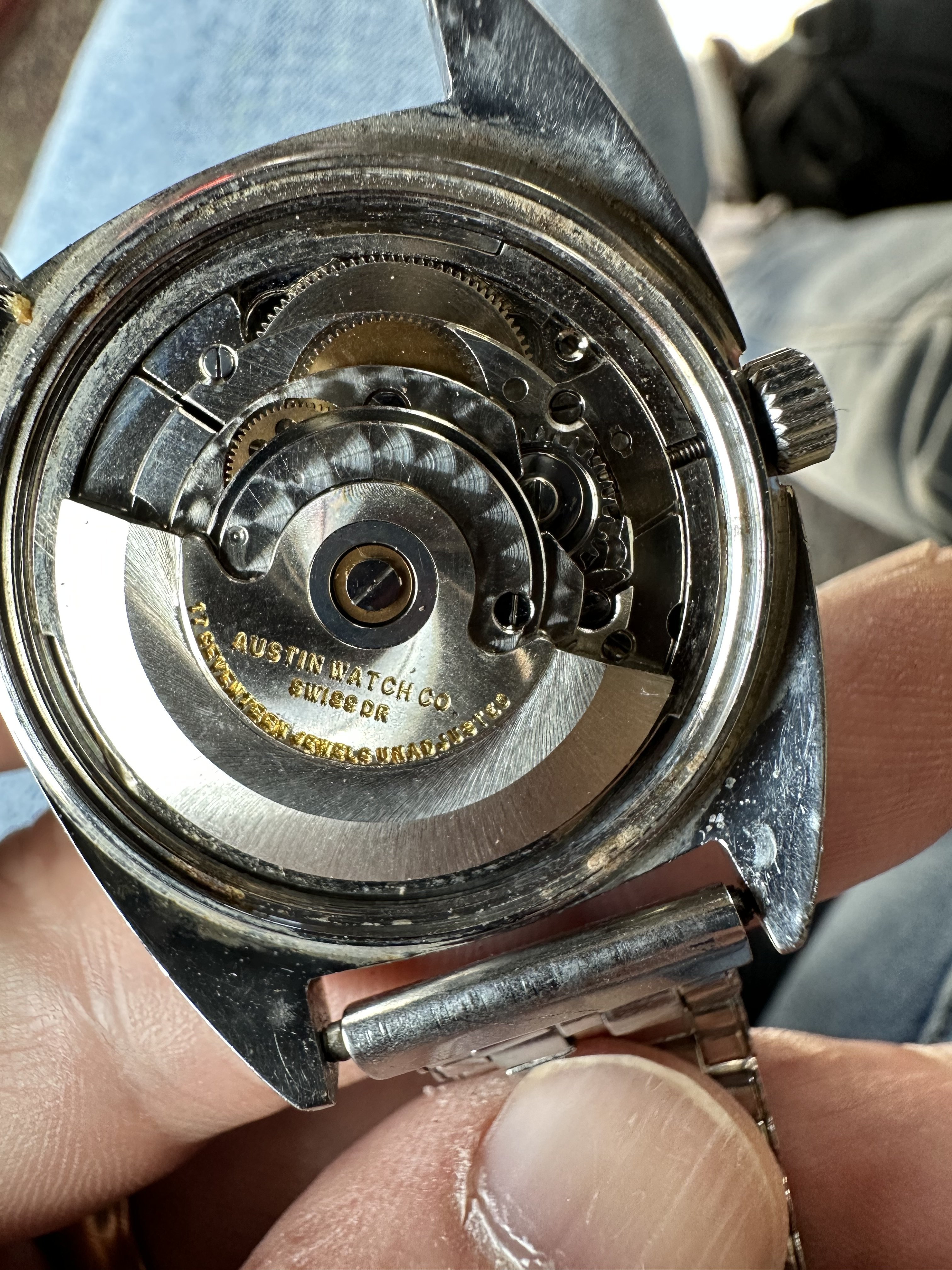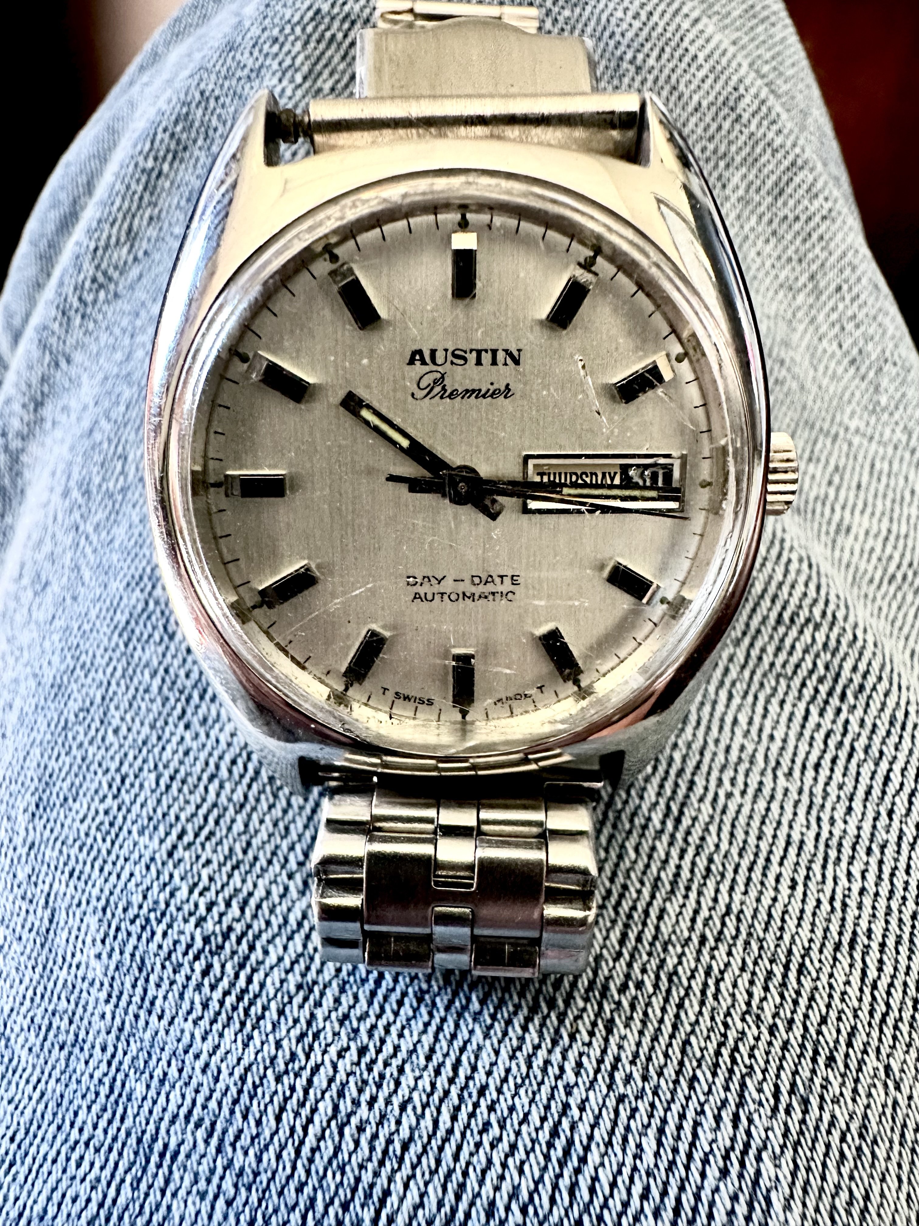 ·Howdy friends! As posted in WRUW, ebay find 1970s Austin Premier Automatic, Swiss Made, tritium hands, for the grand sum of $24.50. Any idea on the type of movement? ETA? AS? It doesn’t appear it has ever been touched internally to me.