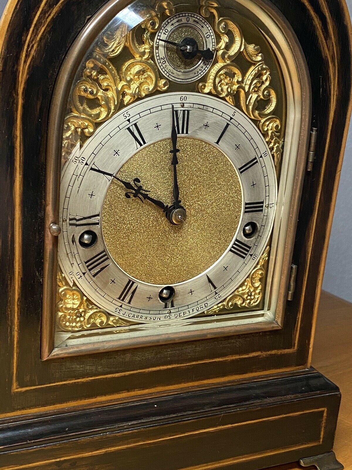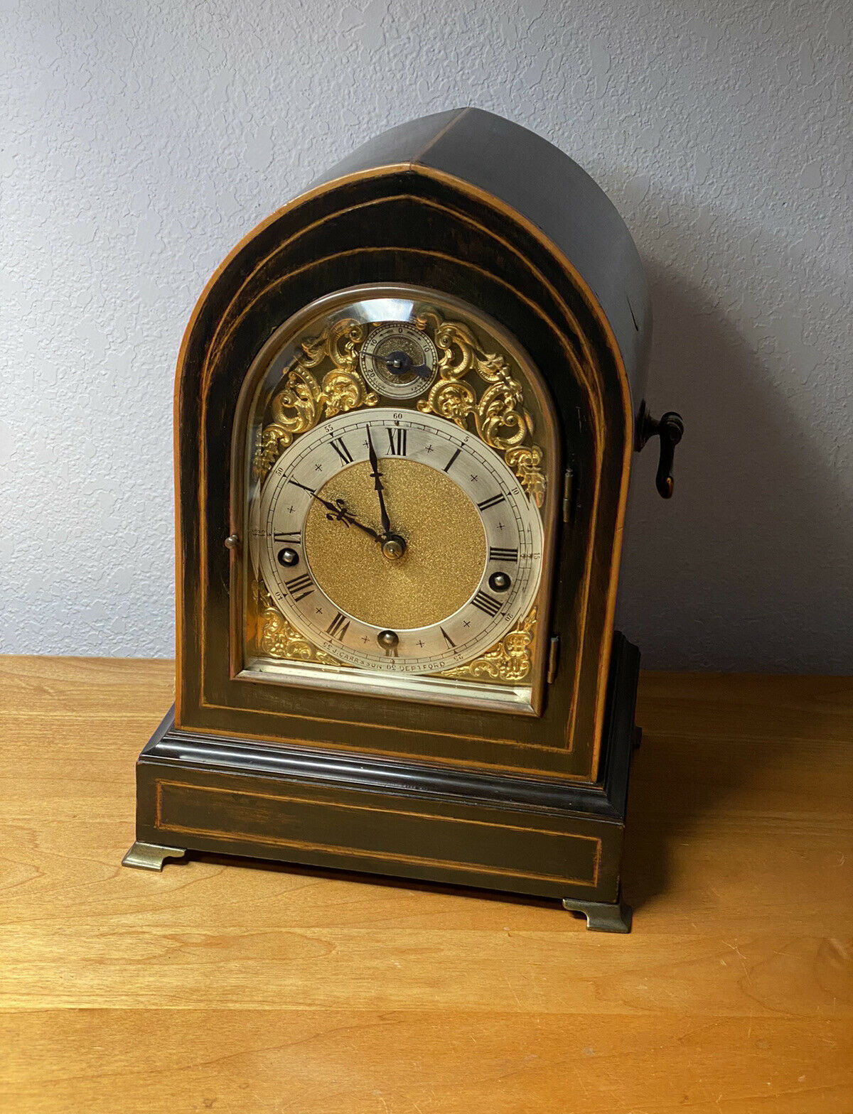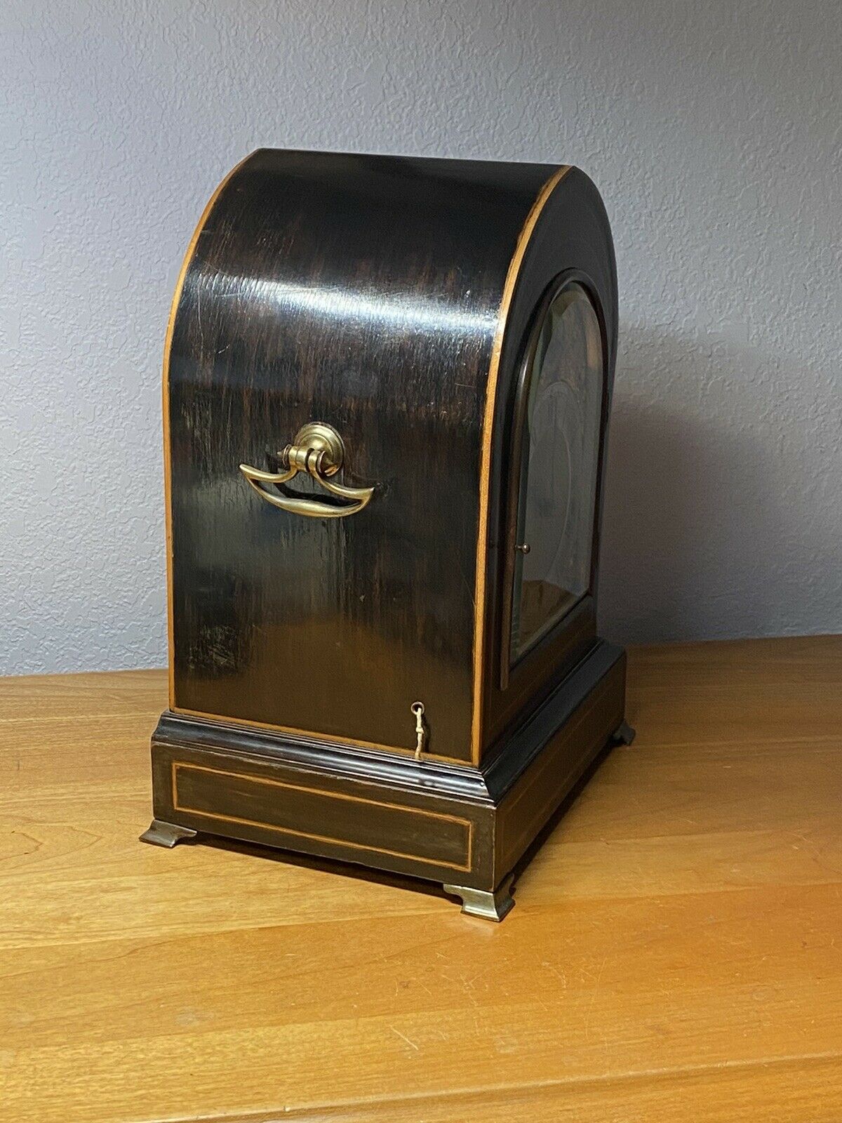·Along with watches, I greatly enjoy collecting chiming clocks. Here's a 1900's Winterhalder & Hoffmeier (W&H) clock with pull repeat feature in a smaller inlayed bracket clock case (but utilizes their full-size Westminster chiming movement which chimes on coiled gongs). For those who don't know, W&H is one of the best German clock makers back in the day. Will be doing my usual overhaul on the movement, but everything else is in spectacular condition for its age.