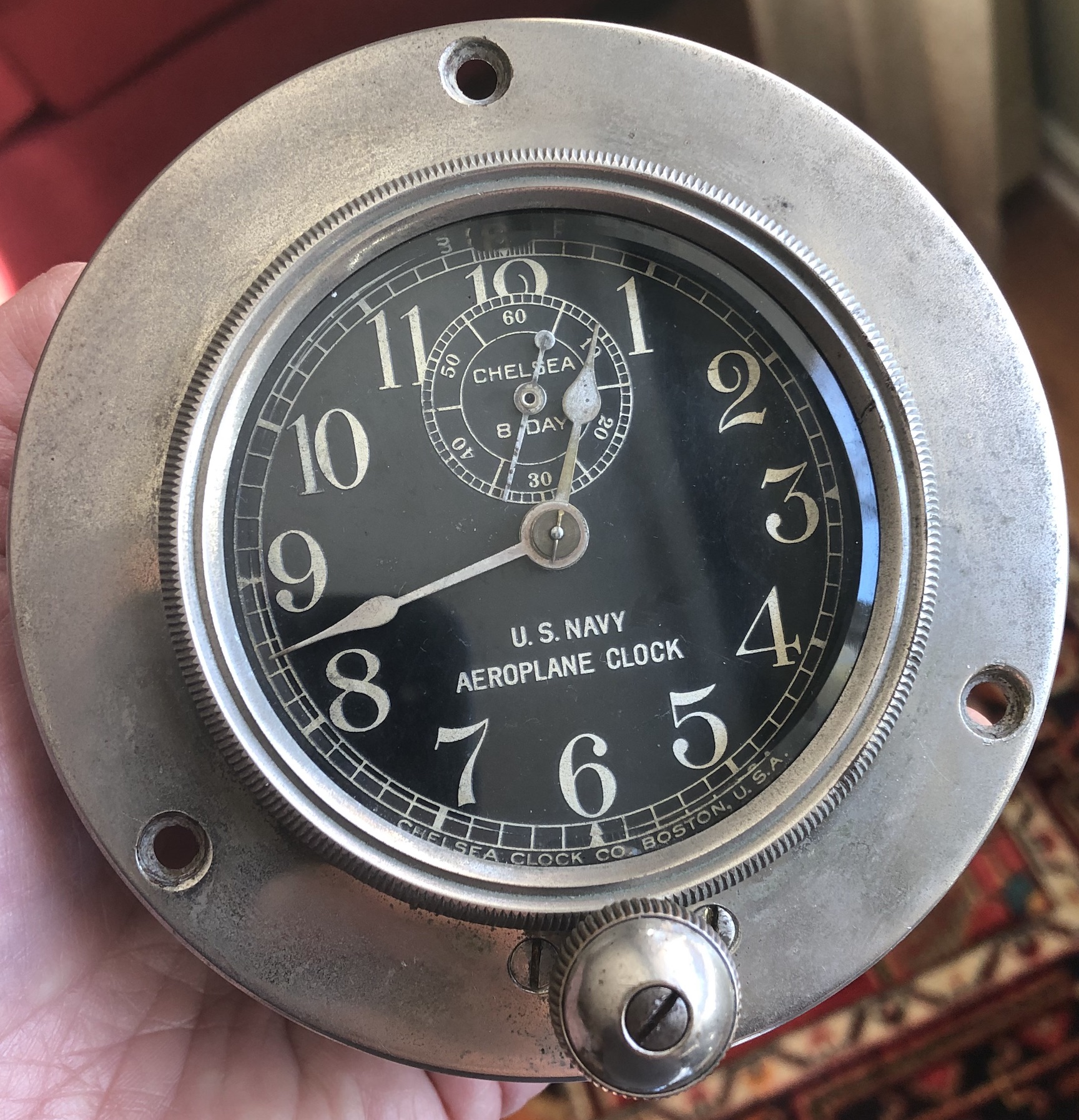 ·I just bought my first clock, a Chelsea WWI Navy "aeroplane" clock from 1918. It was an impulsive auction purchase, I just liked the looks and the history. It's running fine, but I'm not sure yet what I will do in terms of displaying it.