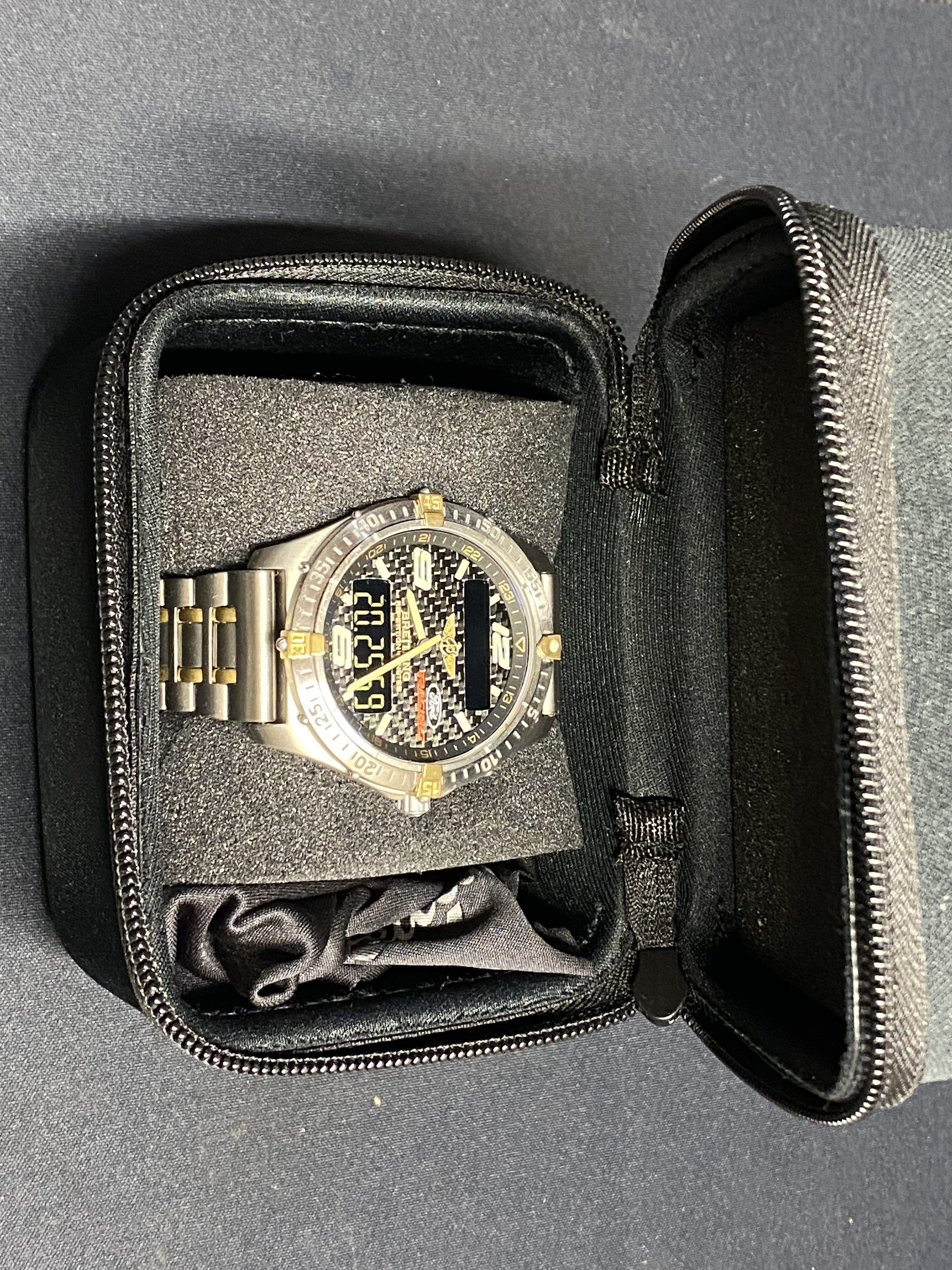-Fresh battery and aftermarket Breitling zip-up hard case.