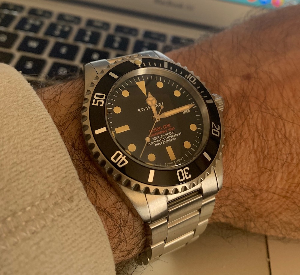 Going to put on my WatchCo Seamaster 300 with Forstner flat-link now.