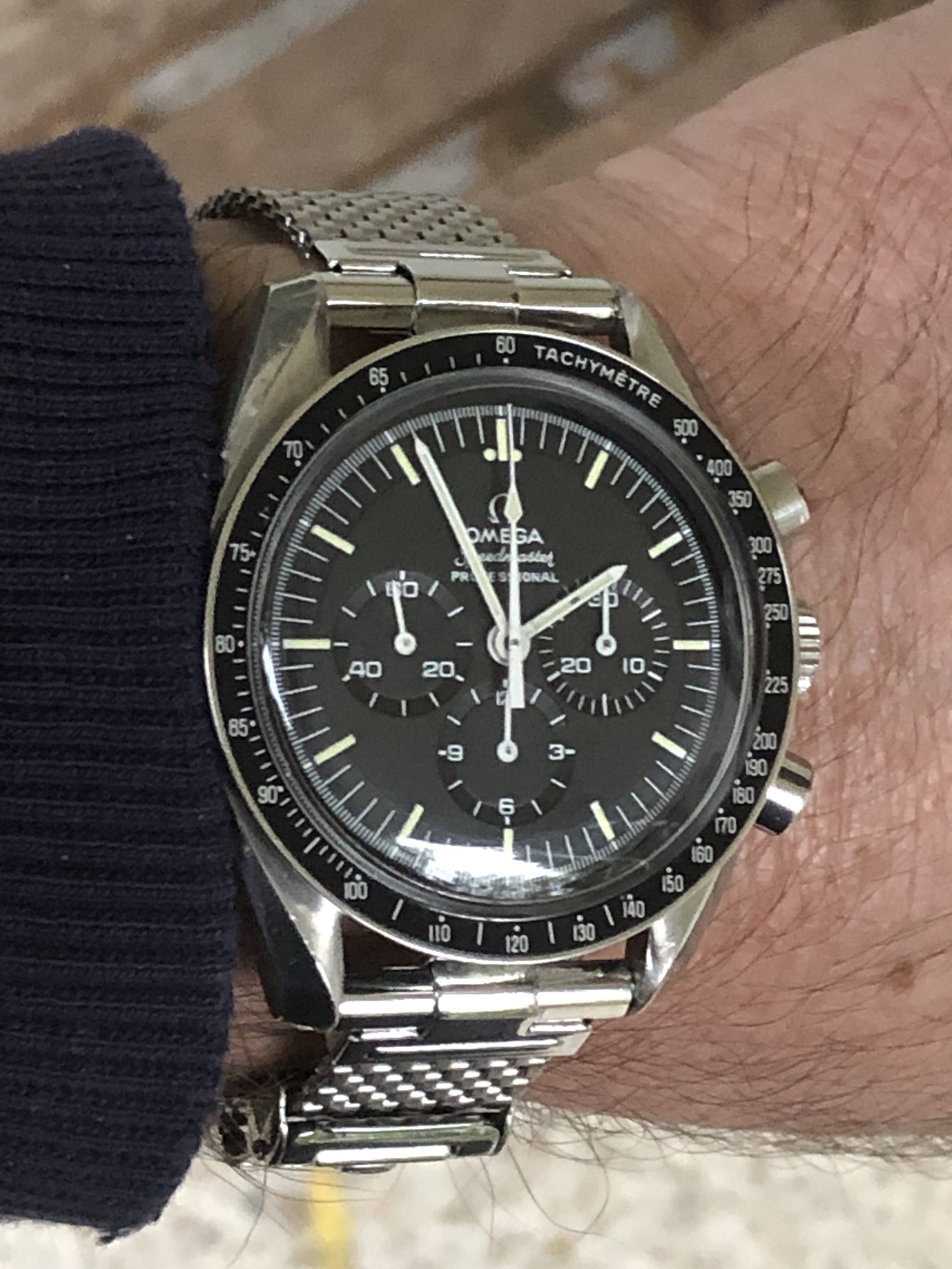 Oh- and for reference sake on the above pics in my posts- I have a 7” wrist and wear bracelets loose at 7.25, so on the Speedy I’m pretty high up, on the shorter lugged diver I moved the clasp down a little.