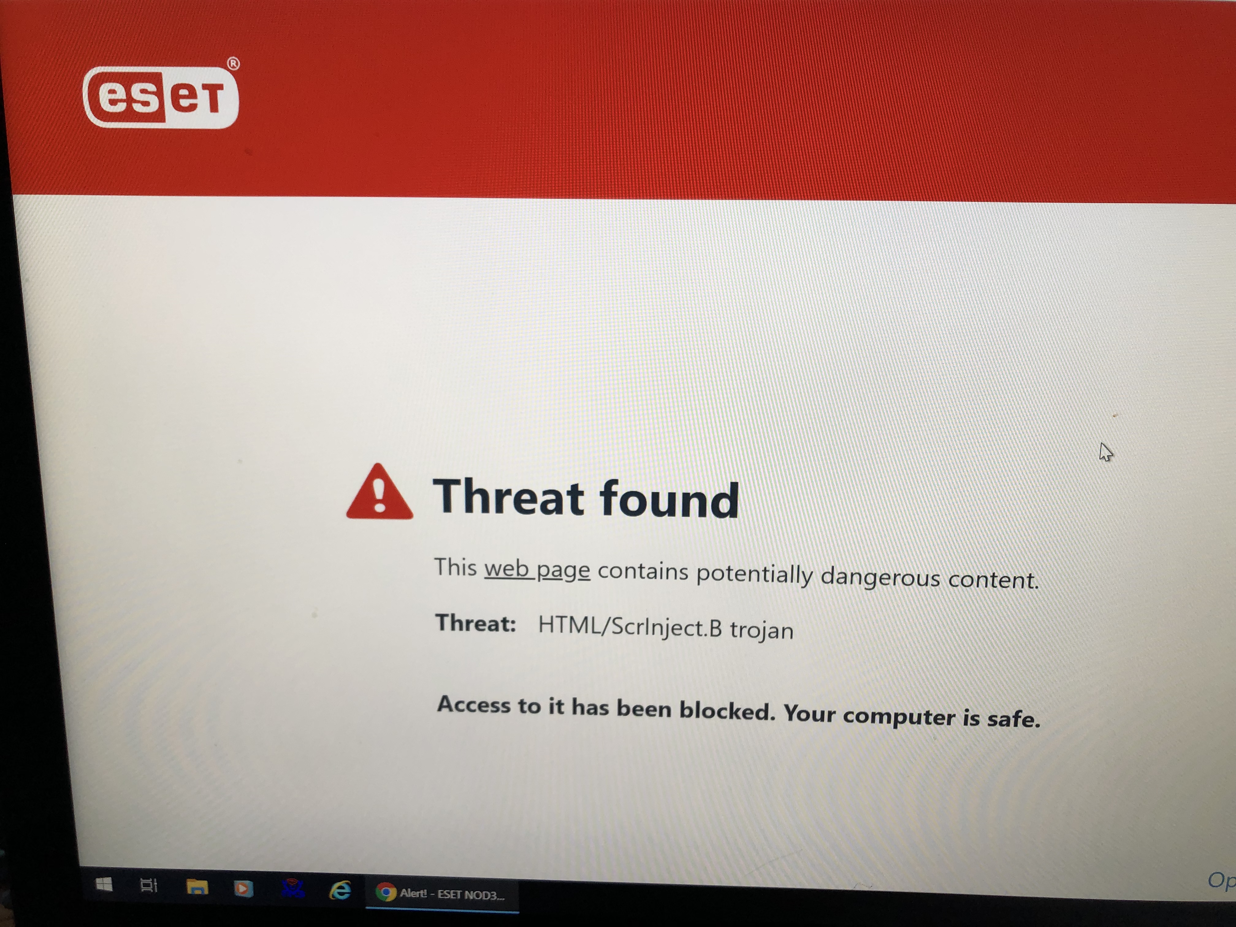I'm getting a blockage for a Trojan from my ESET antivirus protection when I got to your site just now.