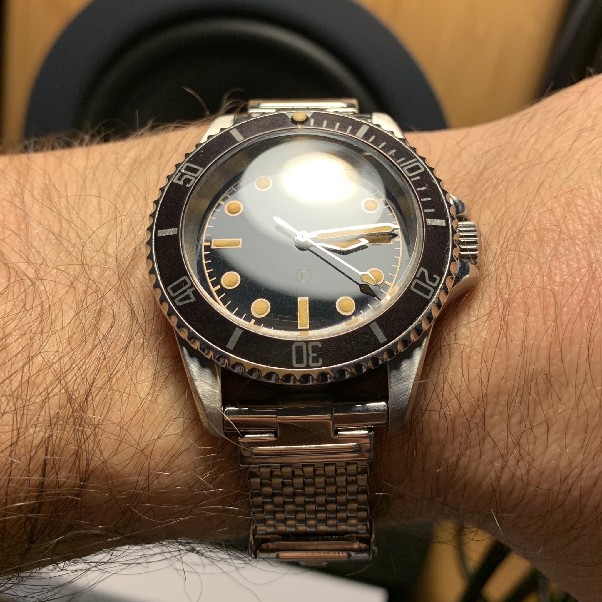 I believe the wide lugs-skinny bracelet is to keep in the vein of the original. There was discussion early on in the thread about making the bracelet wider so it suited the width of the lugs but that wouldn’t have been in keeping with the original design. As it is, the endlinks span the whole 20mm which the originals did not (there was a gap on 20mm endlinks) so that was a change to accommodate the more modern 20mm lug size.