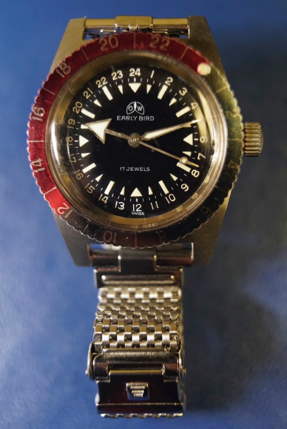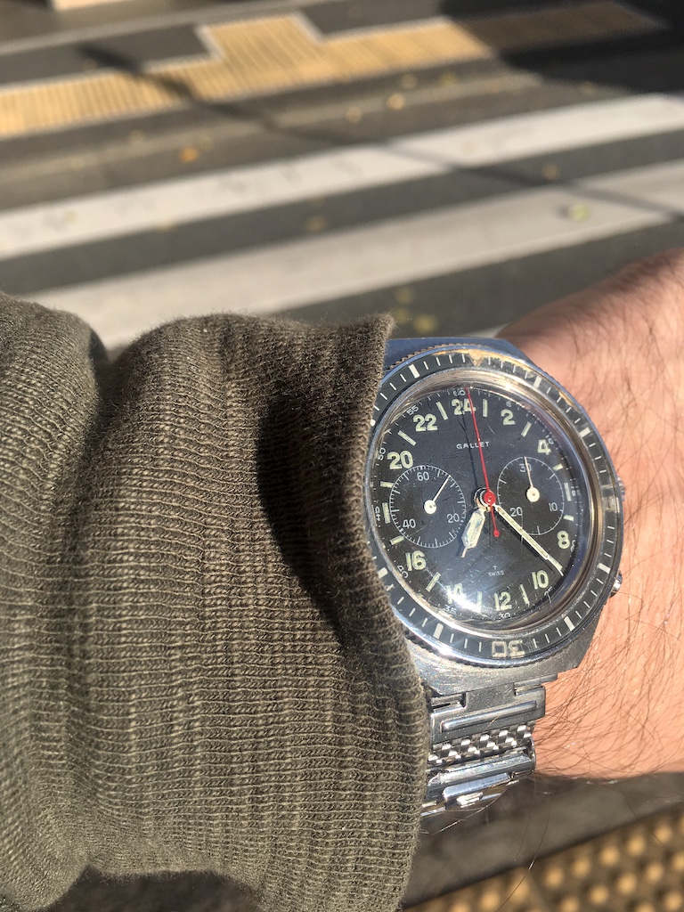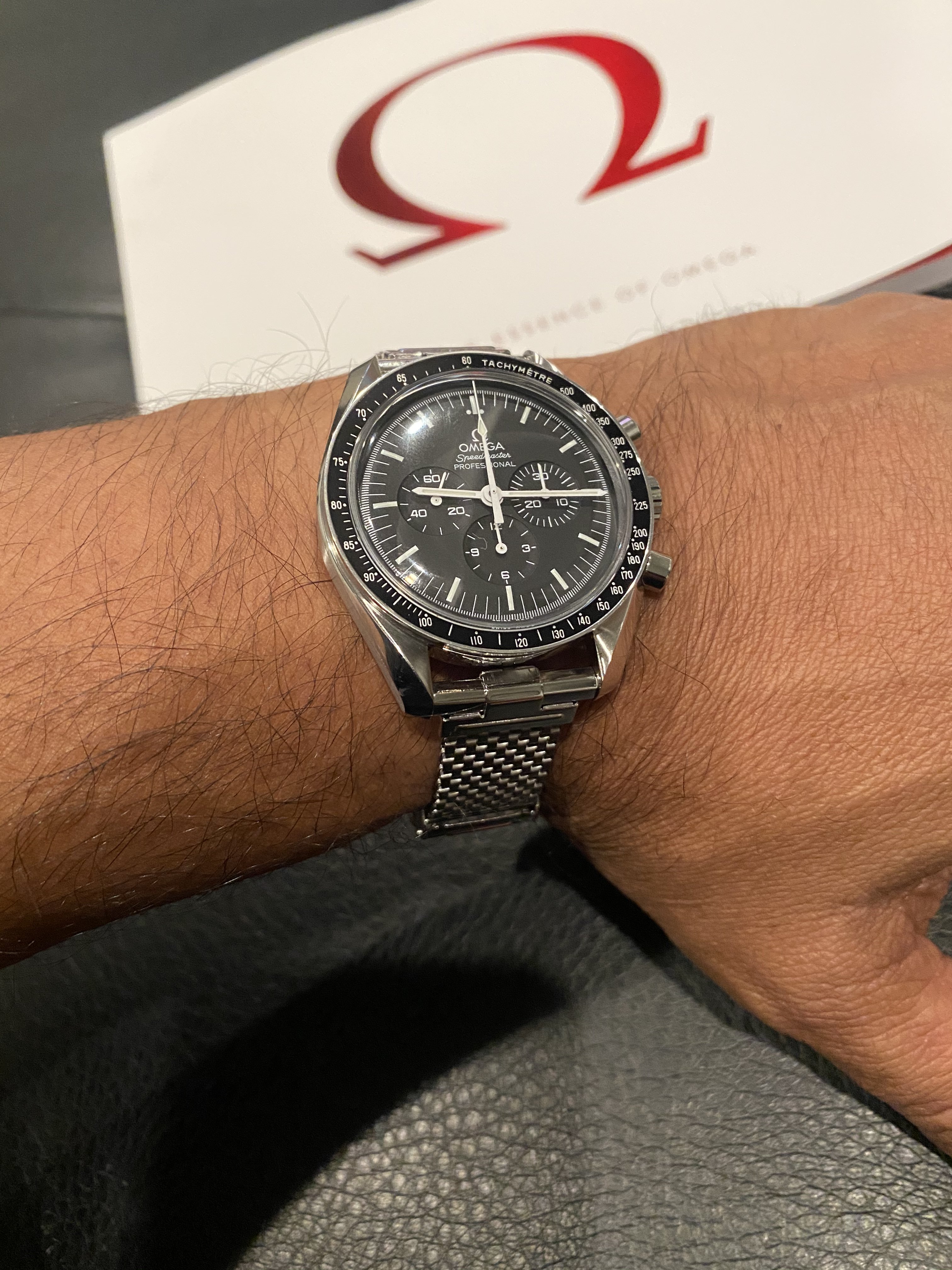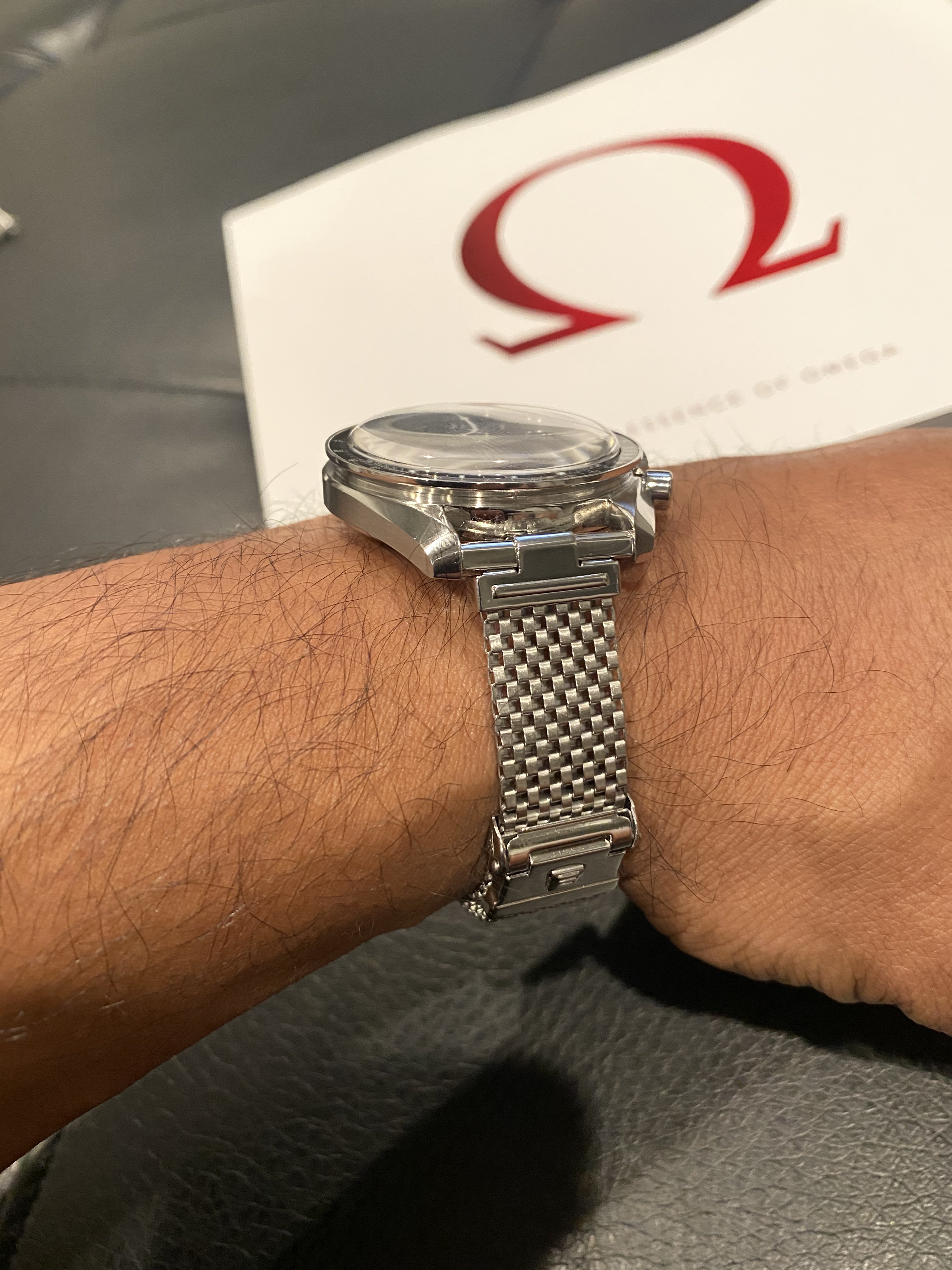 I now have a new one fitted to this JR speedy. I’m liking how the mesh of the bracelet riffs off the pattern of the minute track of the dial.