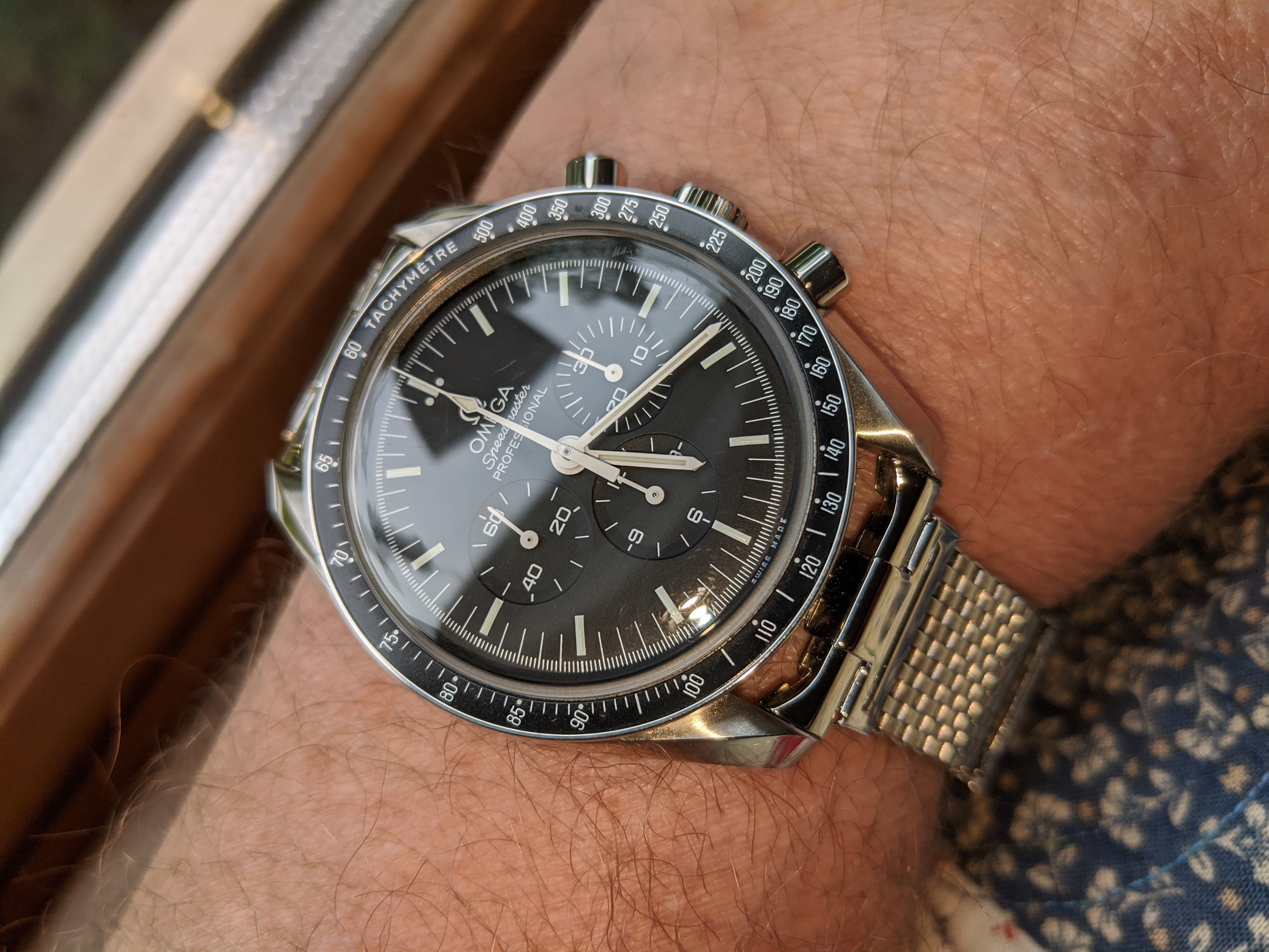 I love seeing these alternate pairings- looks great on the Combat. Someone earlier in the thread posted it on a Bulova Astronaut and that has got to be the best pairing I have seen so far- far better than even with the Speedy, and probably a pretty common pairing back in the day