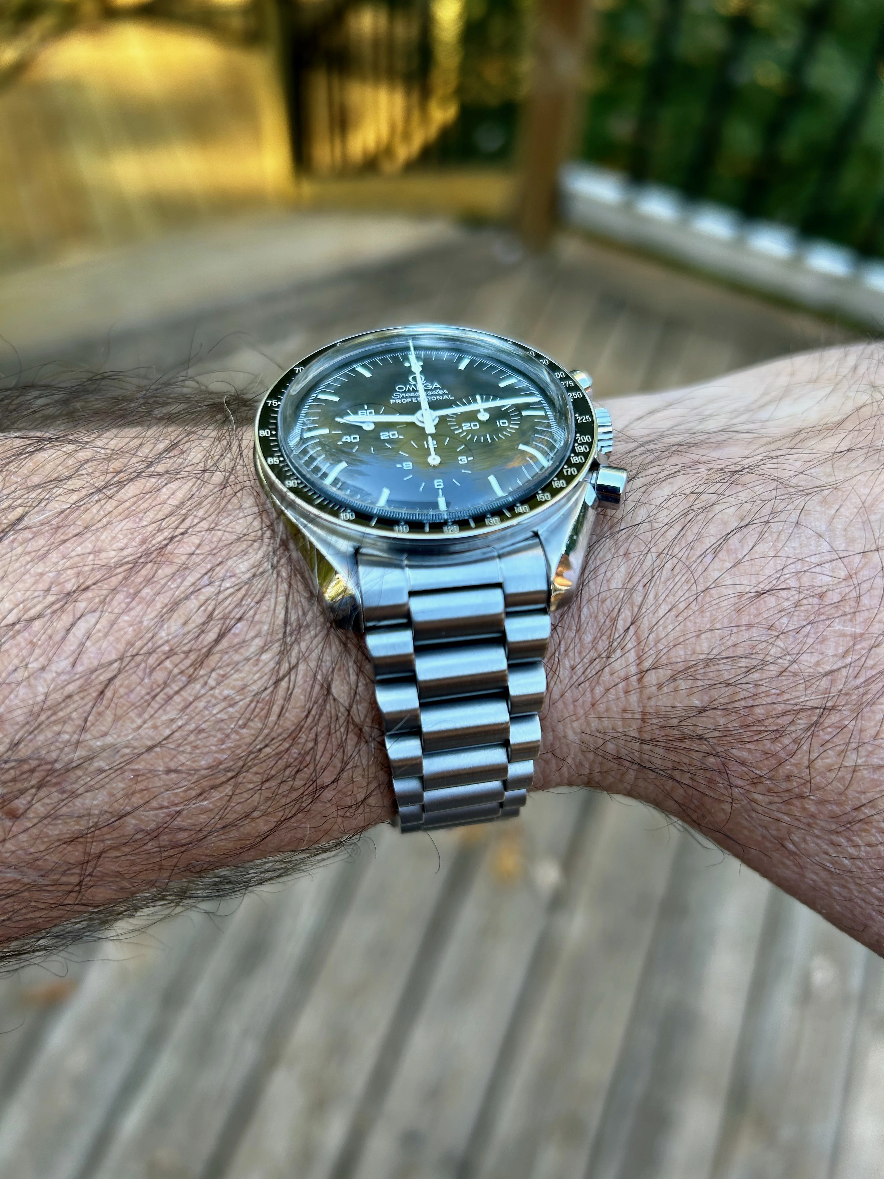 The reason I ask is I have never been happy with the bracelet that came with my 3861 (from an aesthetic perspective) and prefer the look of the original flat link style bracelet on the Speedmaster.