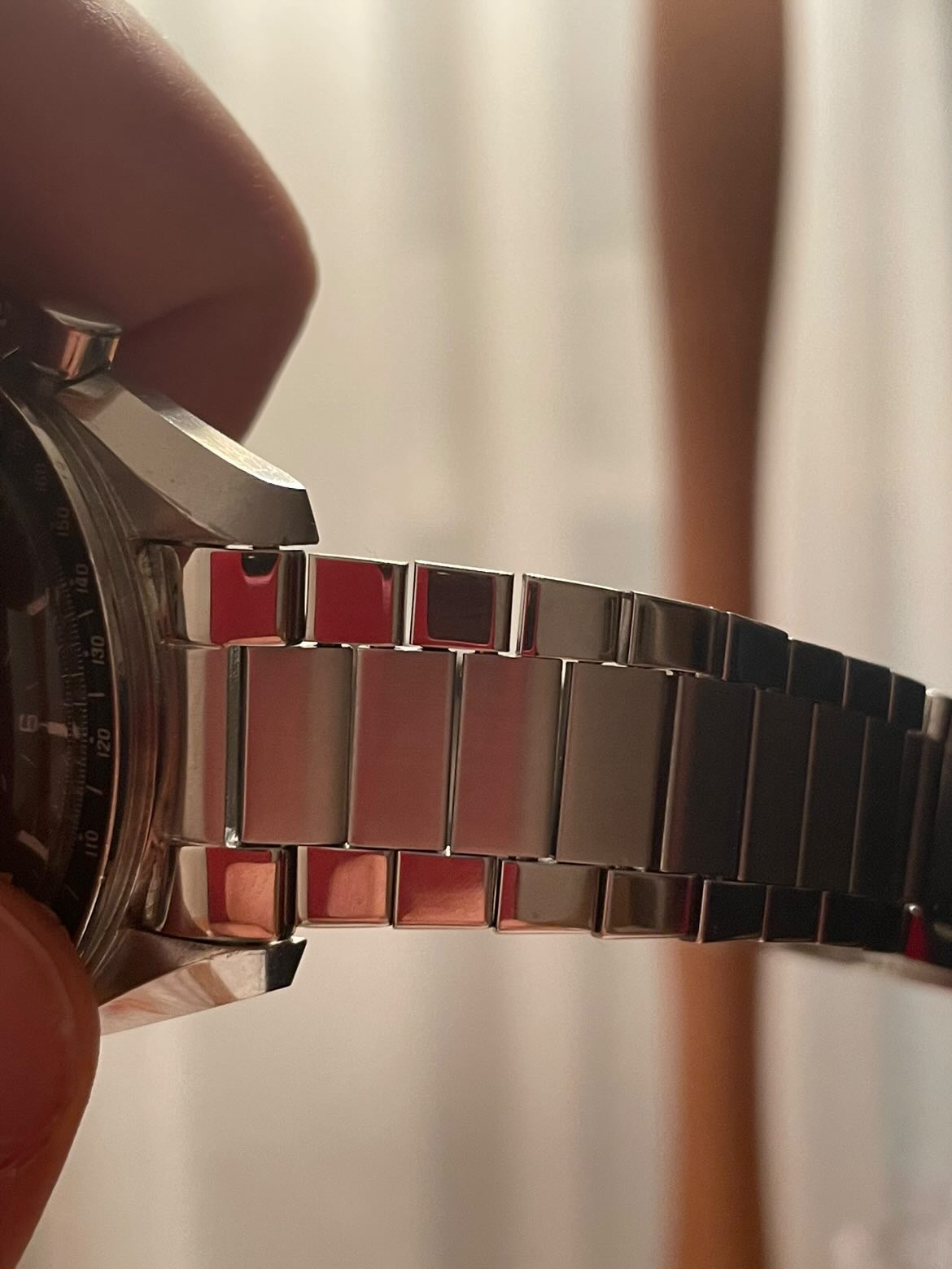 I'd like to share with you my experience with @Forstnerbands flat link bracelet i got over christmas. Overall I've tried my best to love this bracelet, it looks stunning, wears quite comfortably with planty of adjustment and help of stretchy links. I'm not the biggest fan of the end links (their profile is odd at best, although they look ok) and the 18mm bracelet looks quite bad on a watch with 20mm lug width. However its biggest offense is its build quality, frankly It's unforgivable. First thing i noticed were the massive gaps between polished and brushed parts of the links, other than bad qc (or rather lack there off) i suspect that it may be the way Forstner tried to achieve the vintage rattle, if thats the case, than it is an odd choice but i guess i could let it slide. The thing that pissed me off the most, was when i noticed that links are asymmetric. It's hard to catch it on camera, i tried my best to show it with calipers. However in person you can clearly see that the left polished part is clearly narrower than the right one. I don't know how it came to be, but frankly I am utterly disappointed. Things like this, shouldn't have place at this price point. I was thinking of getting the newly released milled clasp for this bracelet, but after noticing all the defects i'm not sure wether i'm going to get anything else from Forstner bands. Im sad, especially after reading all the positive reviews and having high hopes for this bracelet.
