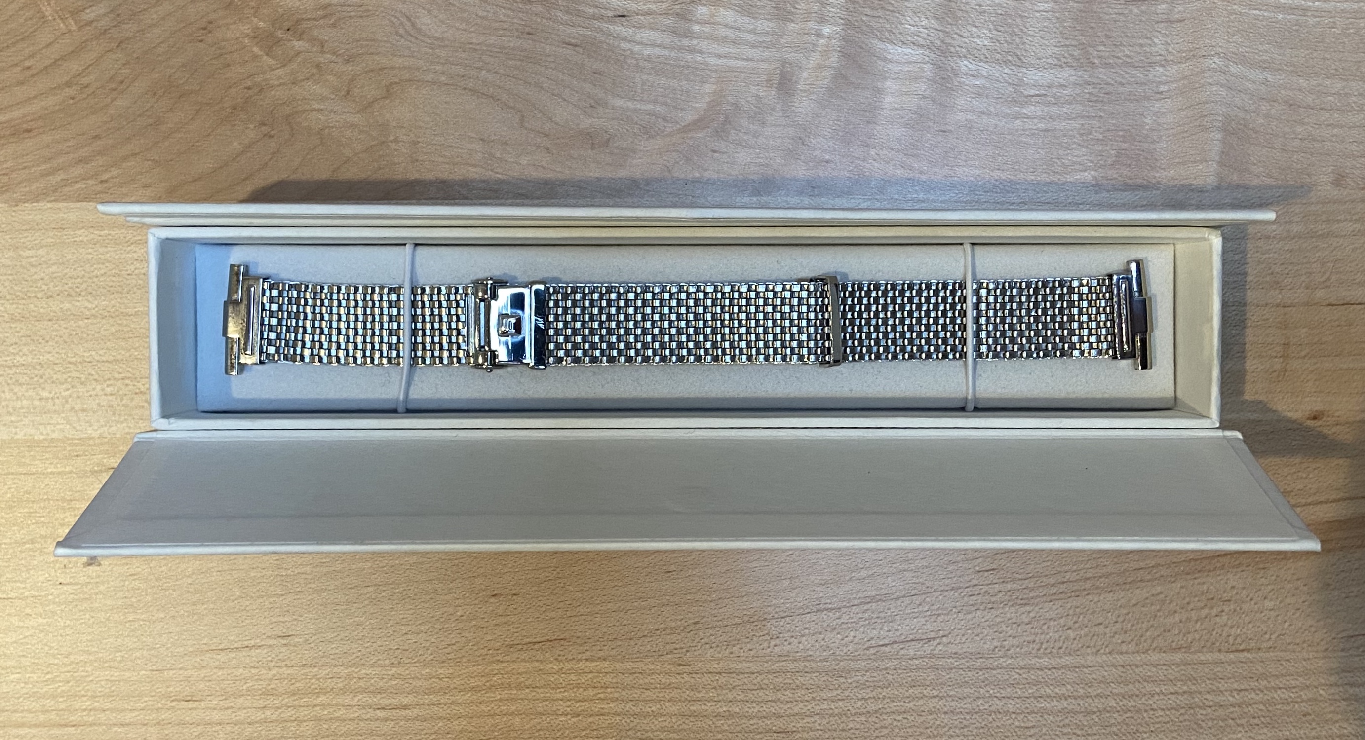 Wore it a few times, less than 2 weeks total, has a couple scratches on the clasp but in very good used condition overall.