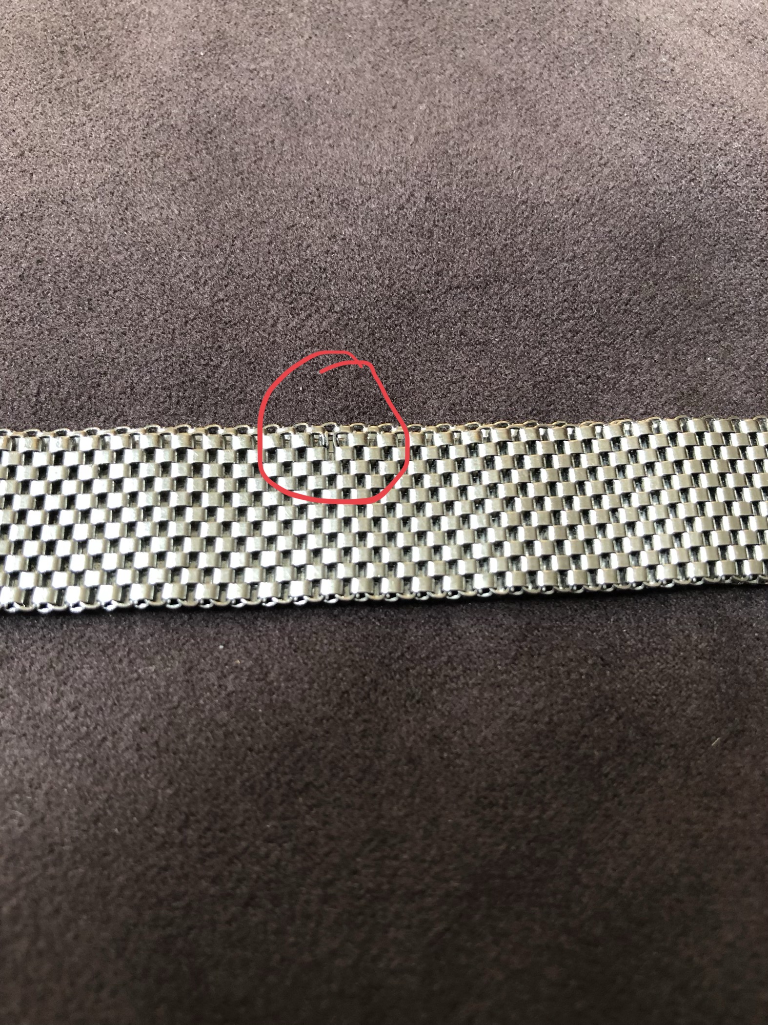 Mesh is solid but there is one link missing (check the photos) but there is no issue in wearing the bracelet.